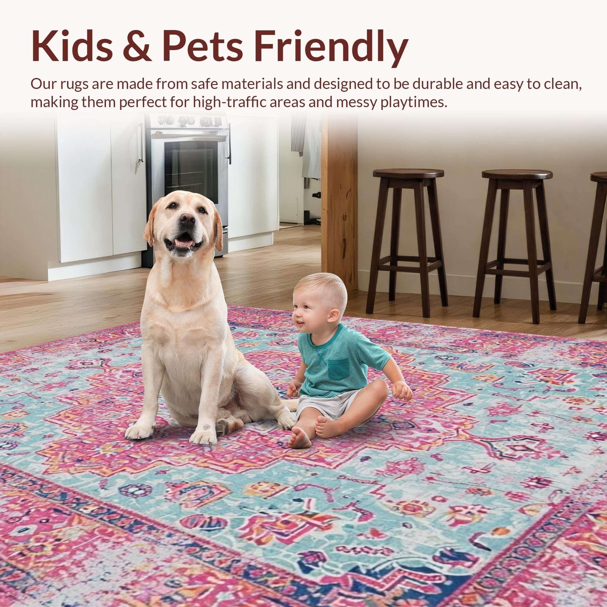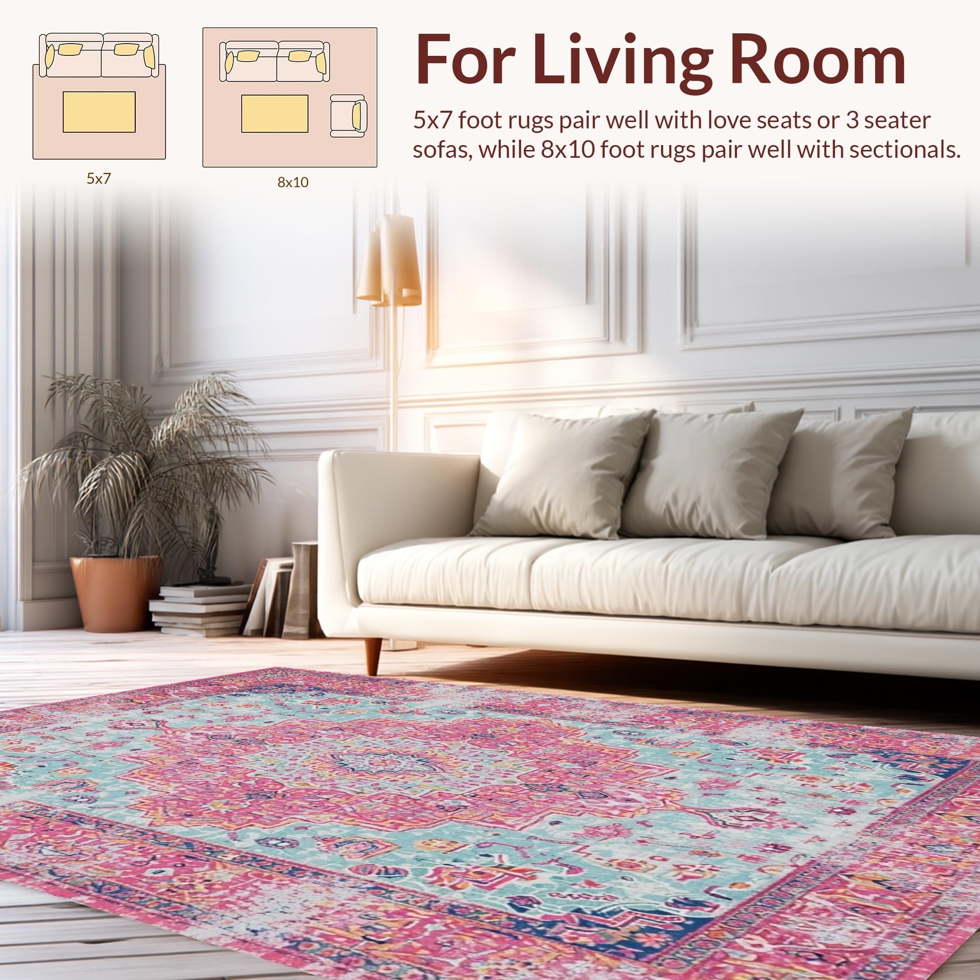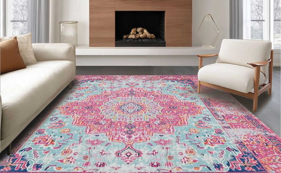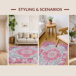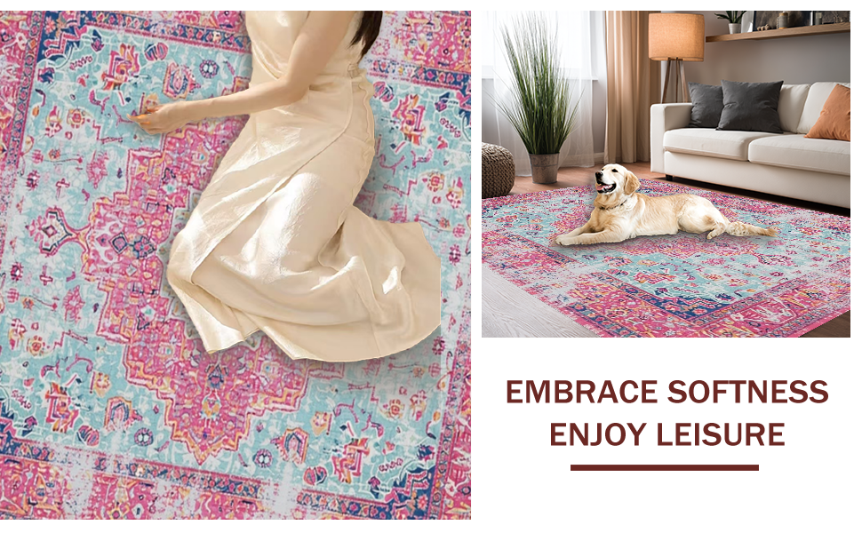 Ultra Soft Area Rug, Non Slip, Stain Resistant, Washable Area Rugs for Living Room, Bedroom, Cozy Textured Ogee Style Charm(Pink) Overview: