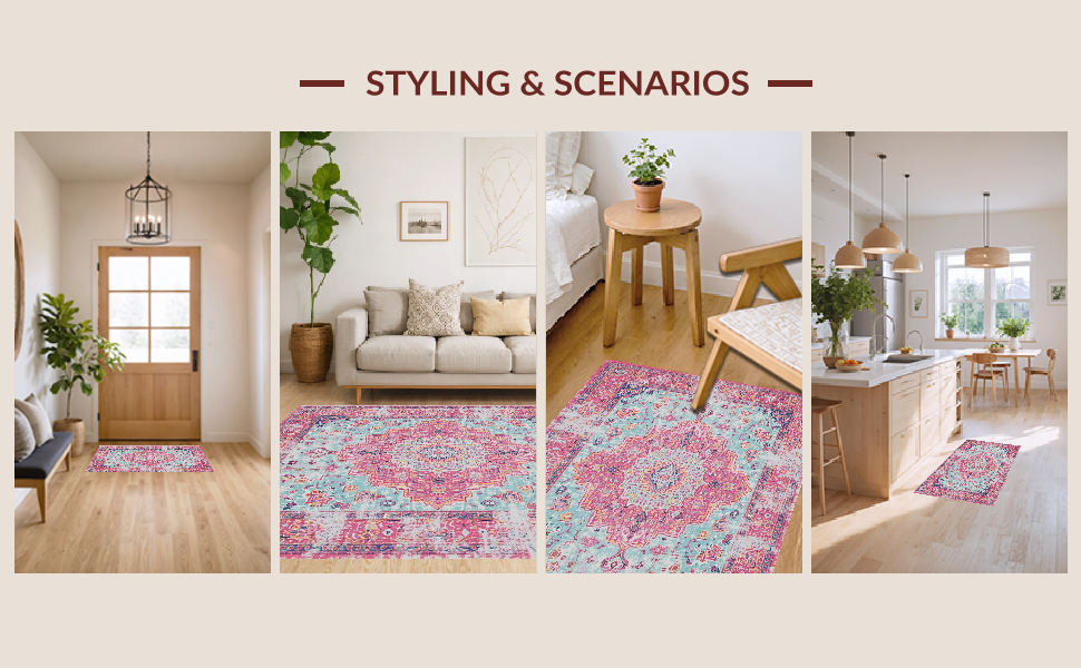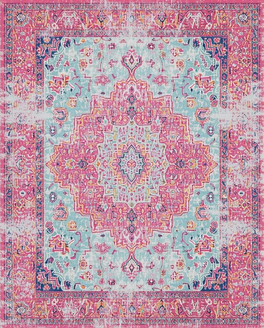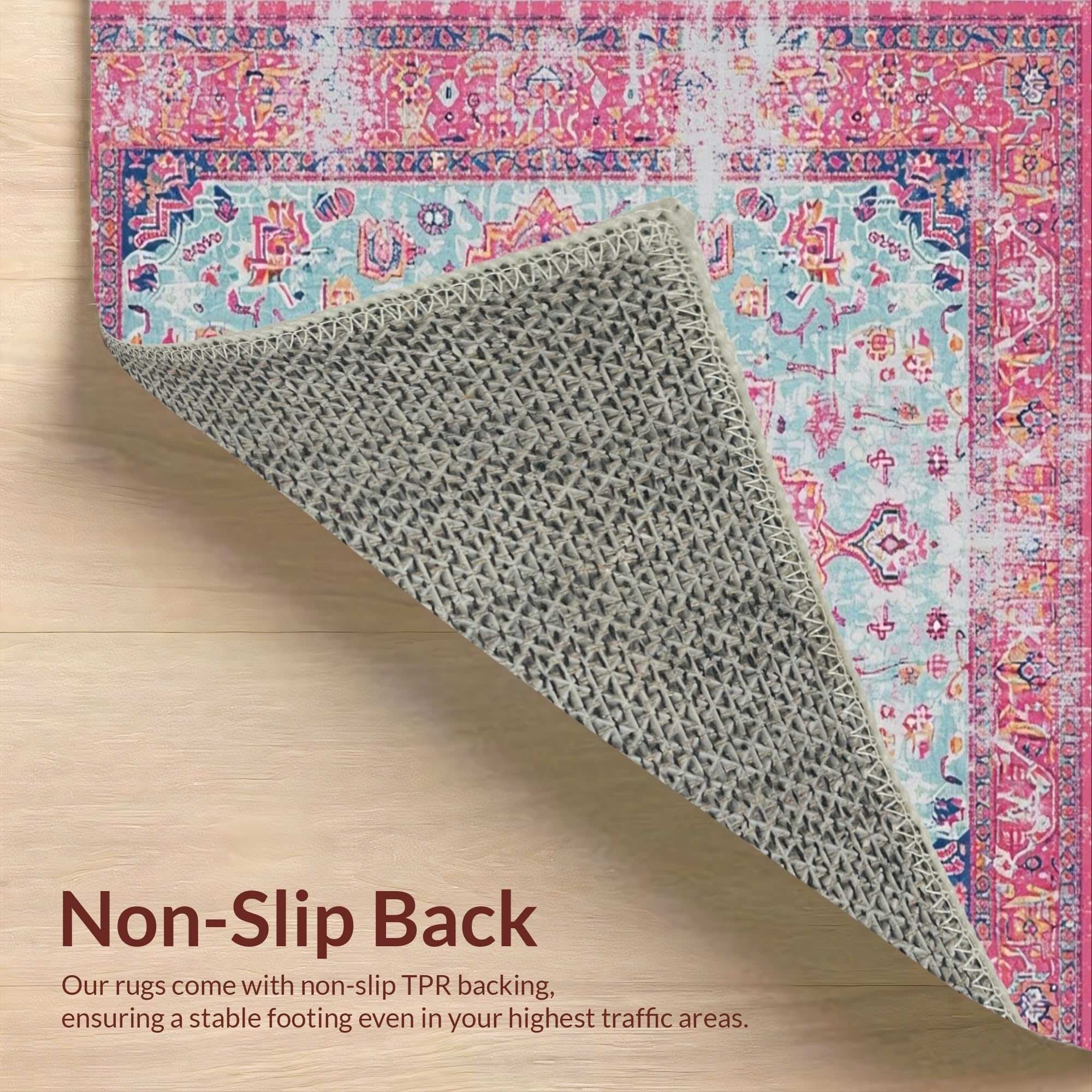 Ultra Soft Area Rug, Non Slip, Stain Resistant, Washable Area Rugs for Living Room, Bedroom, Cozy Textured Ogee Style Charm(Pink) Overview: