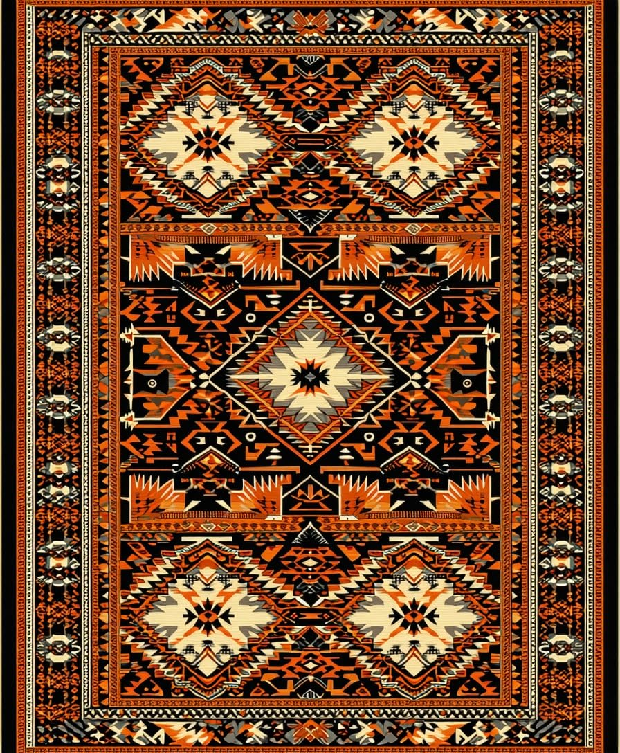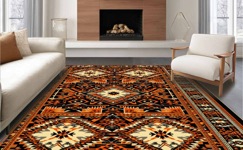 Ultra Soft Area Rug, Non Slip, Stain Resistant, Washable Area Rugs for Living Room, Bedroom, Cozy Textured Round Western Aesthetic(Black) Overview: