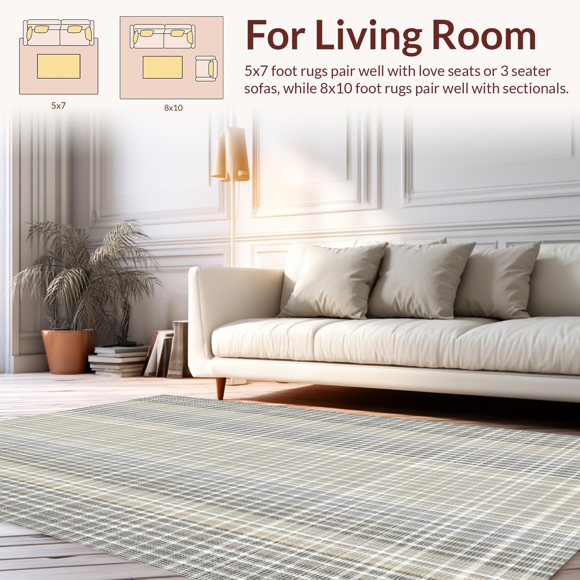 Ultra Soft Area Rug, Non Slip, Stain Resistant, Washable Area Rugs for Living Room, Bedroom, Cozy Transitional Soft Color Palette(Beige) Overview: