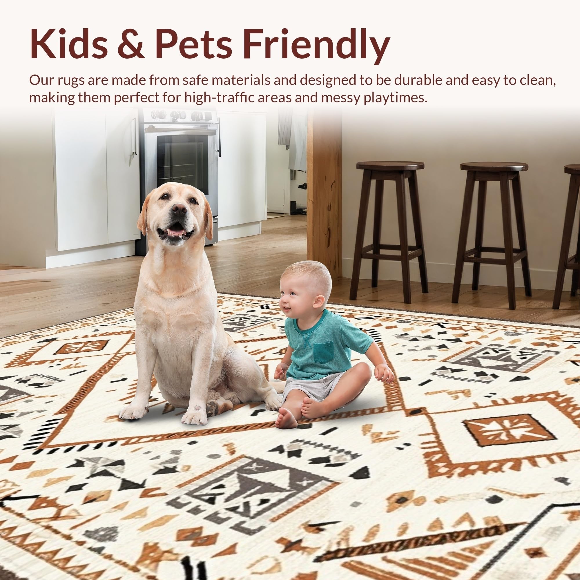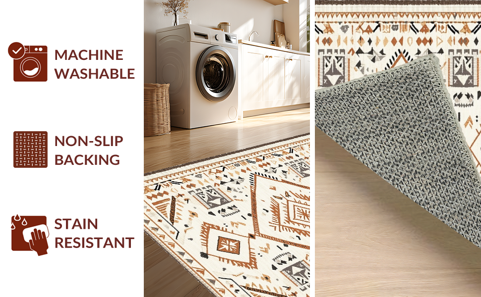 Ultra Soft Area Rug, Non Slip, Stain Resistant, Washable Area Rugs for Living Room, Bedroom, Cozy Vintage Inspired Design(Beige) Overview: