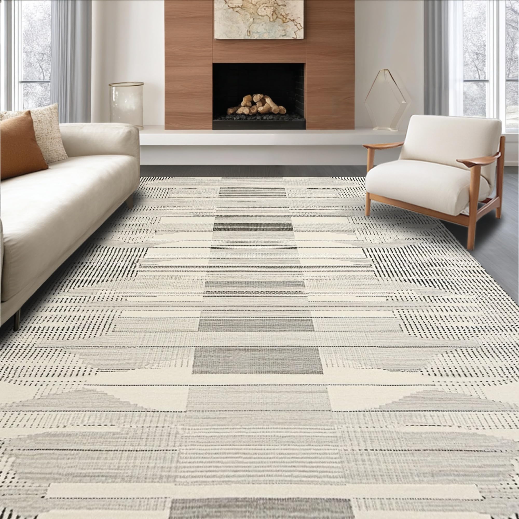 Ultra Soft Area Rug, Non Slip, Stain Resistant, Washable Area Rugs for Living Room, Bedroom, Cozy Vintage Scallop Detailing(Gray) Overview: