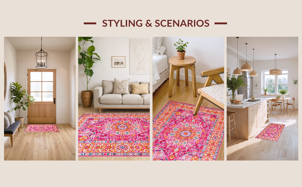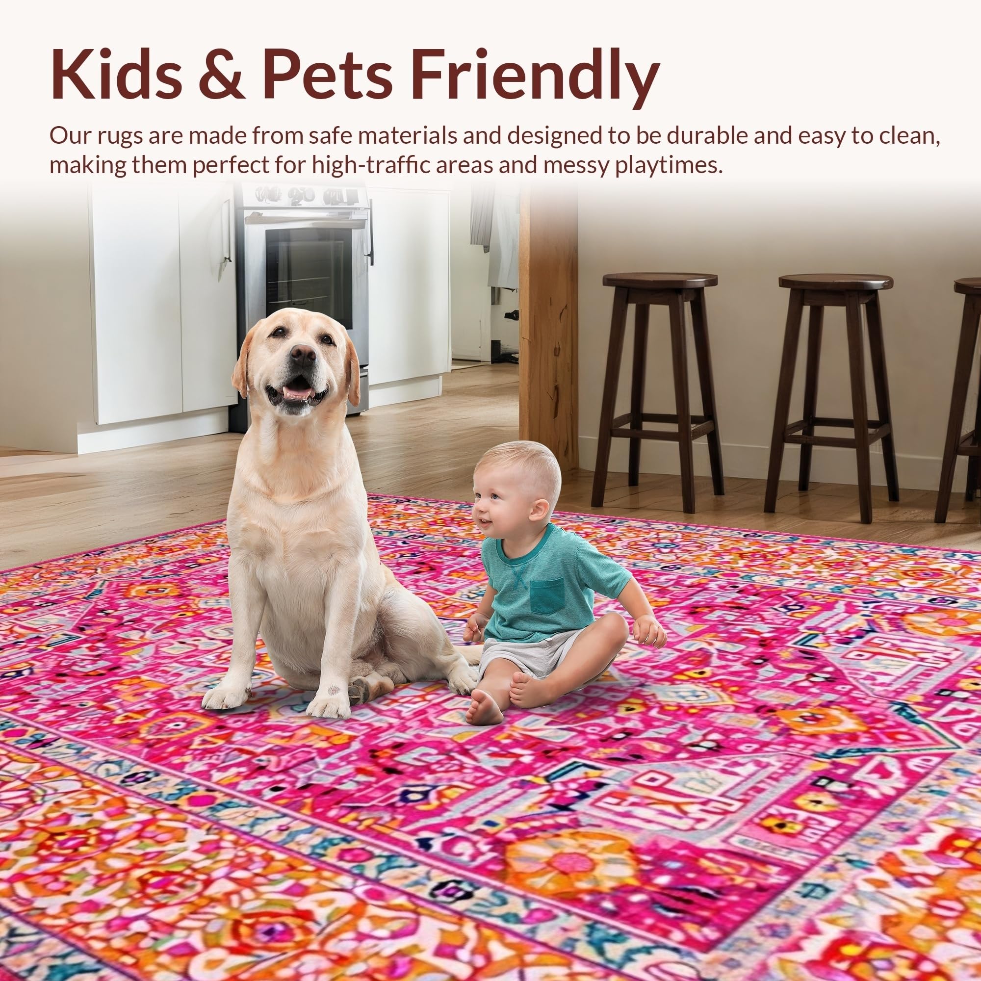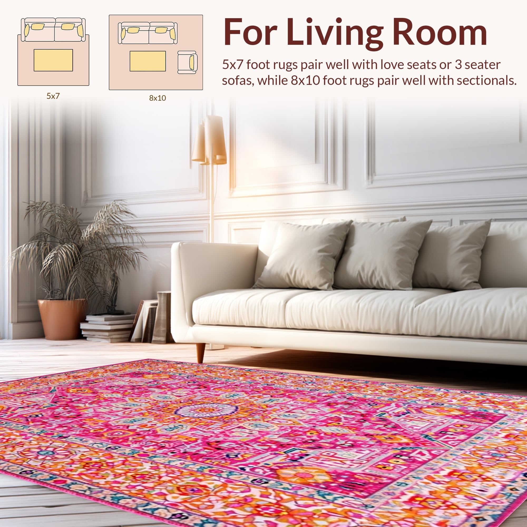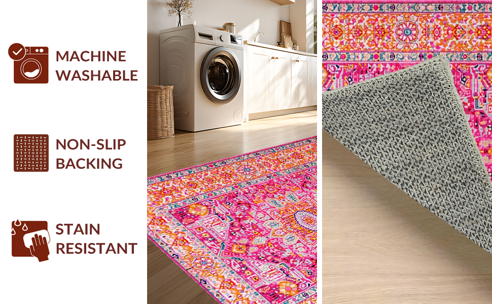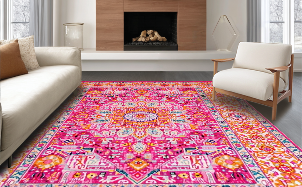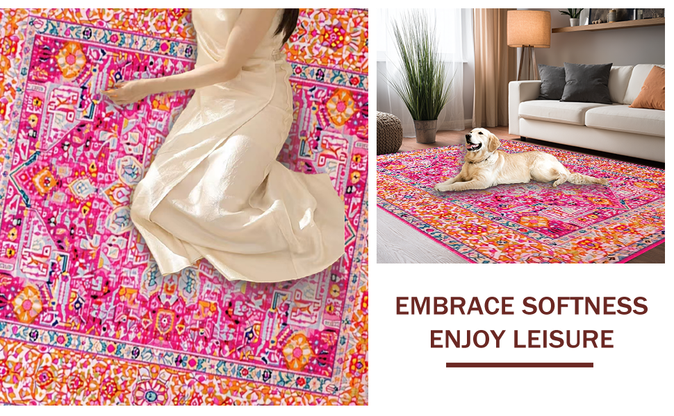 Ultra Soft Area Rug, Non Slip, Stain Resistant, Washable Area Rugs for Living Room, Bedroom, Cozy Warm Earthy Hues(Pink) Overview: