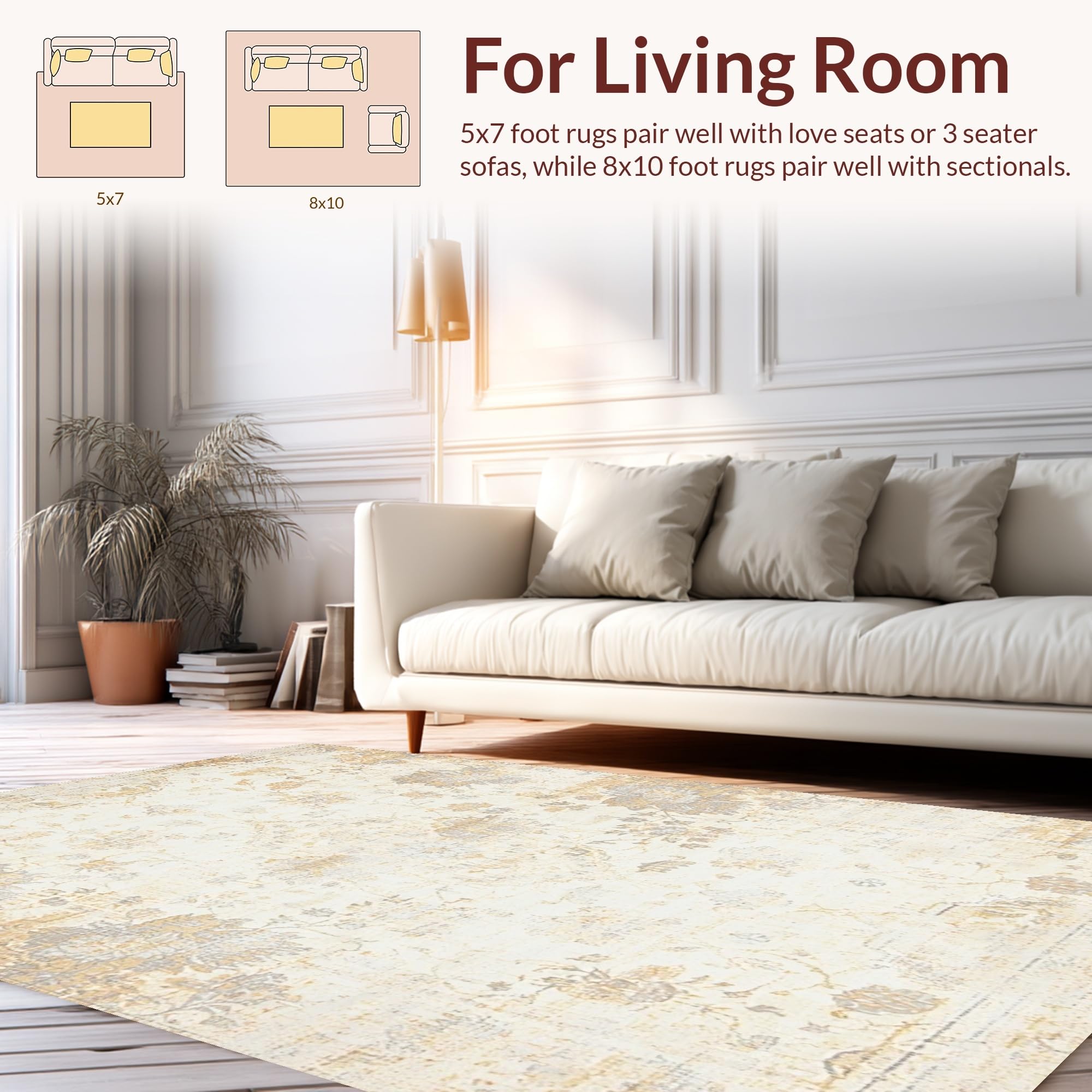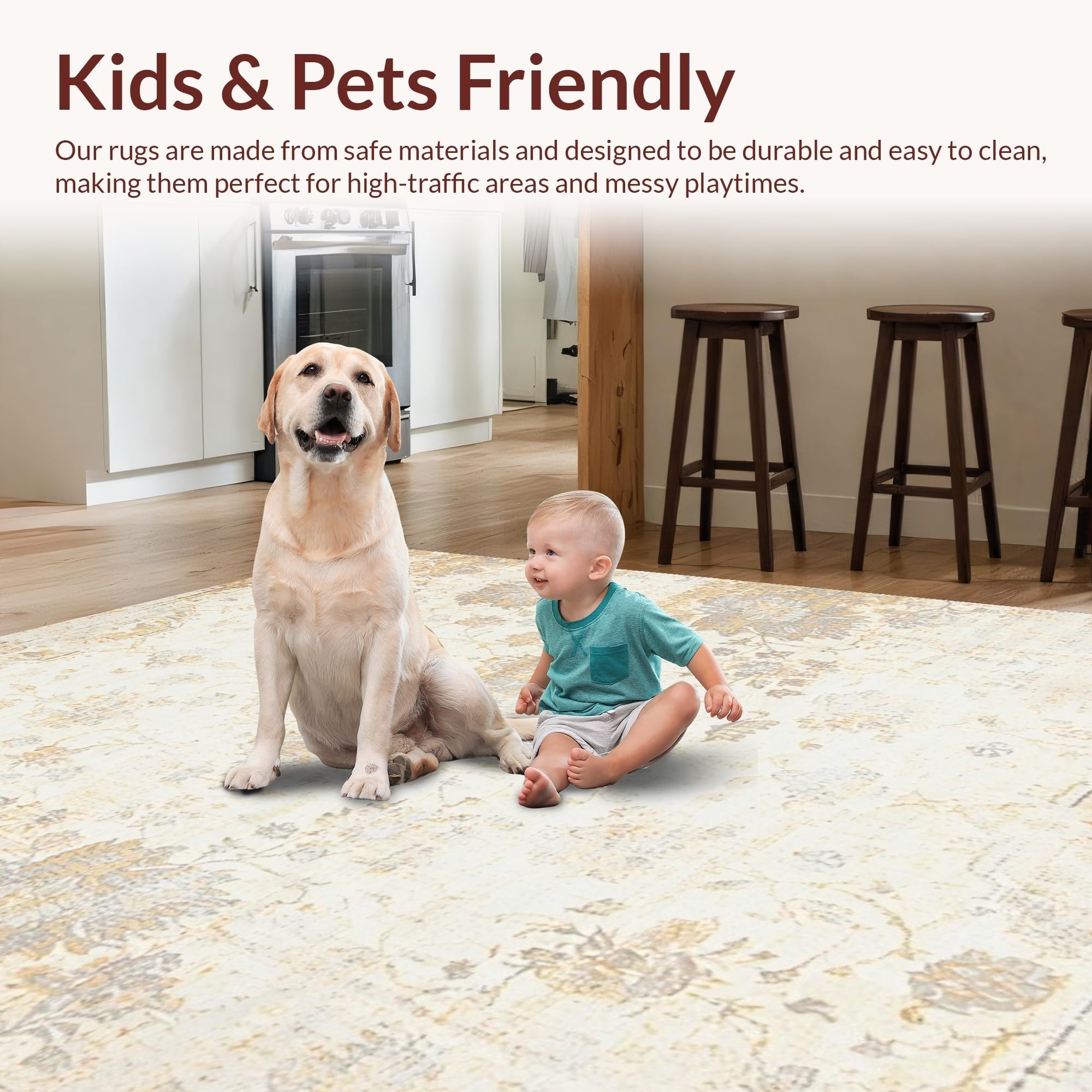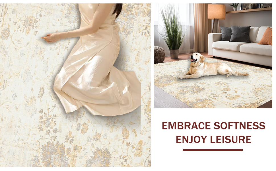 Ultra Soft Area Rug, Non Slip, Stain Resistant, Washable Area Rugs for Living Room, Bedroom, Cozy Warm Neutral Palette(Beige) Overview: