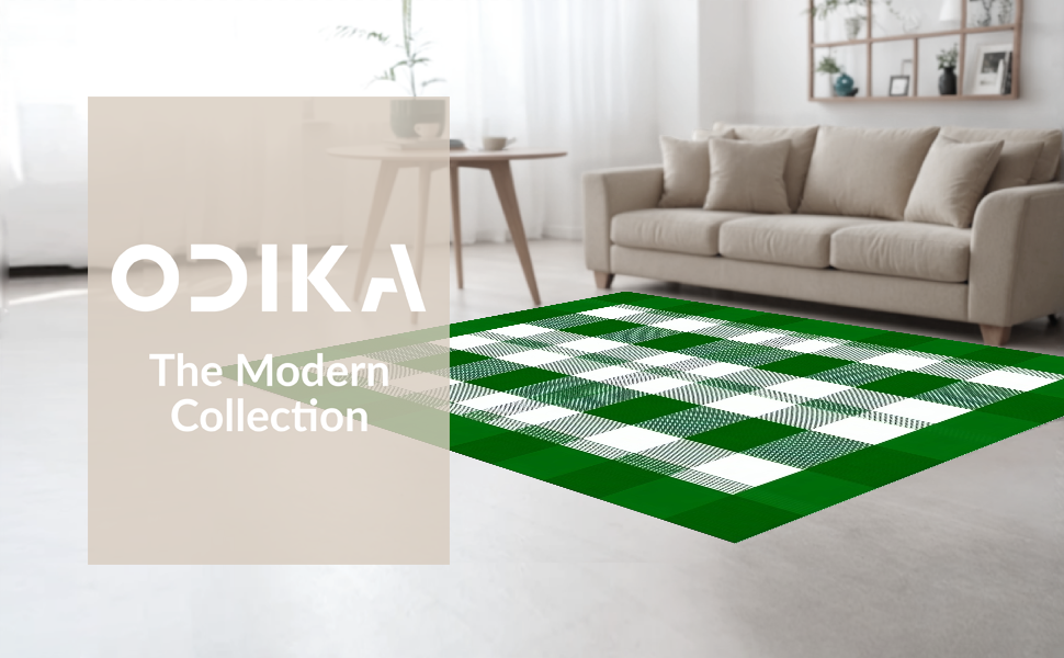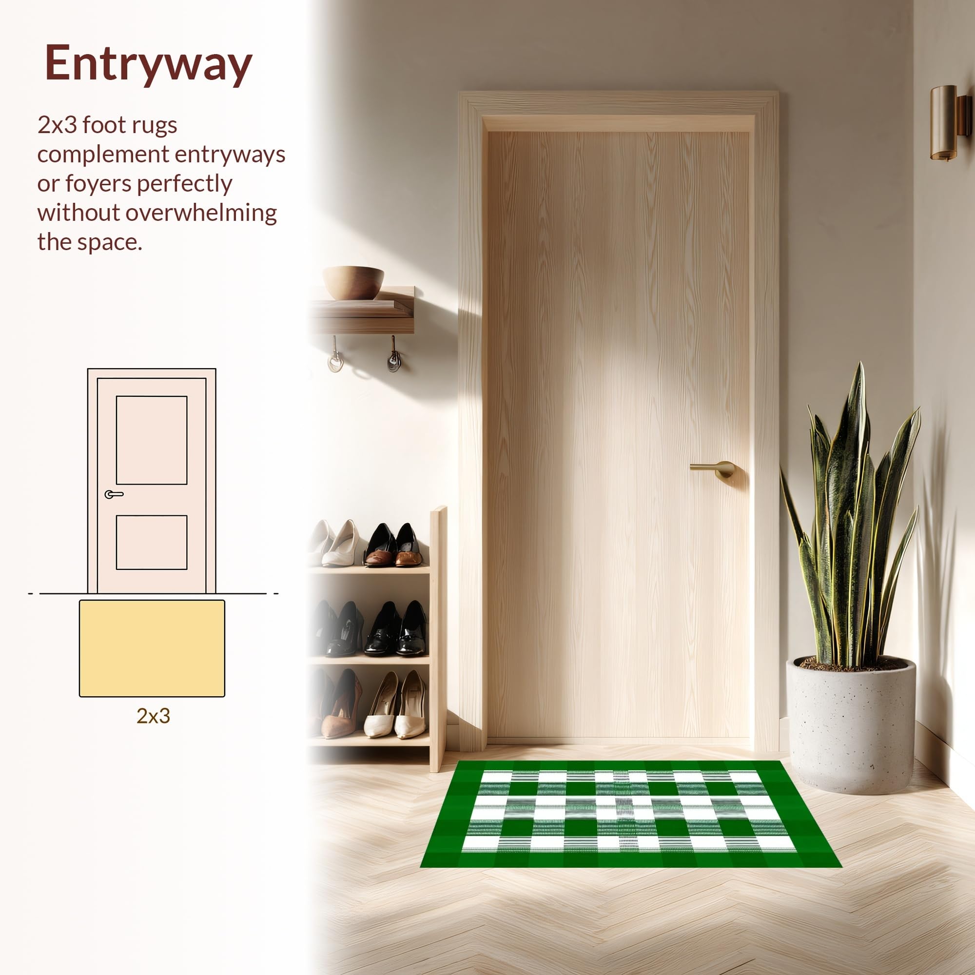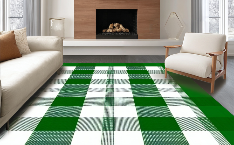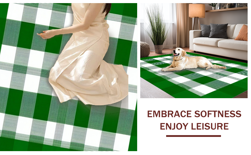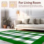 Ultra Soft Area Rug, Non Slip, Stain Resistant, Washable Area Rugs for Living Room, Bedroom, Cozy White Buffalo Check Design(Green) Overview: