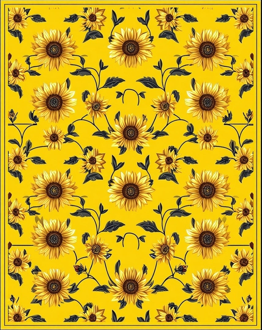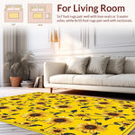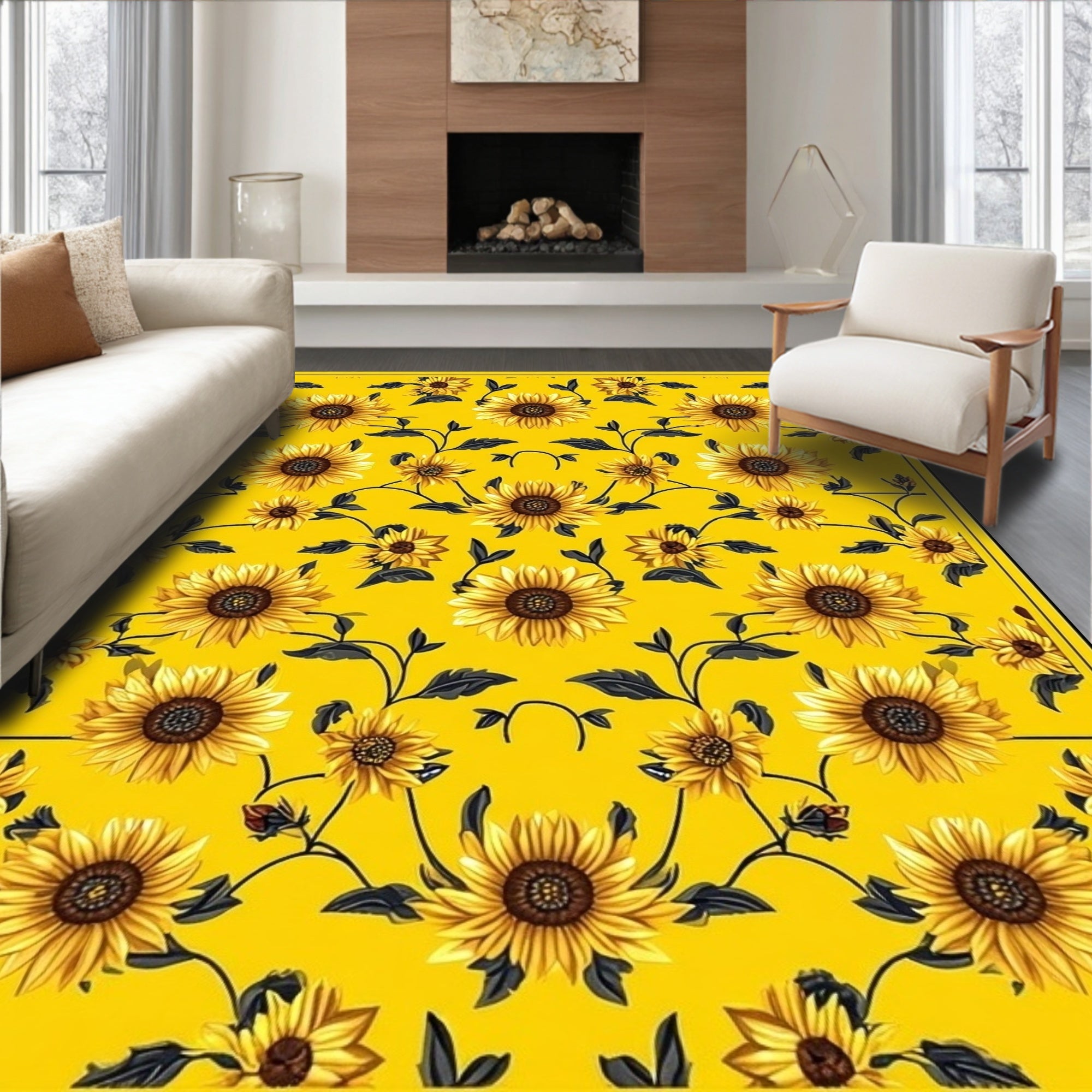 Flatwoven High Traffic Area Rug, Yellow Bloom Motif Design, Non Slip, Stain Resistant, Washable Area Rugs for Living Room, Bedroom (Yellow) Overview: