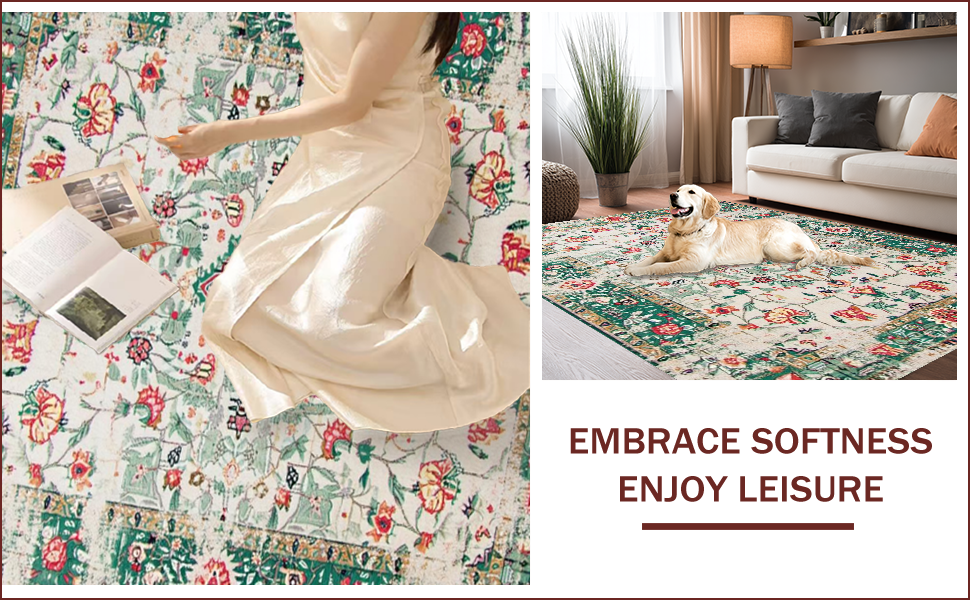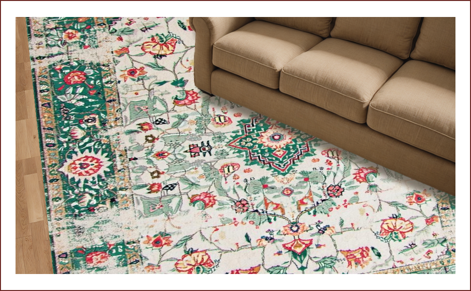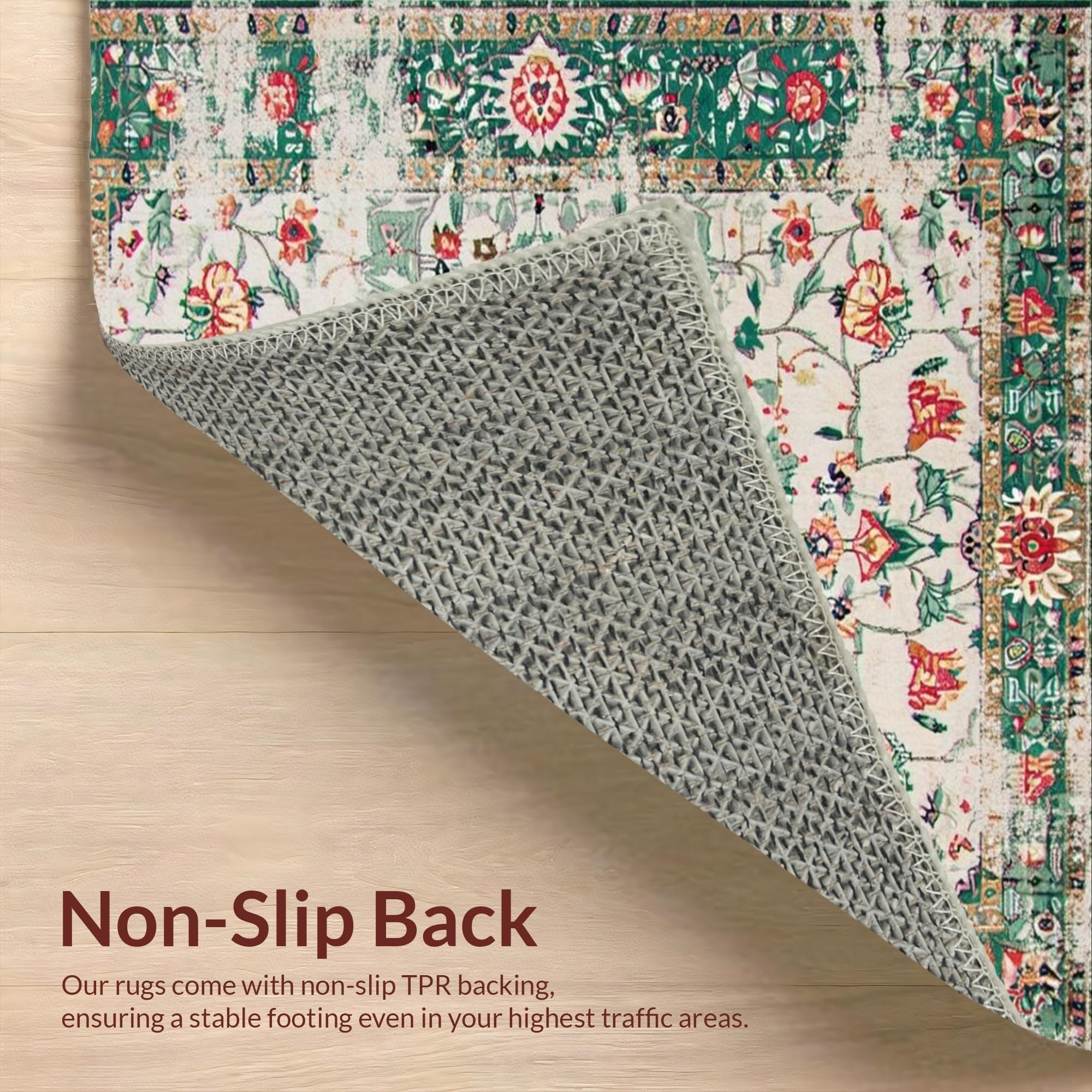 Ultra Soft Area Rug, Non Slip, Stain Resistant, Washable Area Rugs for Living Room, Bedroom, Cream Beige Distressed Artful Design(White) Overview: