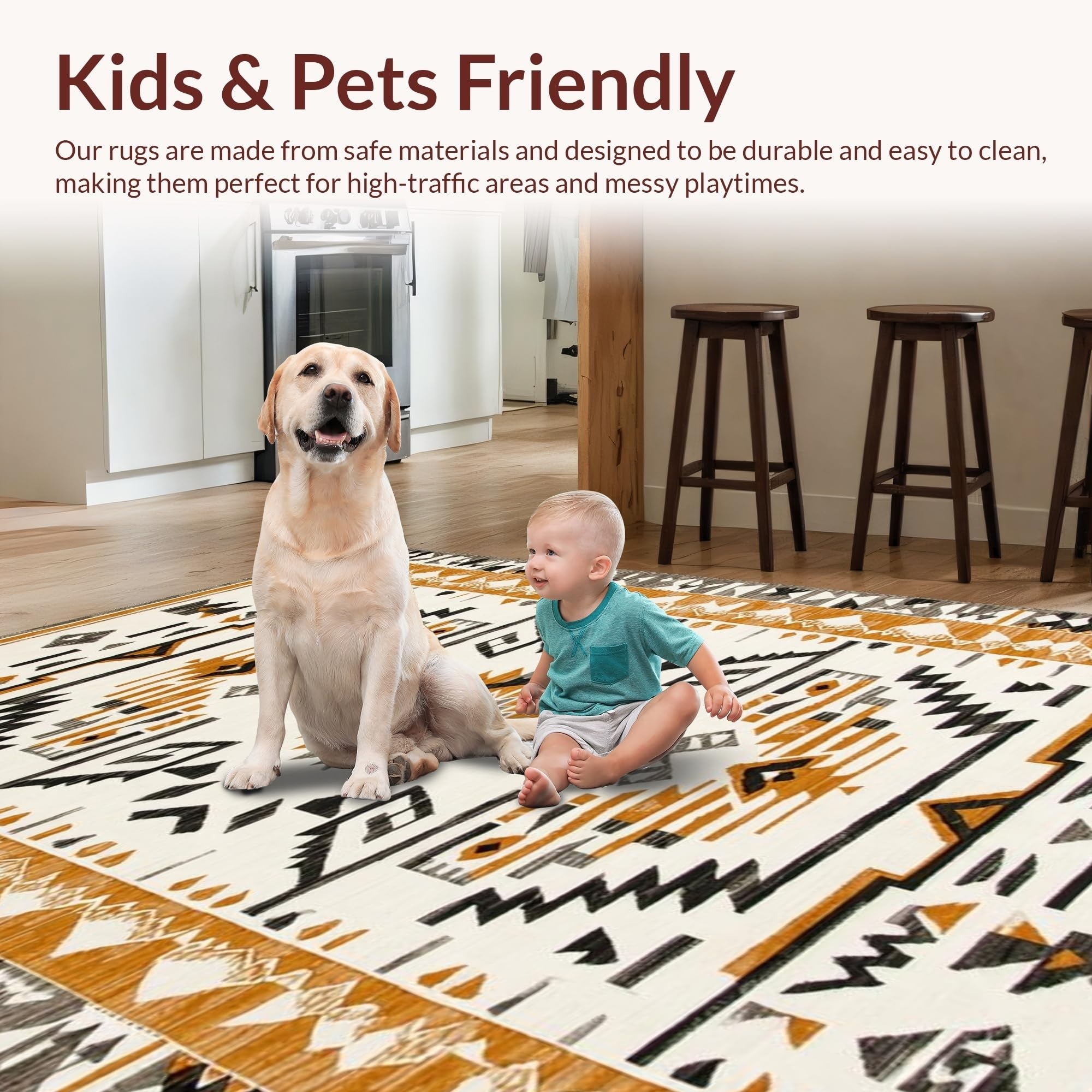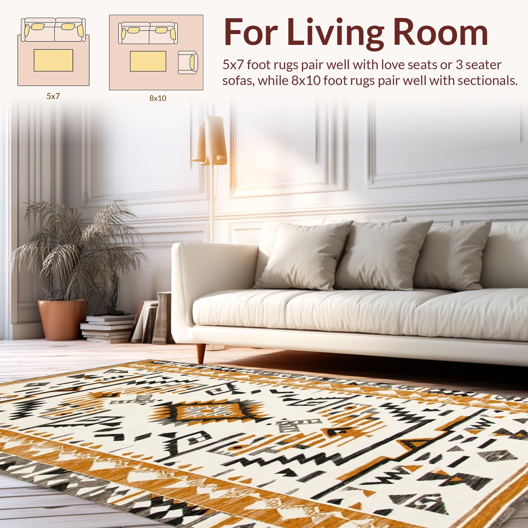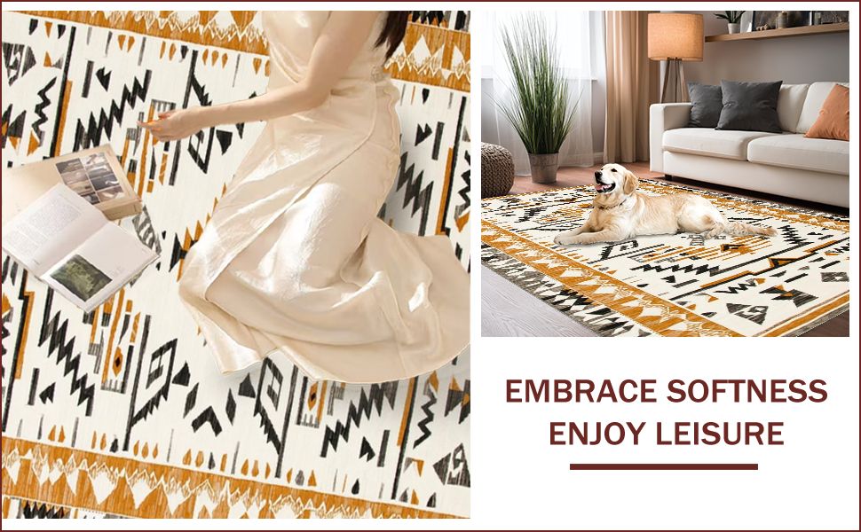 Ultra Soft Area Rug, Non Slip, Stain Resistant, Washable Area Rugs for Living Room, Bedroom, Creamy Rustic Abstract Motif(Beige) Overview: