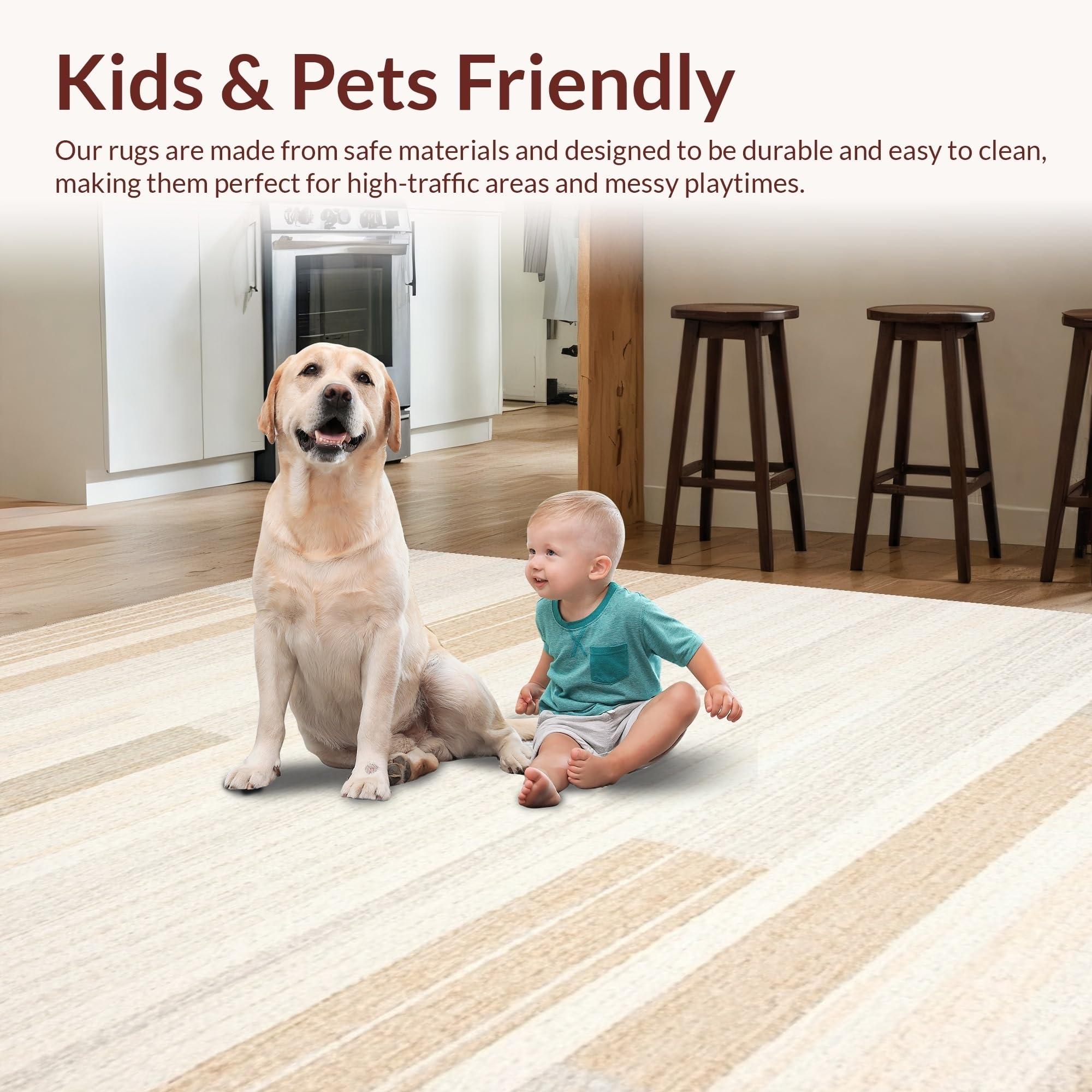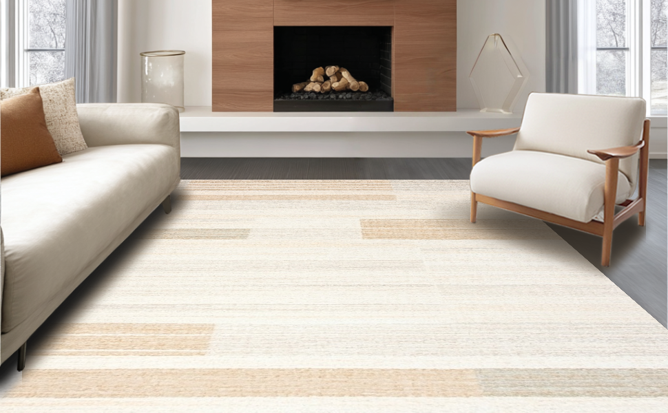 Ultra Soft Area Rug, Non Slip, Stain Resistant, Washable Area Rugs for Living Room, Bedroom, Creamy Textured Geometric Elegance(Beige) Overview: