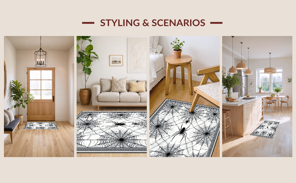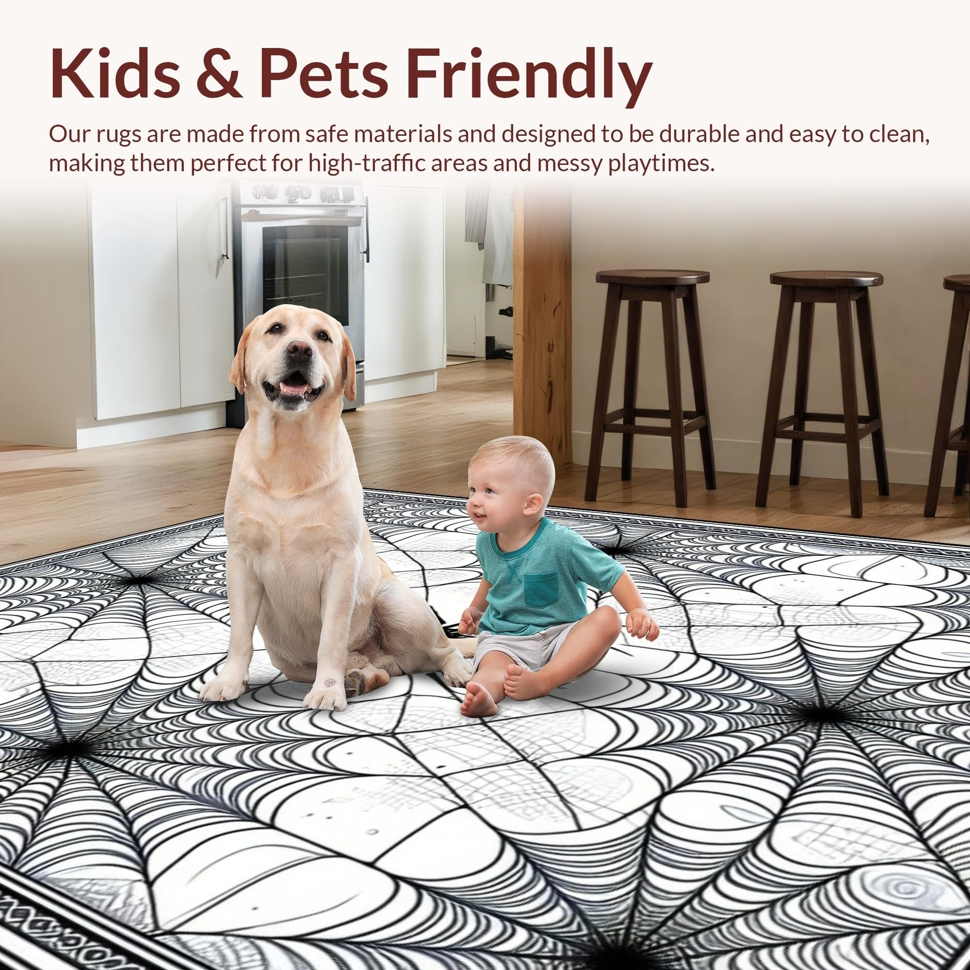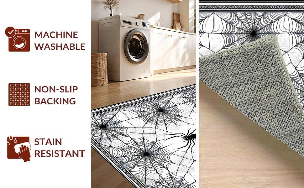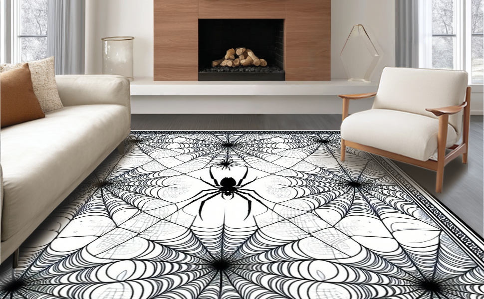 Ultra Soft Area Rug, Non Slip, Stain Resistant, Washable Area Rugs for Living Room, Bedroom, Creepy Vintage Halloween Theme(Black) Overview:
