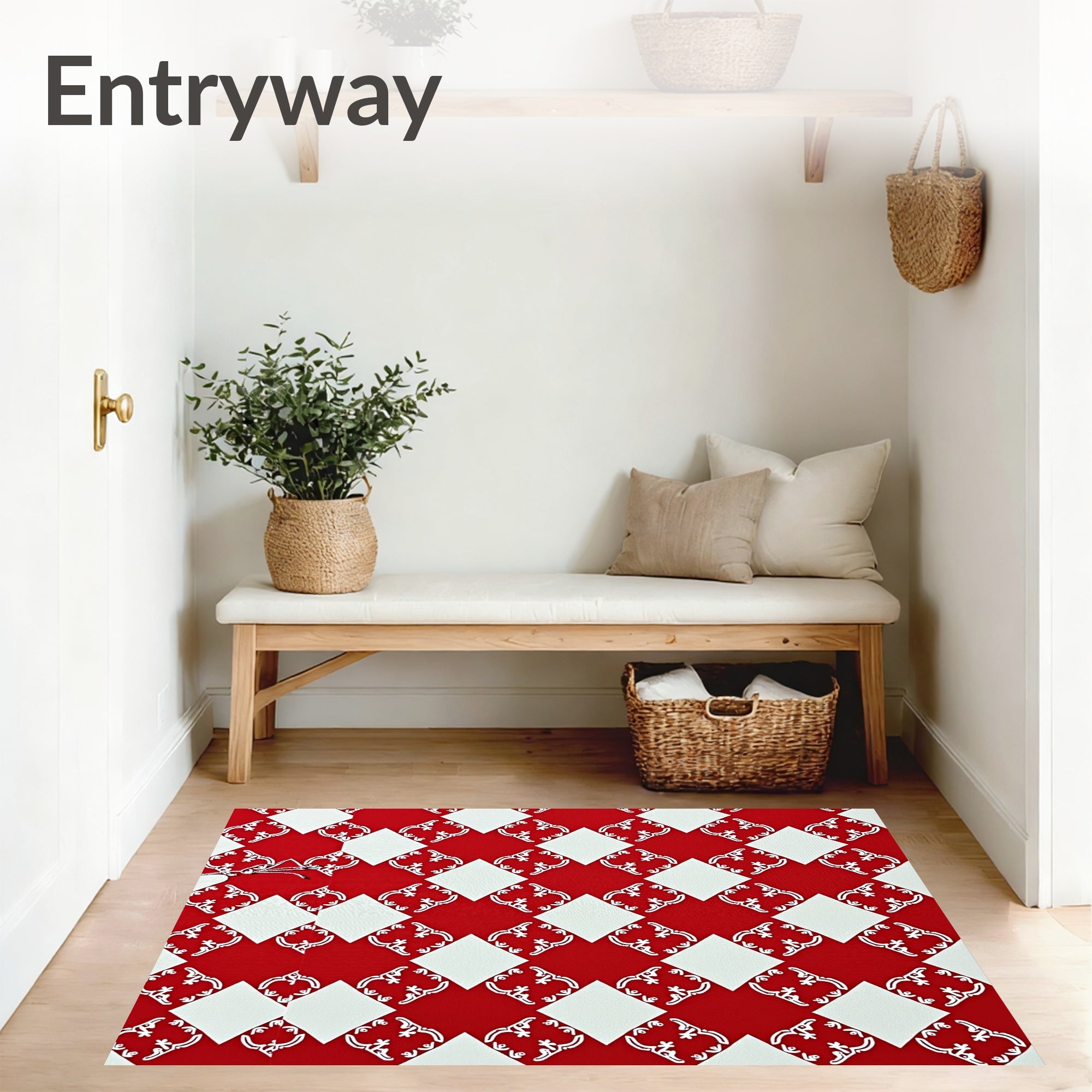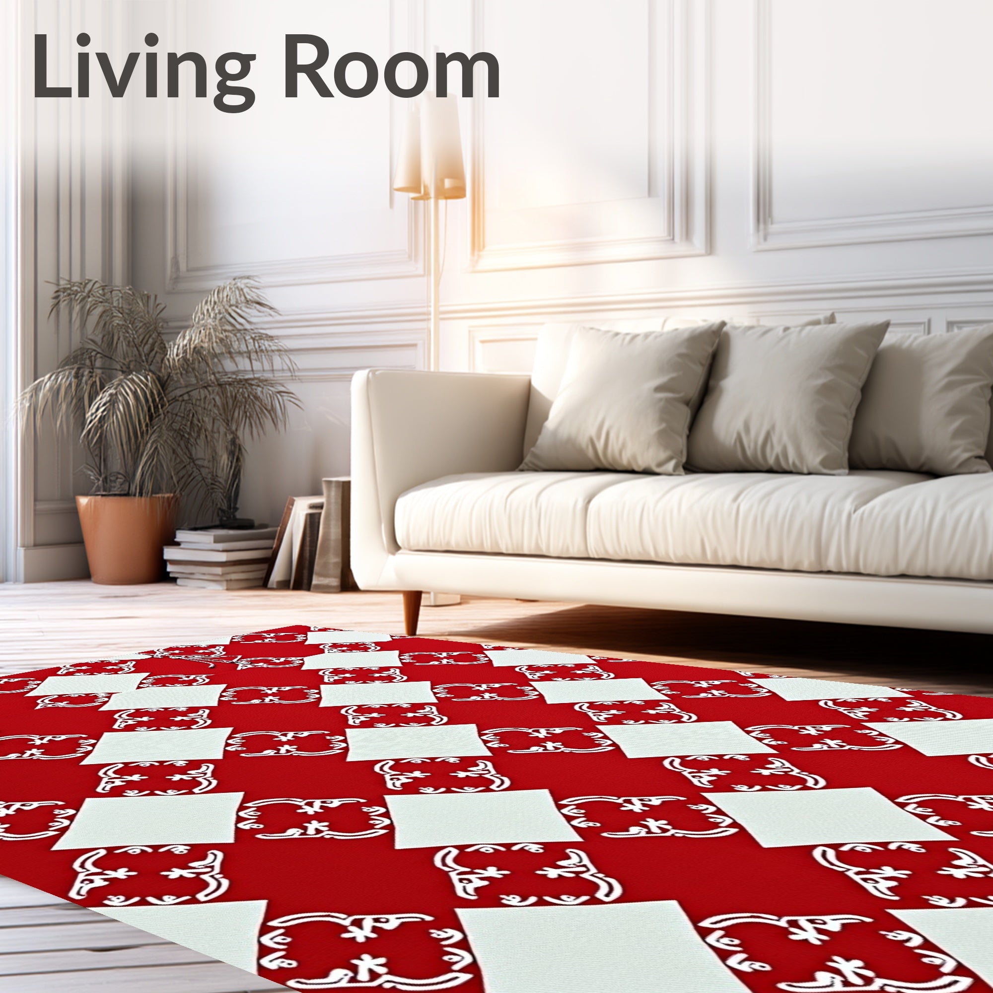 Ultra Soft Area Rug, Non Slip, Stain Resistant, Washable Area Rugs for Living Room, Bedroom, Crisscross Yuletide Check with Vintage Frosted Detailing(Red) Overview: