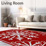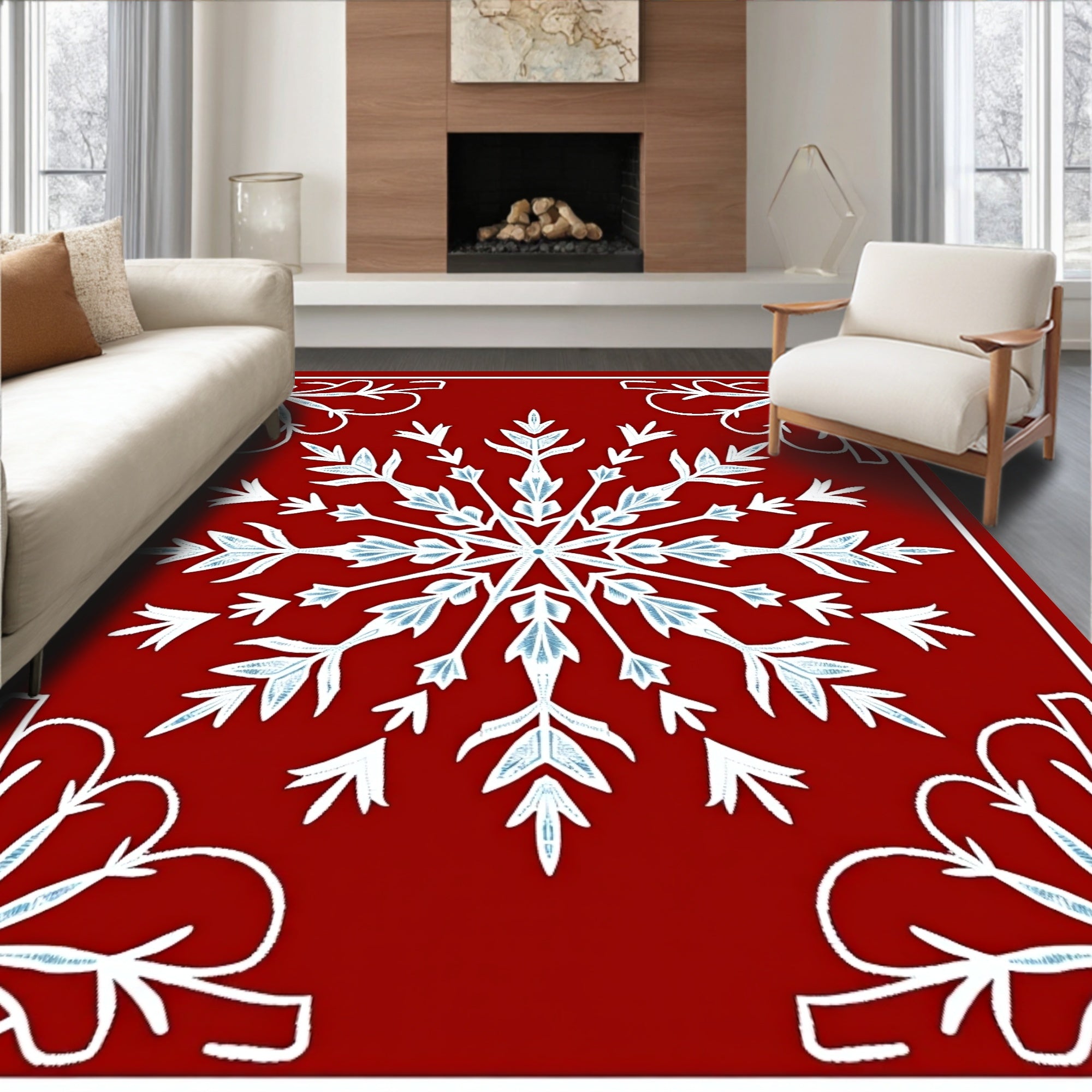 Ultra Soft Area Rug, Non Slip, Stain Resistant, Washable Area Rugs for Living Room, Bedroom, Crystalline Winter with Intricate Snowflake Motifs(Red) Overview:
