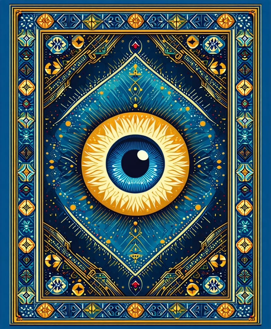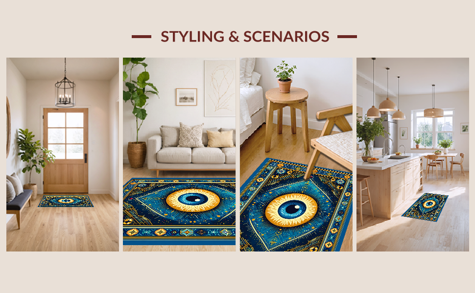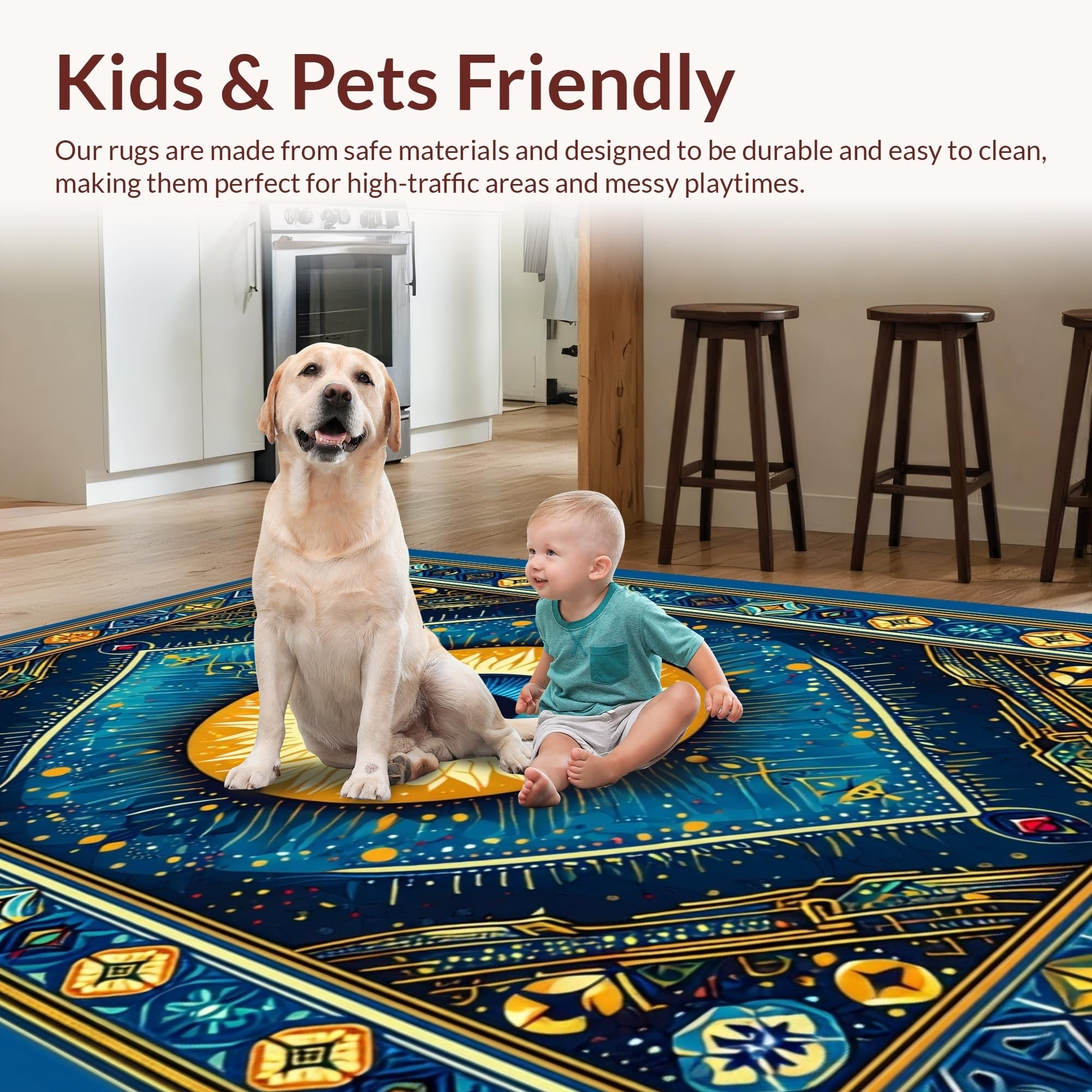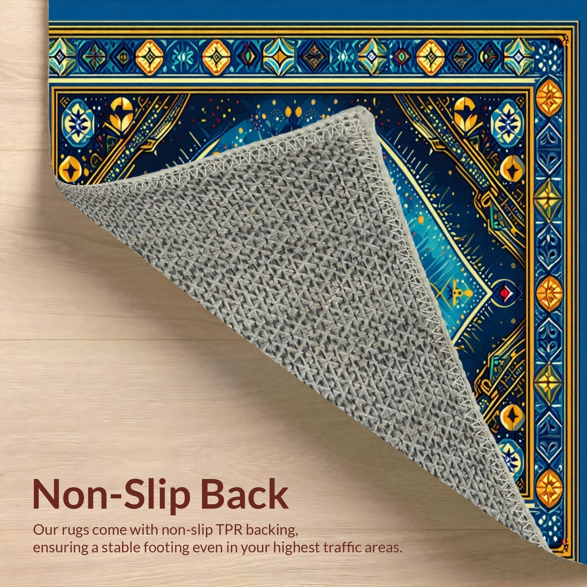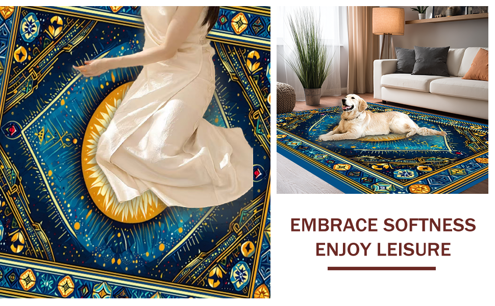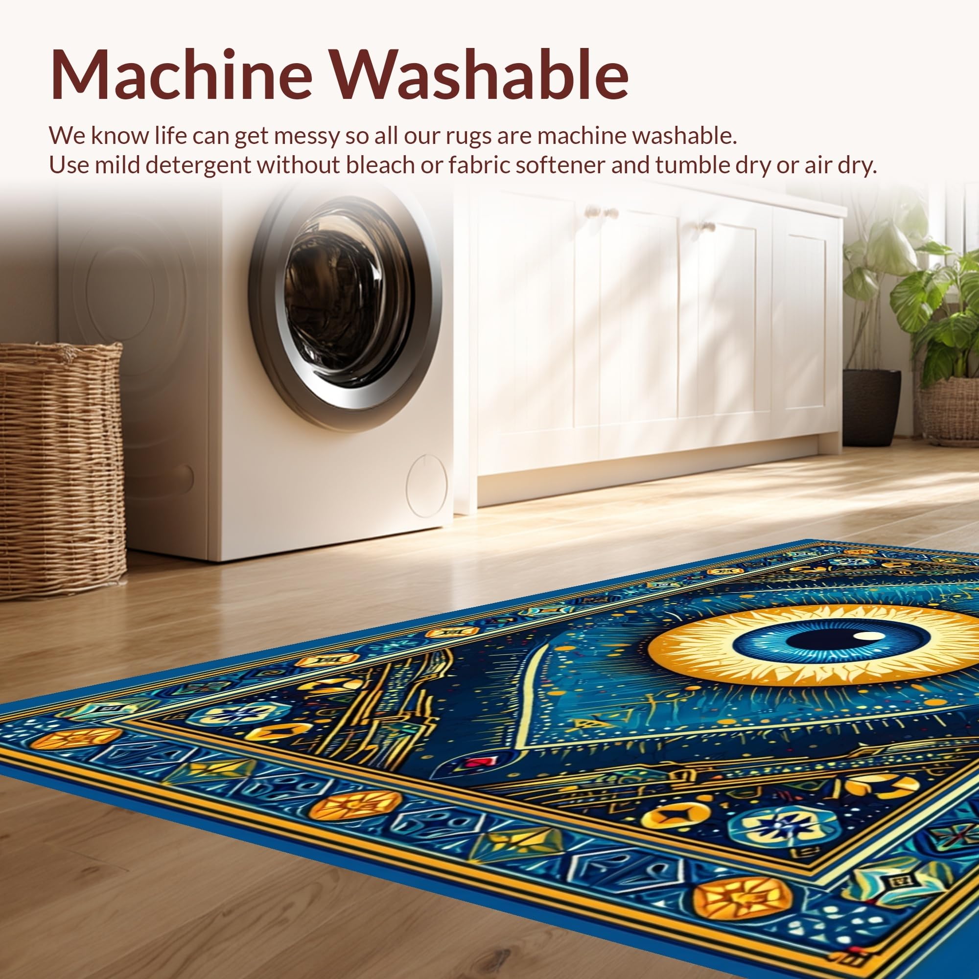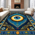Ultra Soft Area Rug, Non Slip, Stain Resistant, Washable Area Rugs for Living Room, Bedroom, Cultural Geometric Eye Motif(Blue) Overview: