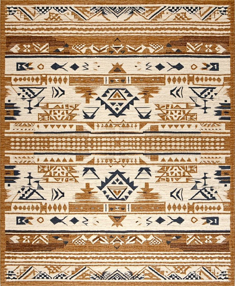 Flatwoven High Traffic Area Rug, Cultural Heritage Geometric Motif, Non Slip, Stain Resistant, Washable Area Rugs for Living Room, Bedroom (Beige) Overview: