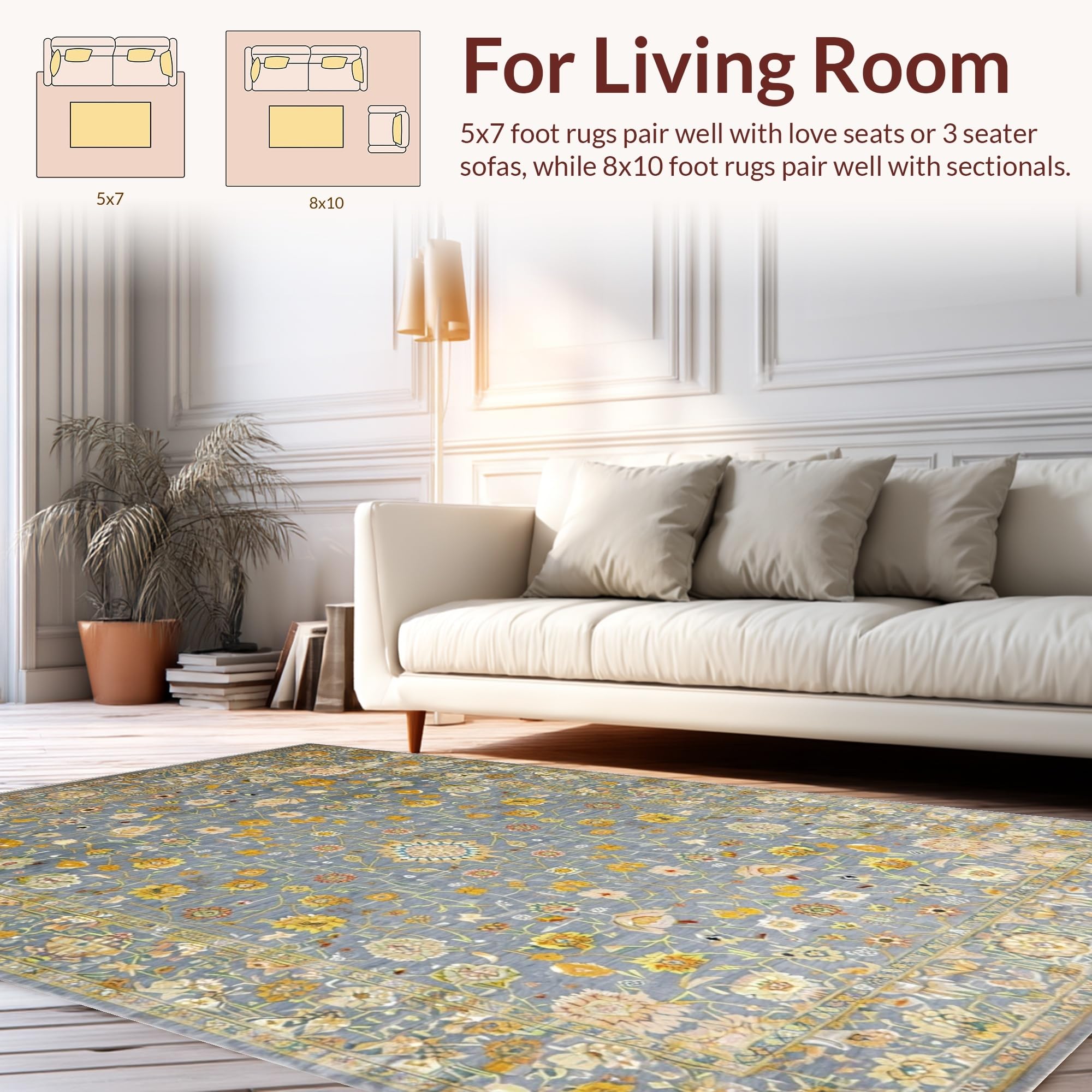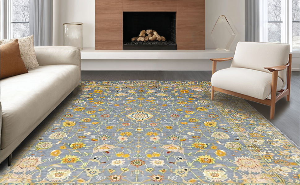 Ultra Soft Area Rug, Non Slip, Stain Resistant, Washable Area Rugs for Living Room, Bedroom, Curated Classic Damask Design(Blue) Overview: