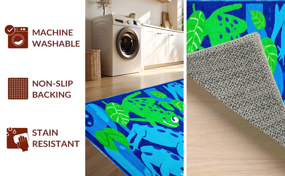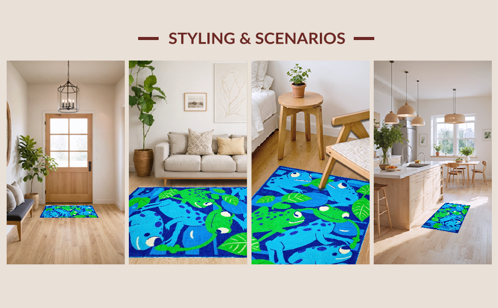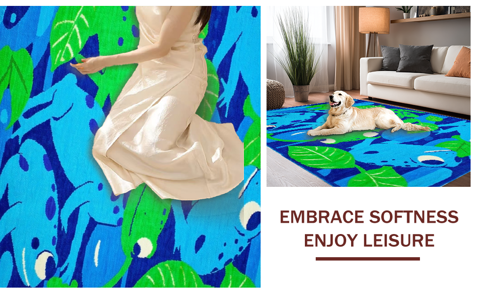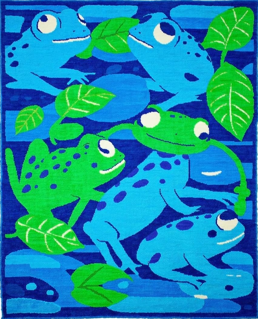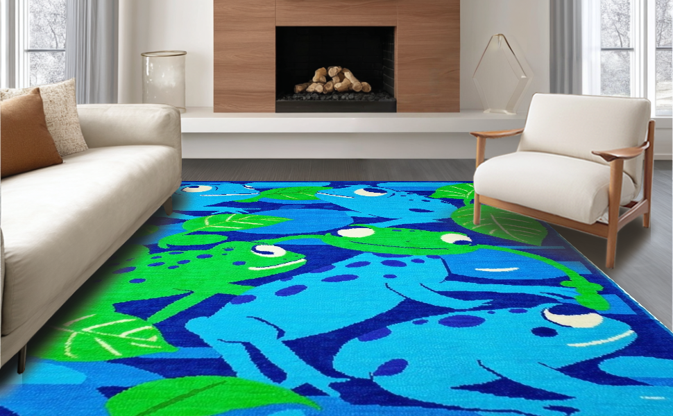 Ultra Soft Area Rug, Non Slip, Stain Resistant, Washable Area Rugs for Living Room, Bedroom, Cute Frog Graphic Decor Style(Blue) Overview: