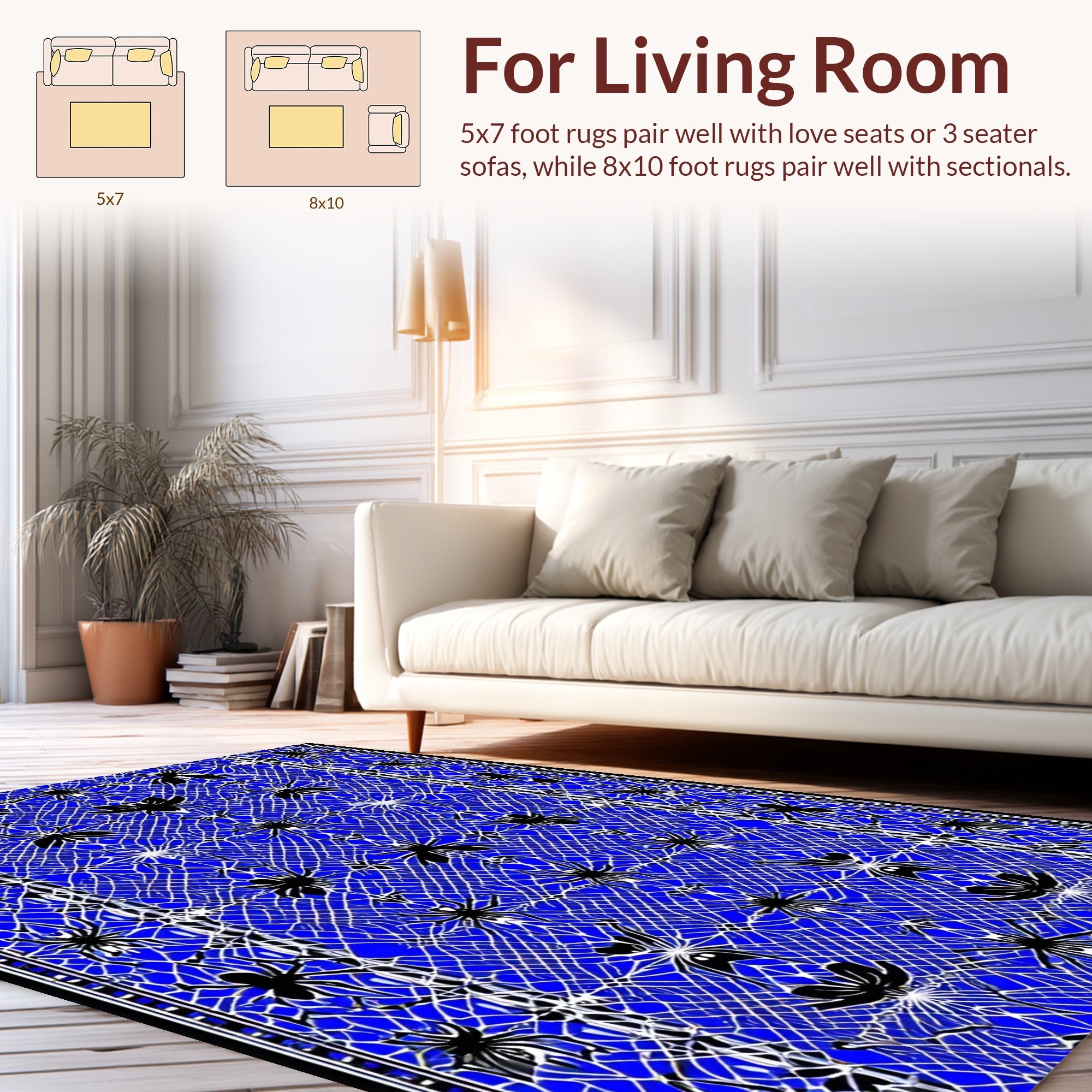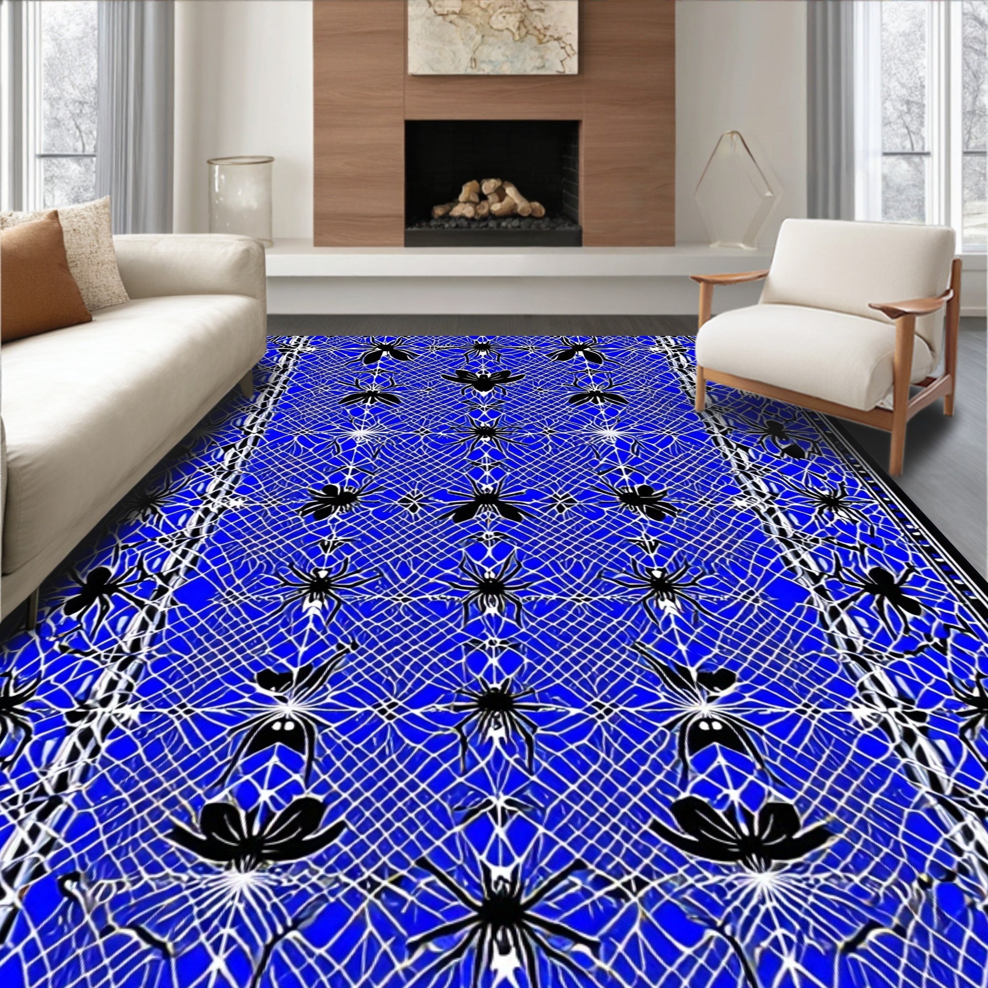 Flatwoven High Traffic Area Rug, Cute Gothic Style Webbed Design, Non Slip, Stain Resistant, Washable Area Rugs for Living Room, Bedroom (Blue) Overview: