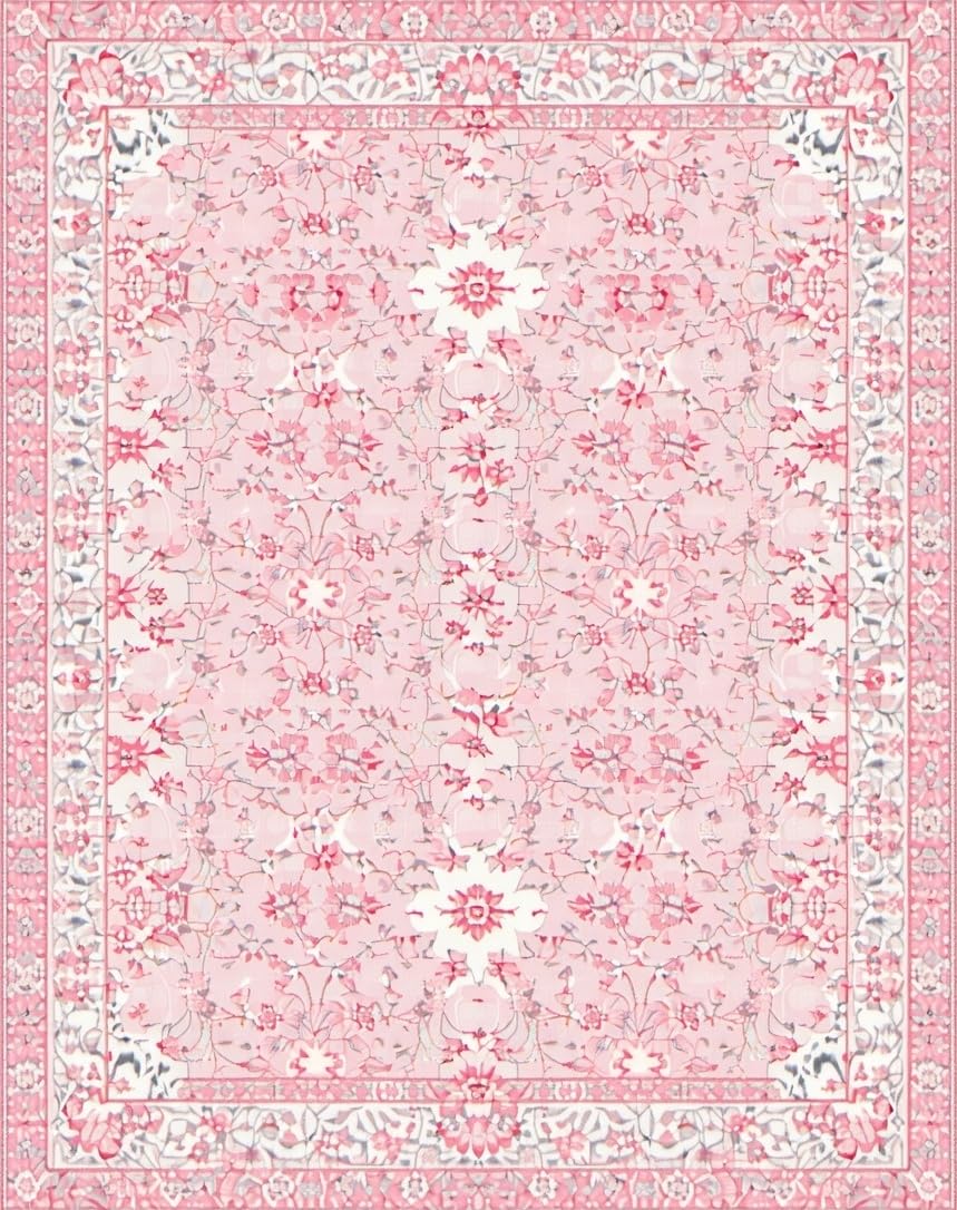 Ultra Soft Area Rug, Non Slip, Stain Resistant, Washable Area Rugs for Living Room, Bedroom, Cute Light Pink Botanical Design(Pink) Overview: