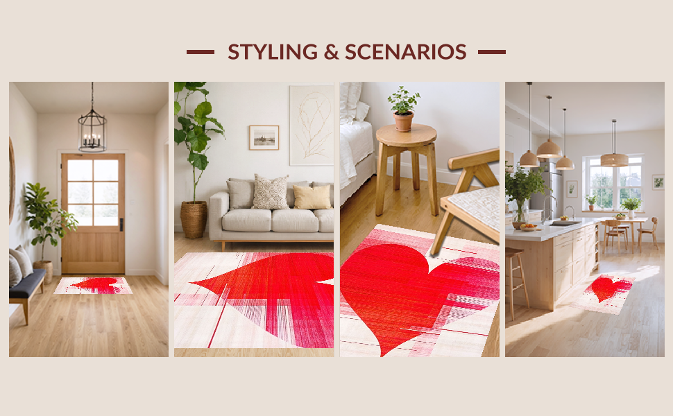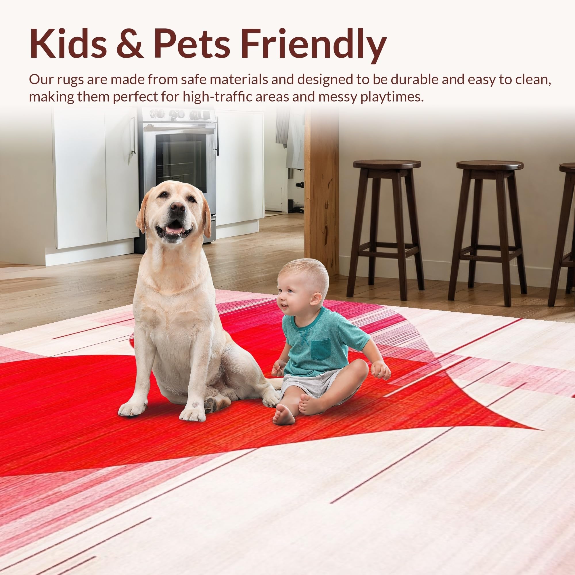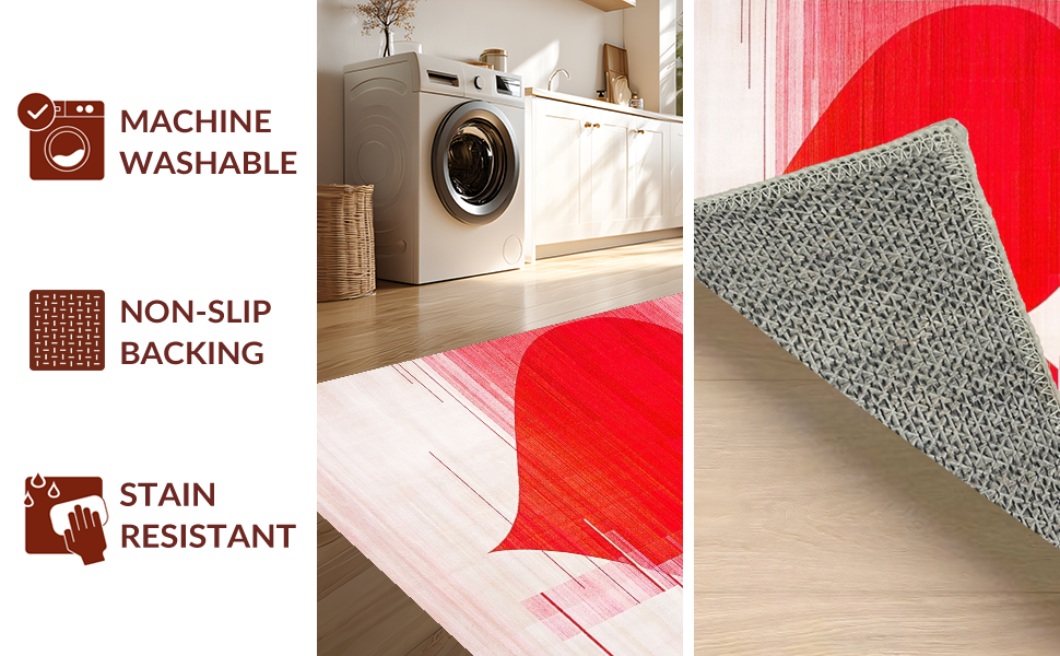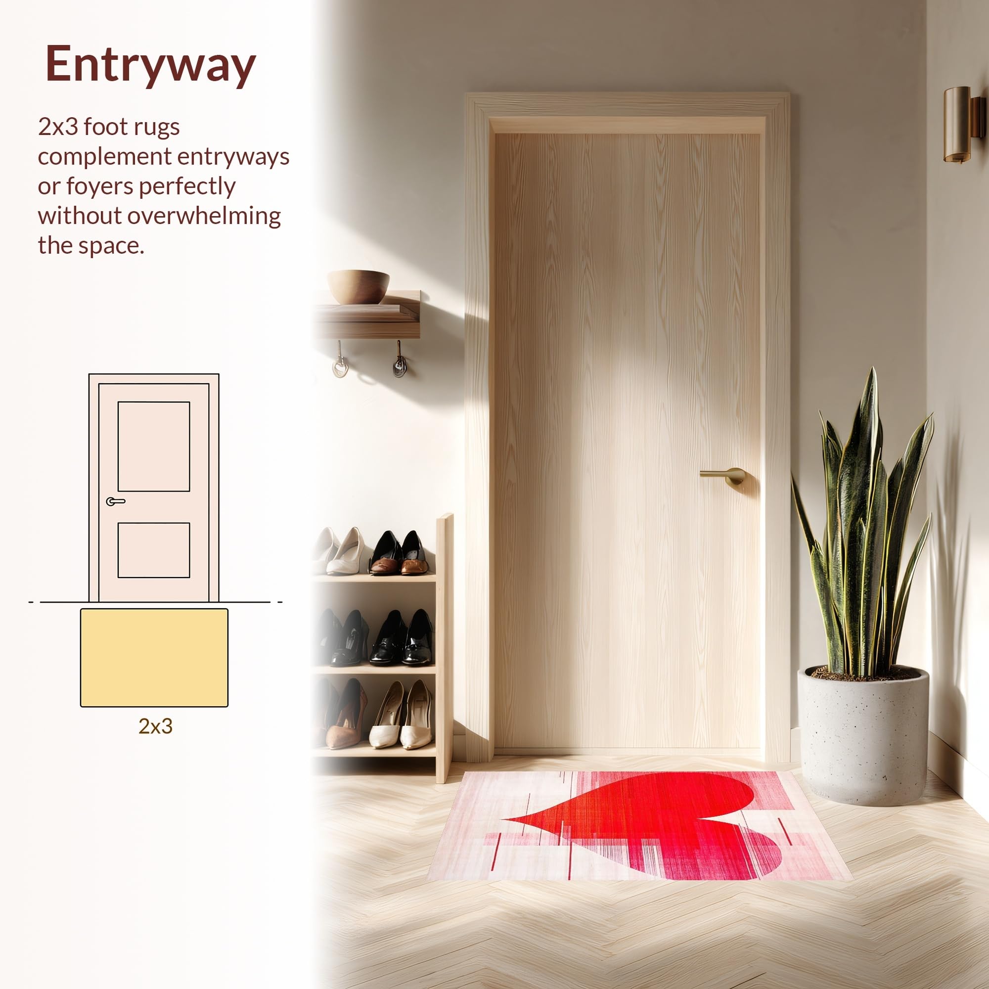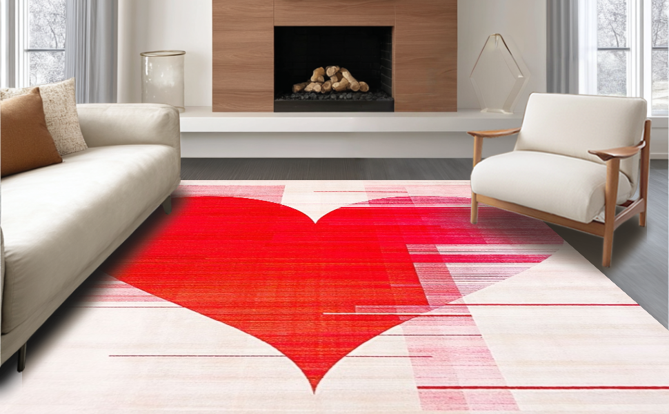 Ultra Soft Area Rug, Non Slip, Stain Resistant, Washable Area Rugs for Living Room, Bedroom, Cute Modern Heart Pattern(Red) Overview:
