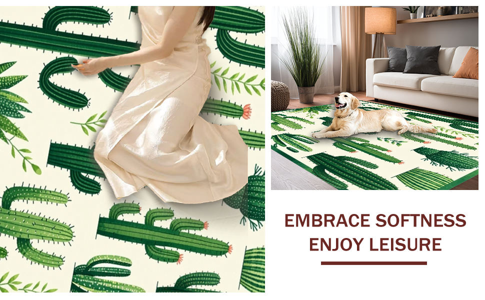 Ultra Soft Area Rug, Non Slip, Stain Resistant, Washable Area Rugs for Living Room, Bedroom, Cute Plant-Based Decorative Piece(Green) Overview: