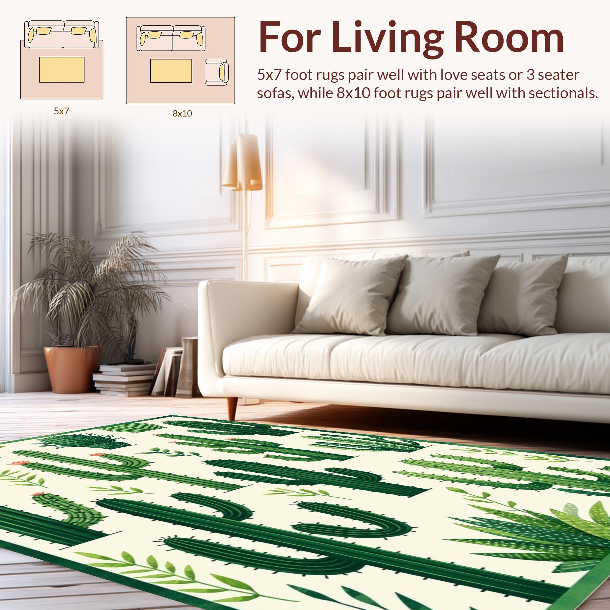 Flatwoven High Traffic Area Rug, Cute Plant Based Decorative, Non Slip, Stain Resistant, Washable Area Rugs for Living Room, Bedroom (Green) Overview: