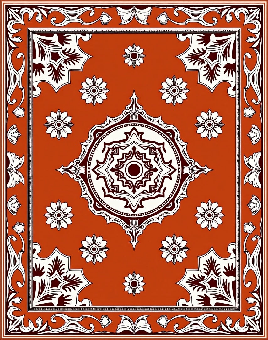 Damask Floral Medallion with Wine Tones(Orange)