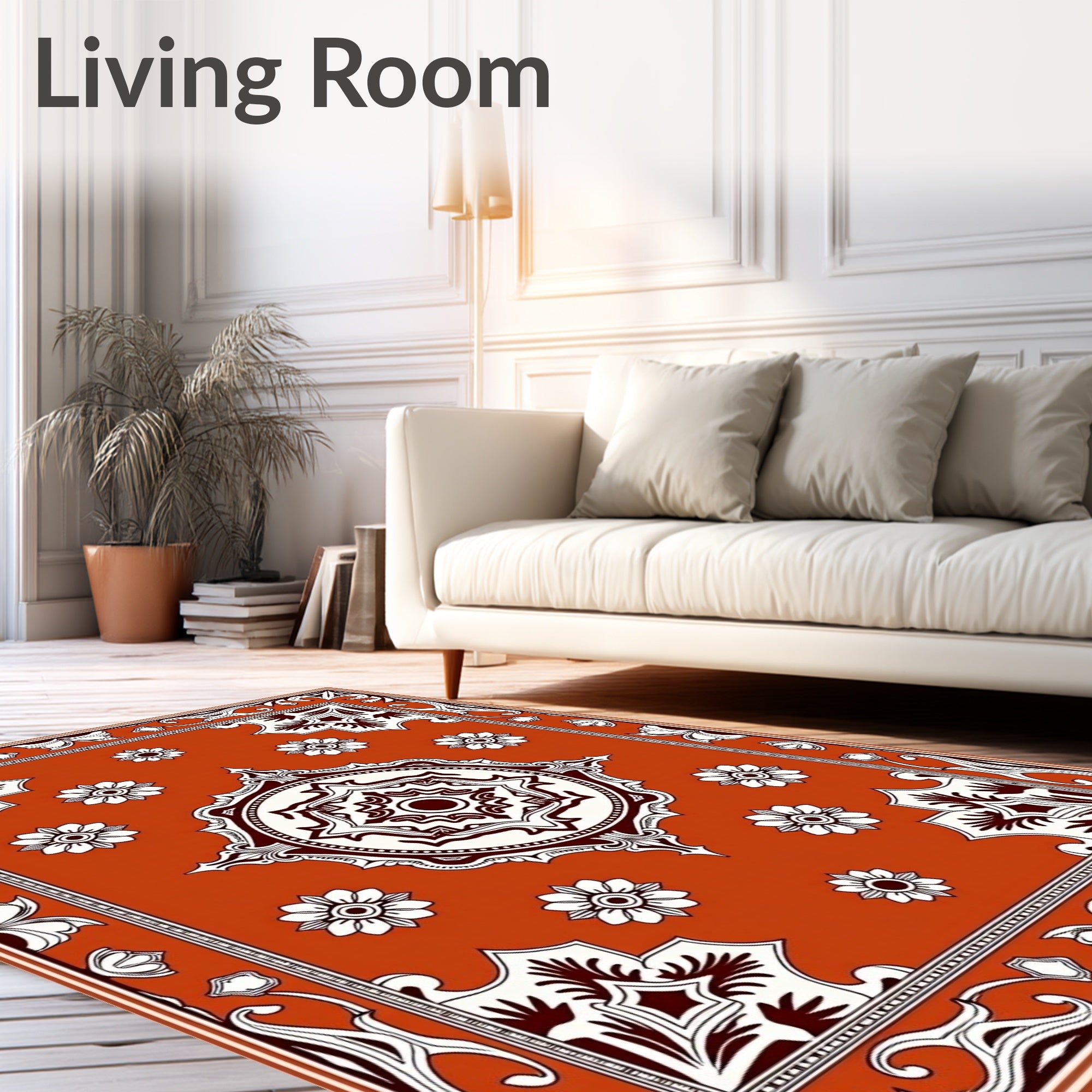 Ultra Soft Area Rug, Non Slip, Stain Resistant, Washable Area Rugs for Living Room, Bedroom, Damask Floral Medallion with Wine Tones(Orange) Overview: