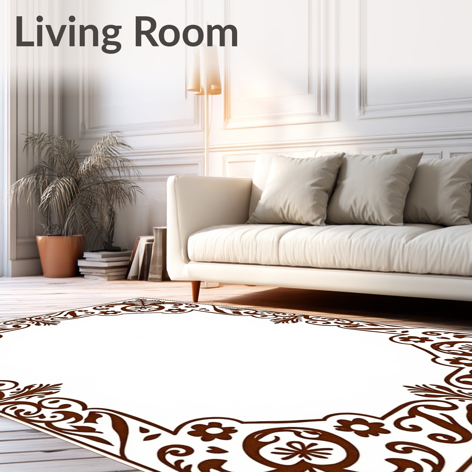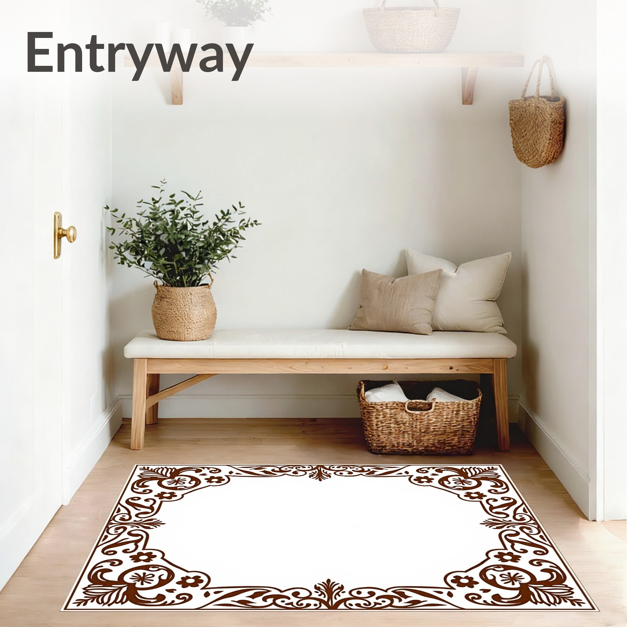 Flatwoven High Traffic Area Rug, Damask Flourish Motif Hallway, Non Slip, Stain Resistant, Washable Area Rugs for Living Room, Bedroom (Brown) Overview: