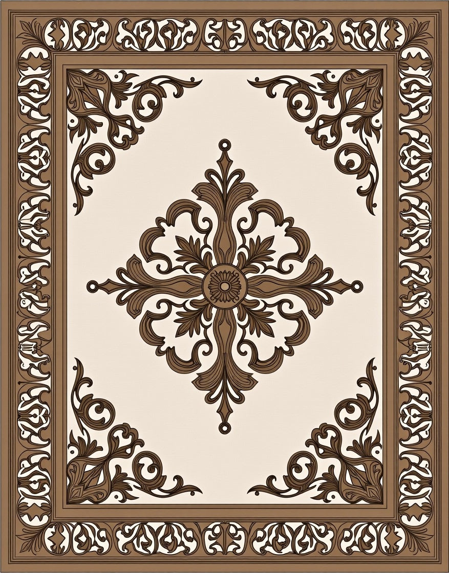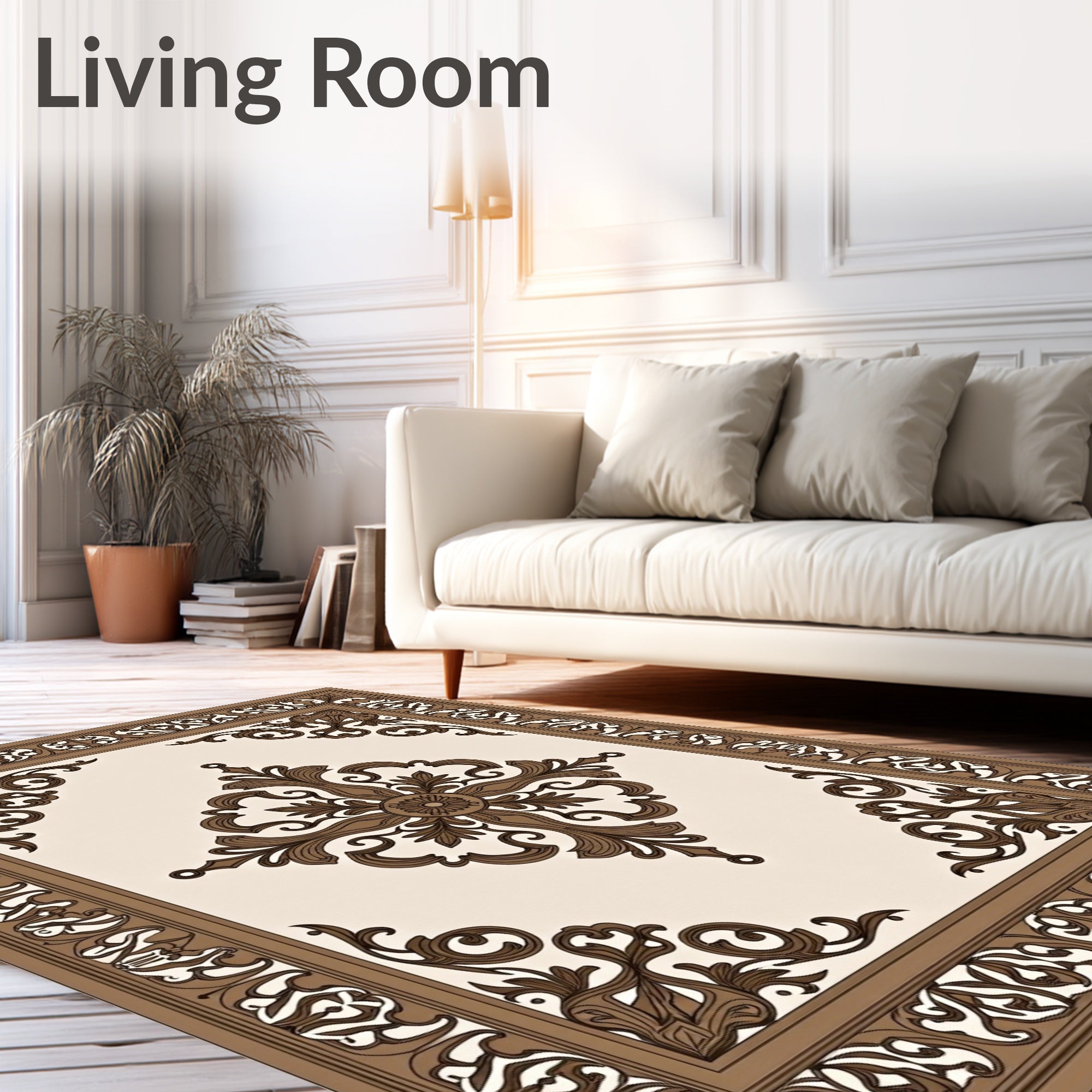 Flatwoven High Traffic Area Rug, Damask Palace Ornate Luxurious, Non Slip, Stain Resistant, Washable Area Rugs for Living Room, Bedroom (Brown) Overview: