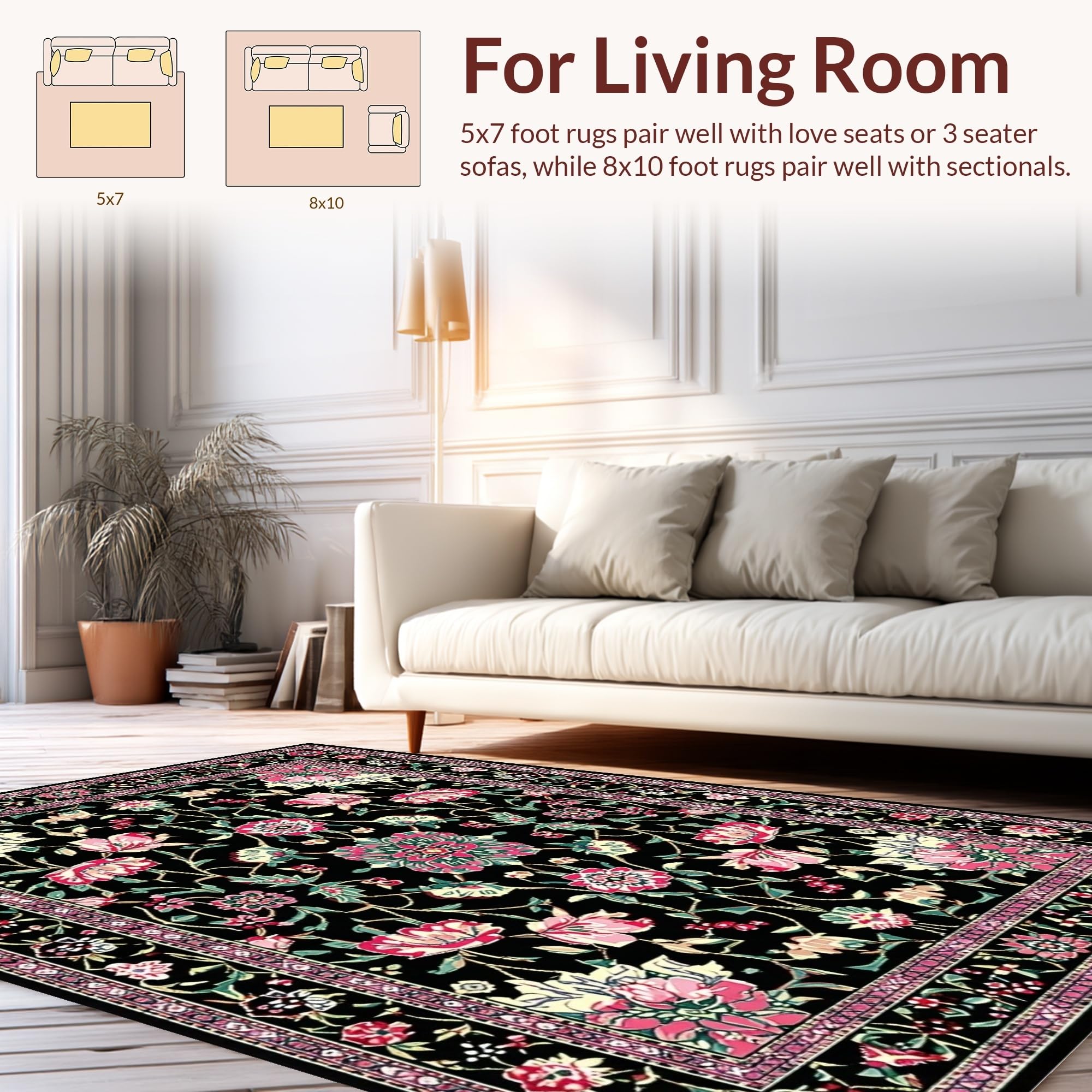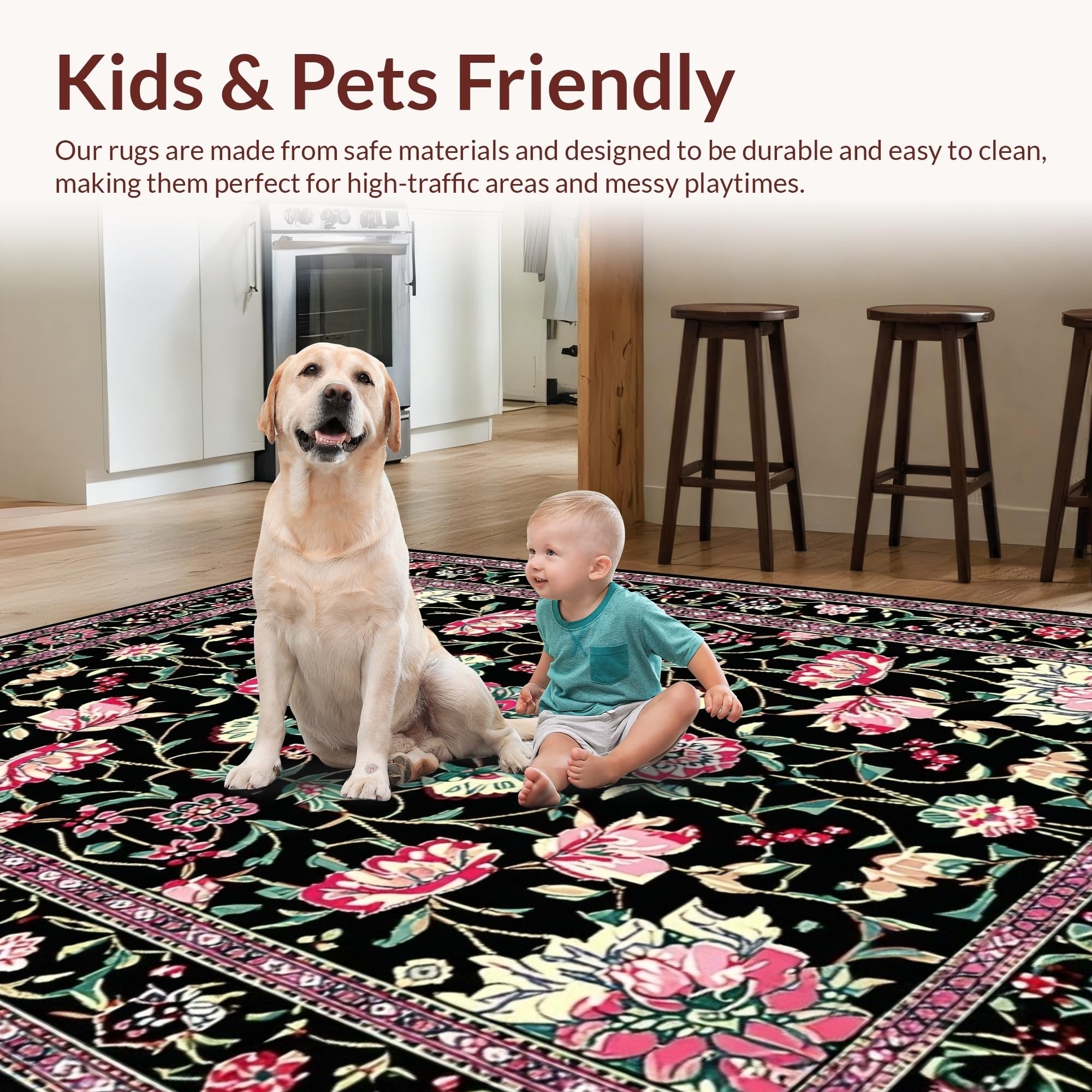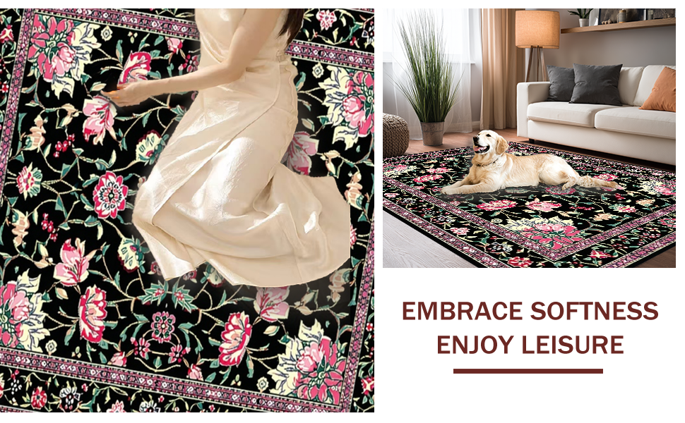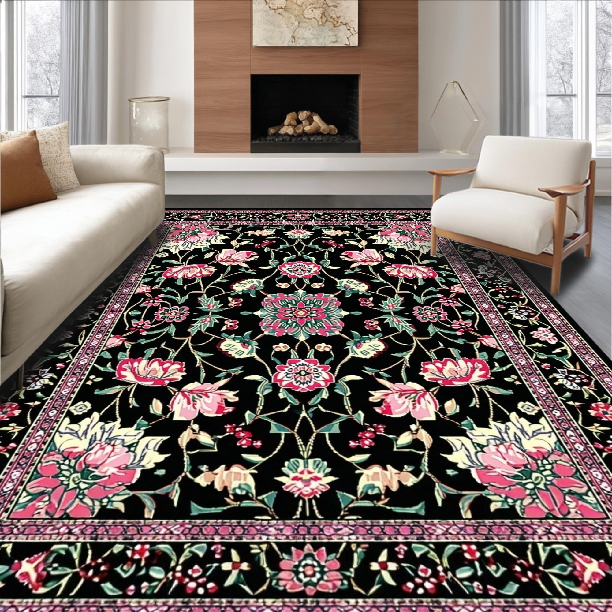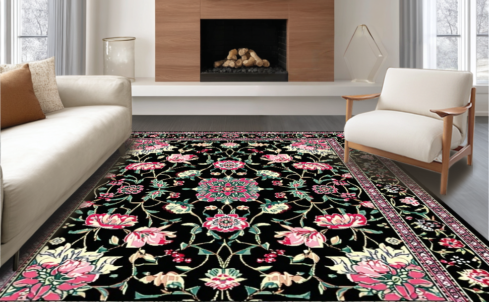 Ultra Soft Area Rug, Non Slip, Stain Resistant, Washable Area Rugs for Living Room, Bedroom, Dark Earthy Tiled Aesthetic(Black) Overview:
