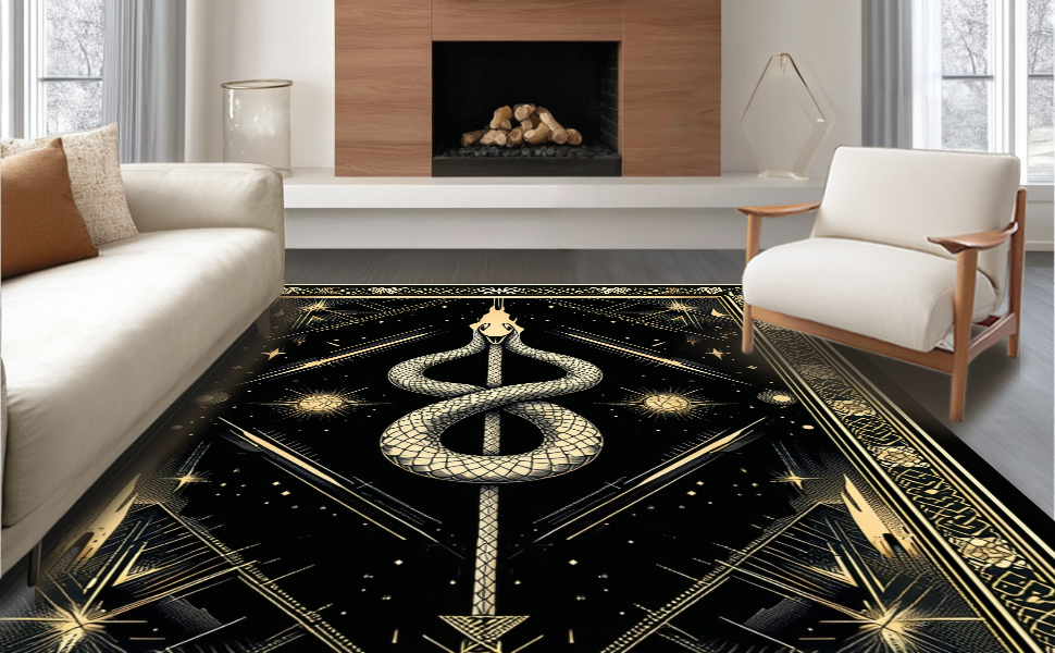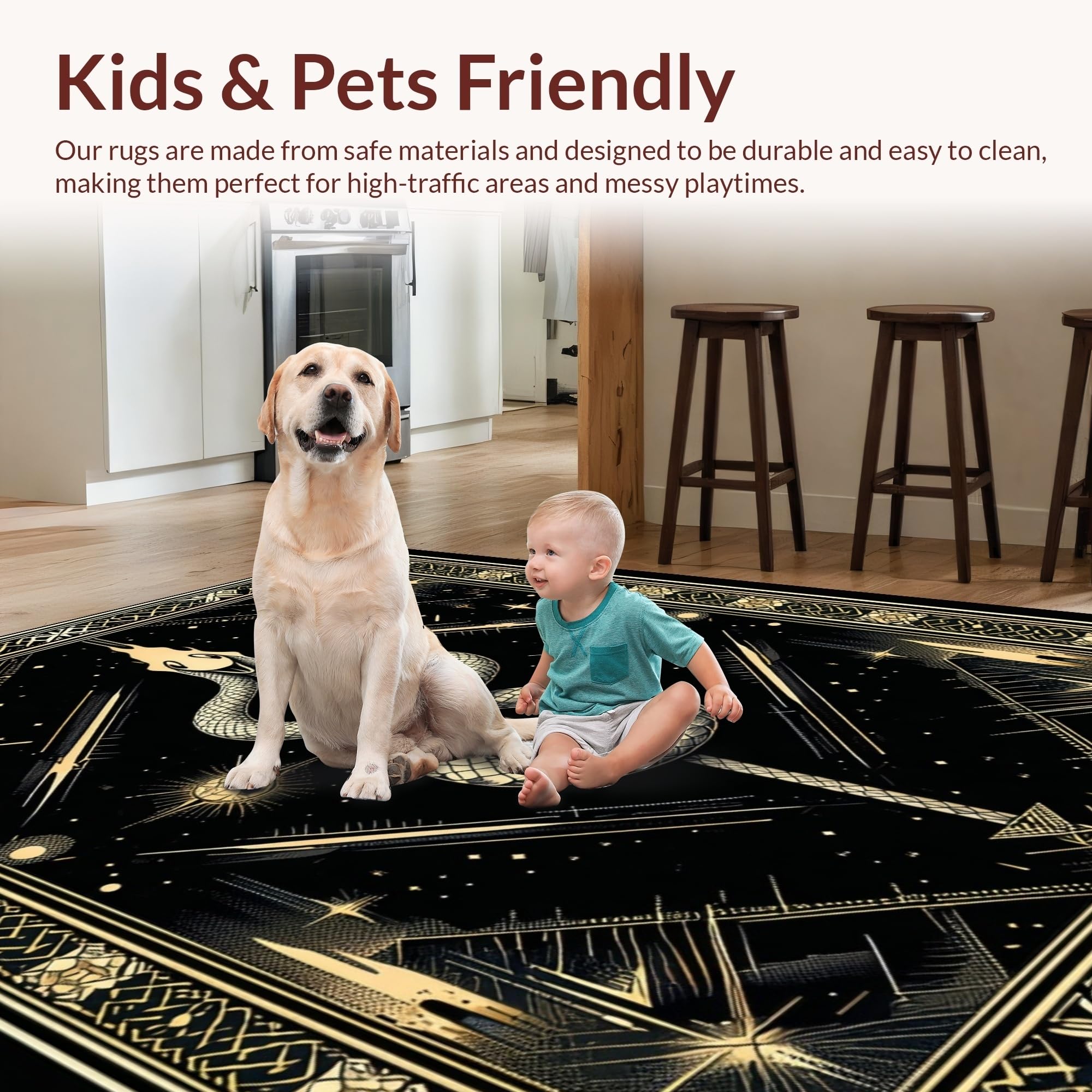 Ultra Soft Area Rug, Non Slip, Stain Resistant, Washable Area Rugs for Living Room, Bedroom, Dark Elegance Animal Pattern(Black) Overview: