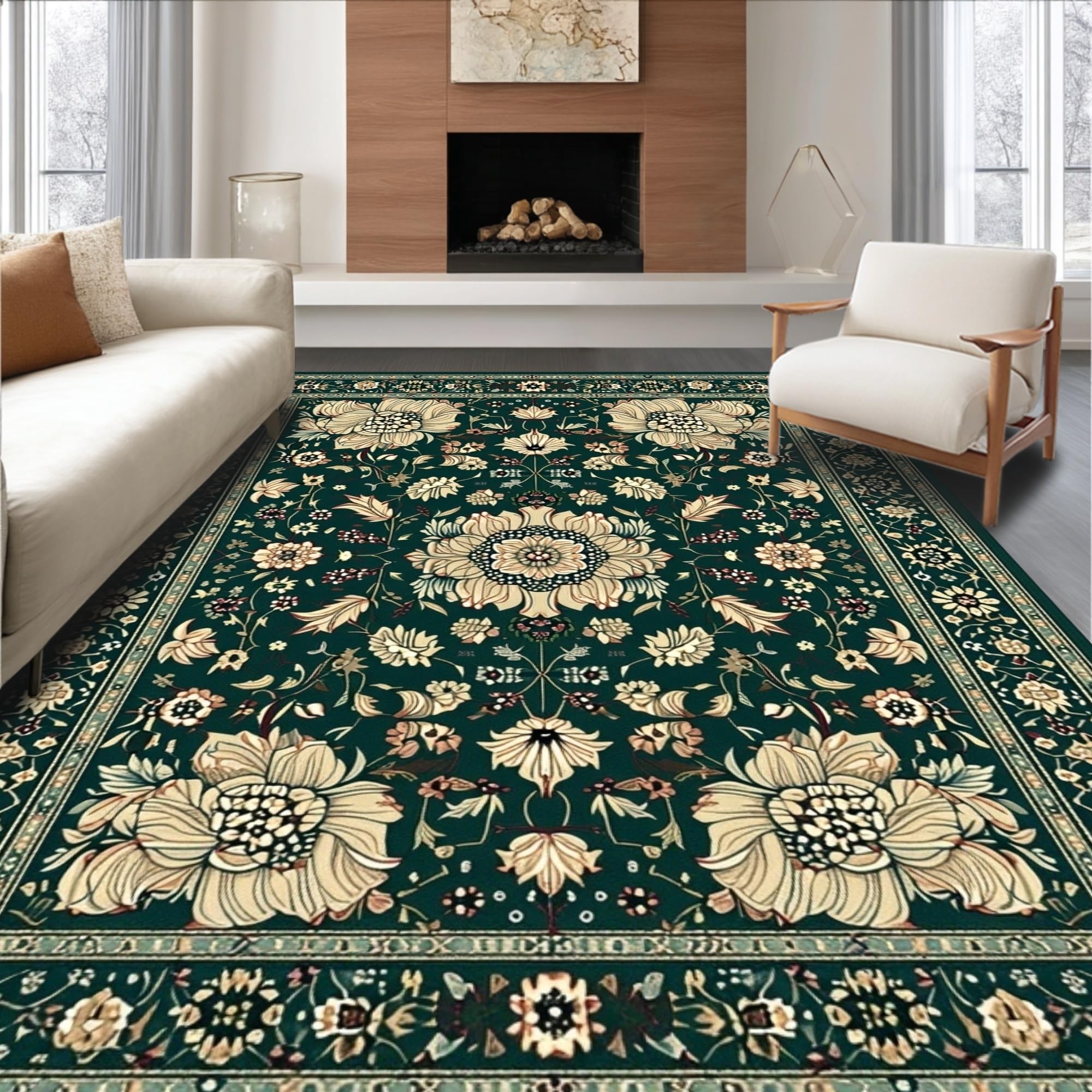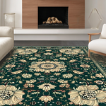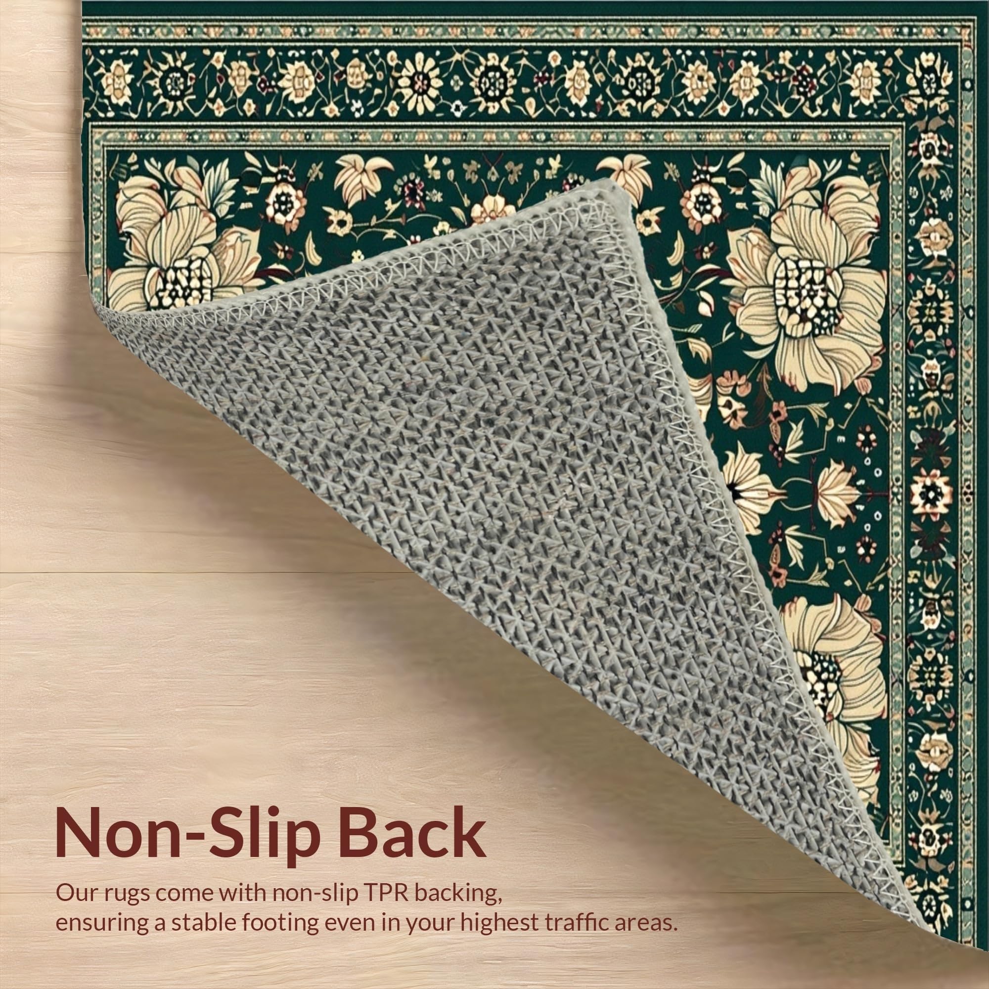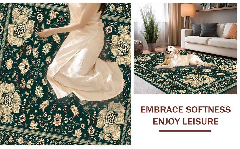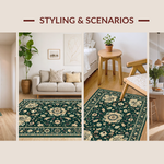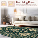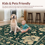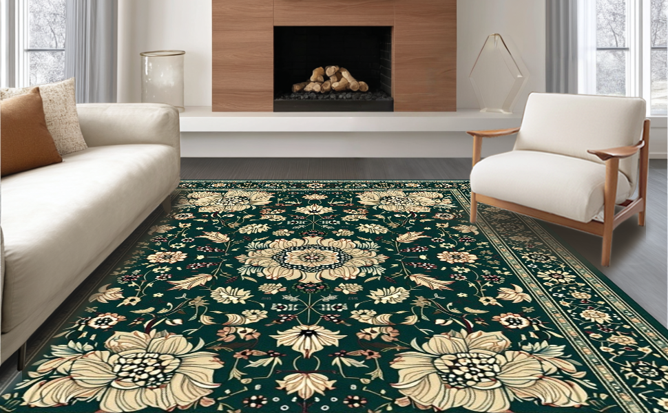 Ultra Soft Area Rug, Non Slip, Stain Resistant, Washable Area Rugs for Living Room, Bedroom, Dark Emerald Boho Chic Design(Green) Overview: