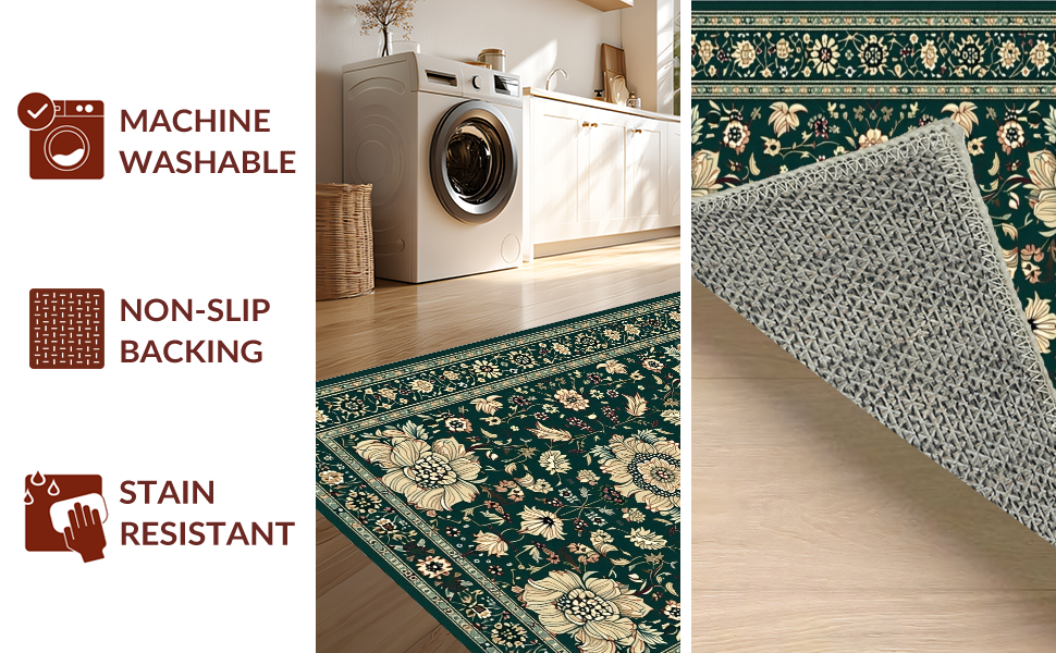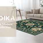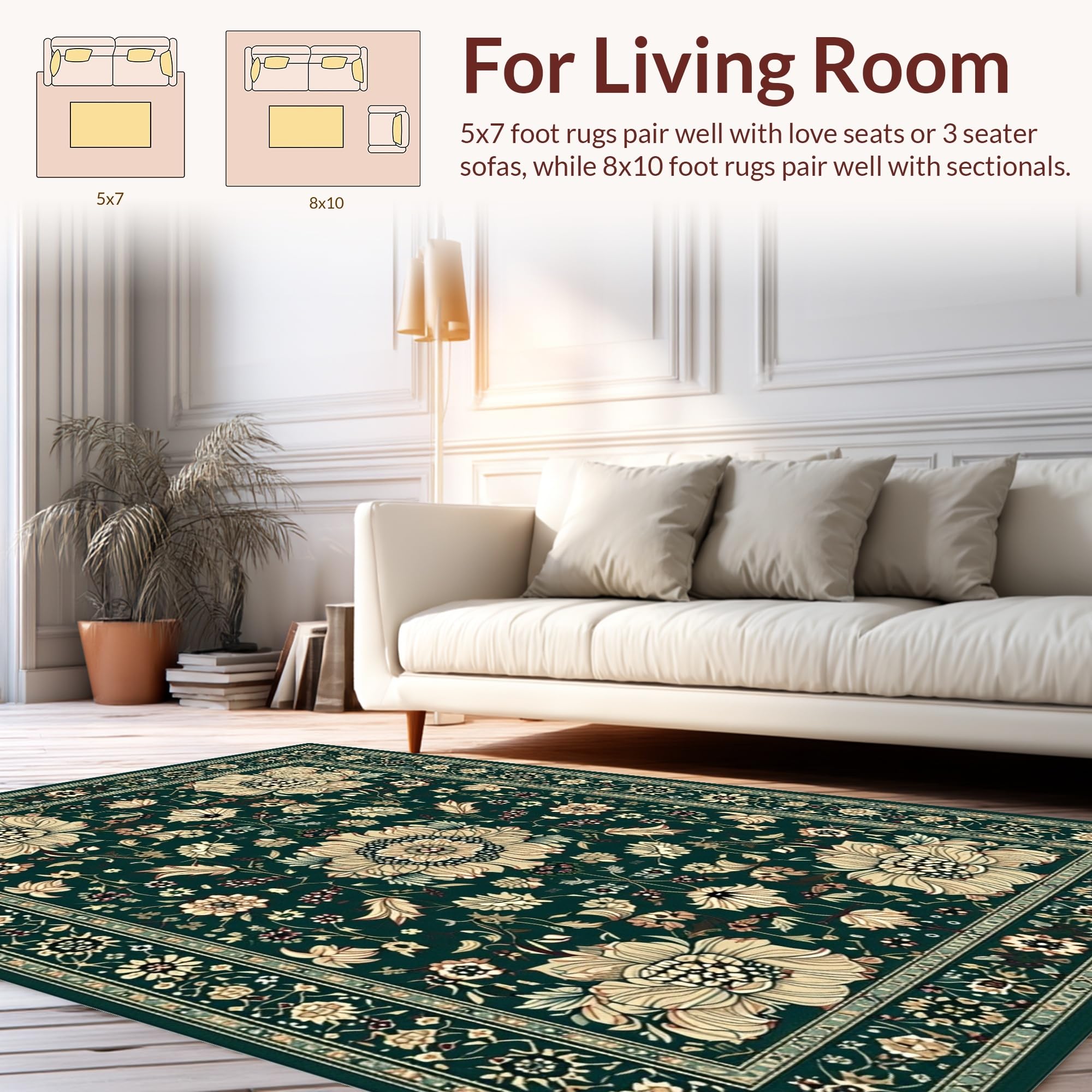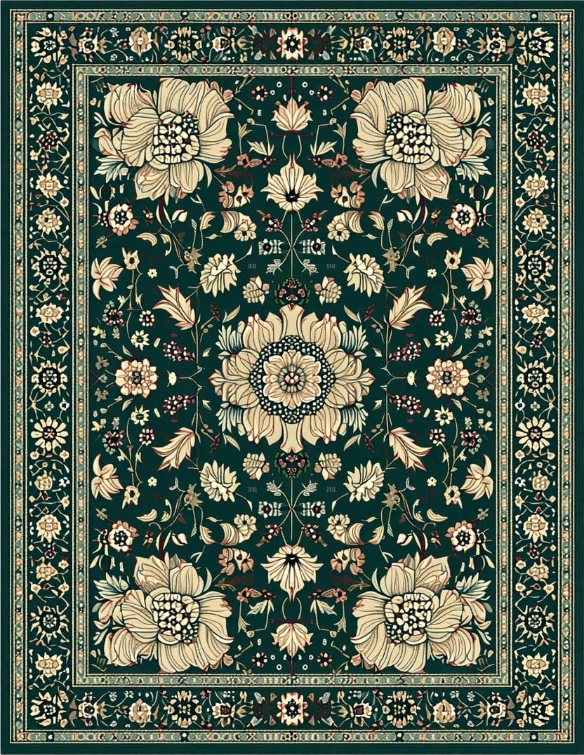 Ultra Soft Area Rug, Non Slip, Stain Resistant, Washable Area Rugs for Living Room, Bedroom, Dark Emerald Boho Chic Design(Green) Overview: