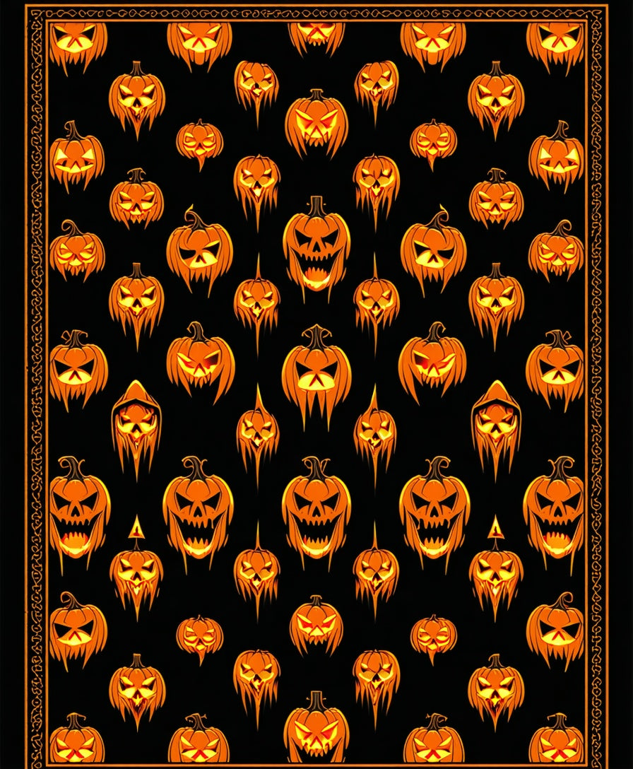 Dark Harvest Halloween Bath Featuring Pumpkin Skull Faces and Creepy Glyphs(Black)