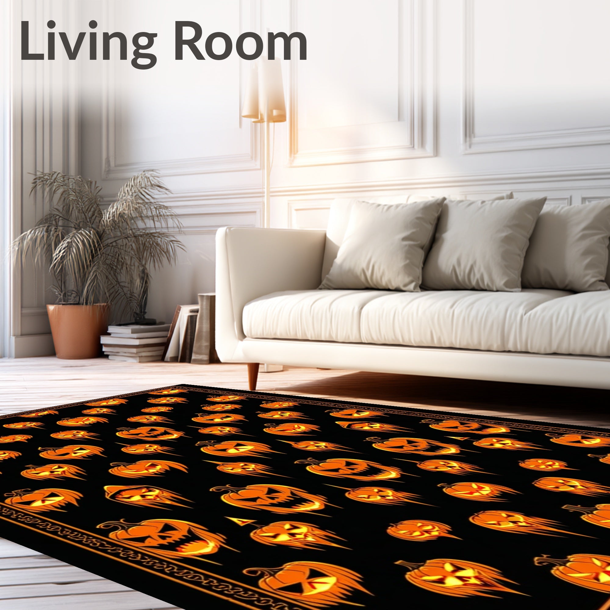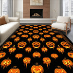 Flatwoven High Traffic Area Rug, Dark Harvest Halloween Bath Featuring Pumpkin Skull Faces and Creepy Glyphs, Non Slip, Stain Resistant, Washable Area Rugs for Living Room, Bedroom (Black) Overview: