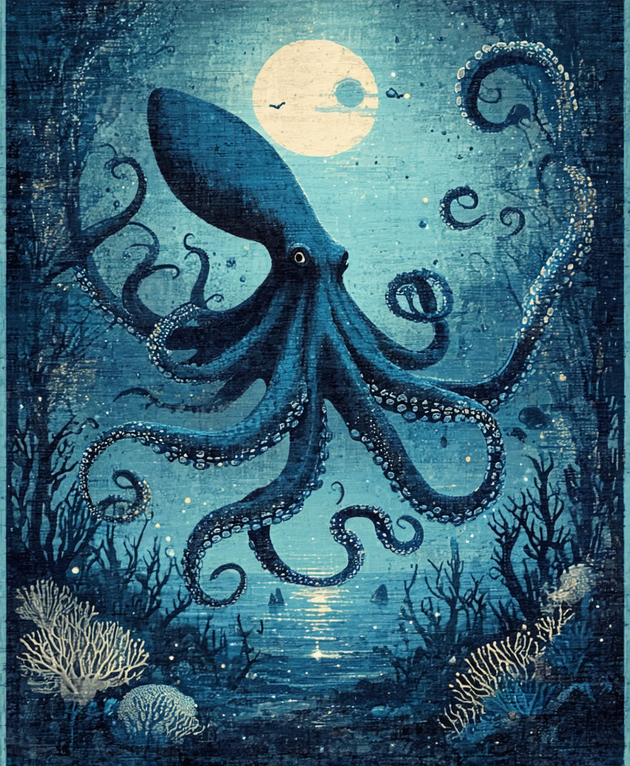 Deep Sea Kraken Nautical With Tentacle Design Maritime Ocean Theme(Blue)