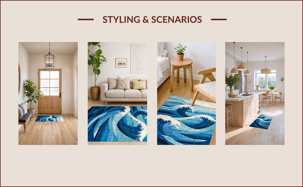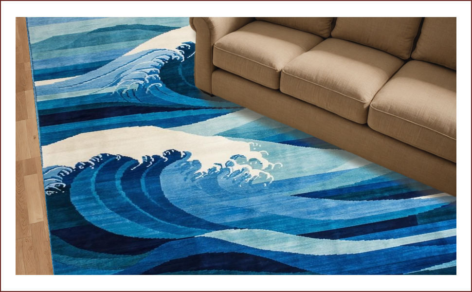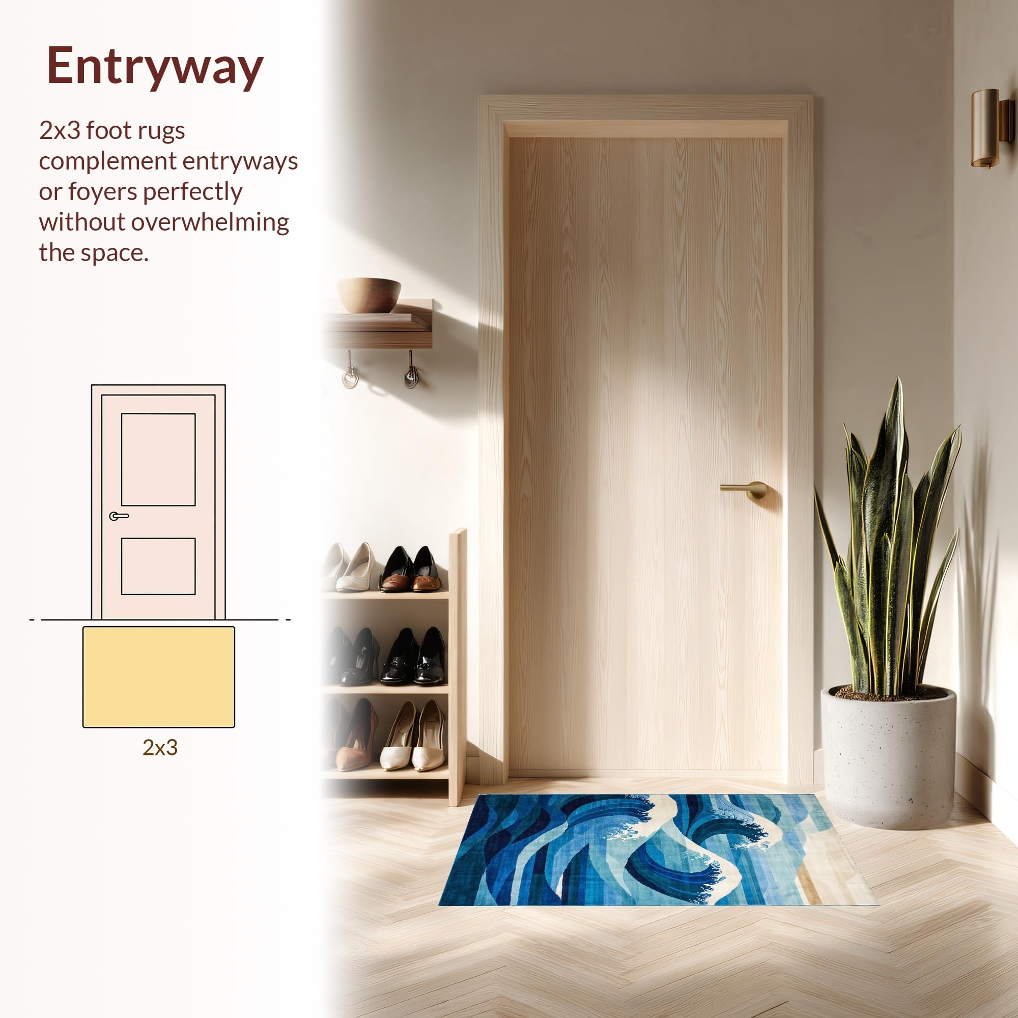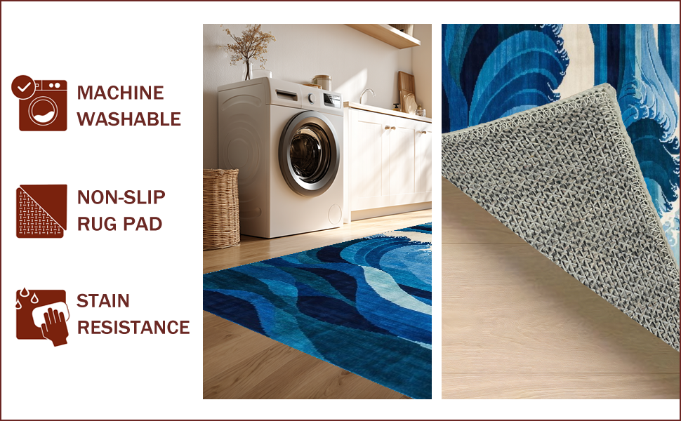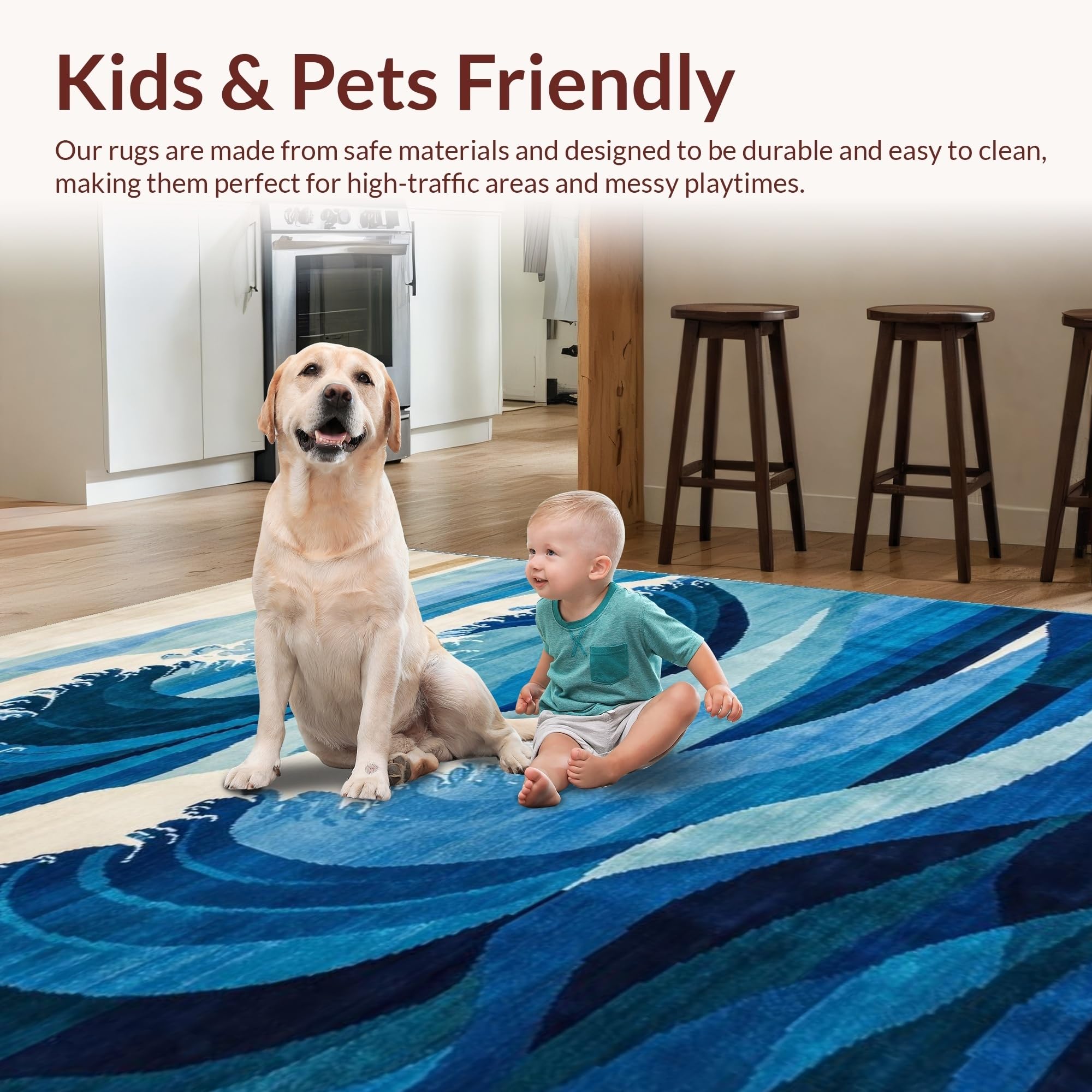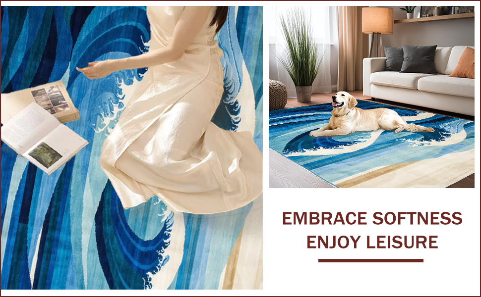 Ultra Soft Area Rug, Non Slip, Stain Resistant, Washable Area Rugs for Living Room, Bedroom, Delicate Beachy Hues with Depth(Blue) Overview: