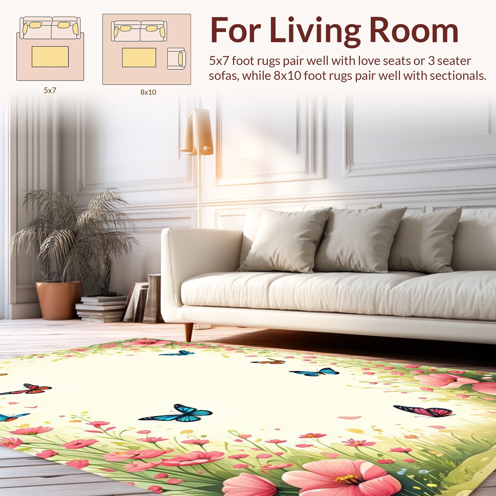 Flatwoven High Traffic Area Rug, Delicate Blossom Arrangement, Non Slip, Stain Resistant, Washable Area Rugs for Living Room, Bedroom (White) Overview: