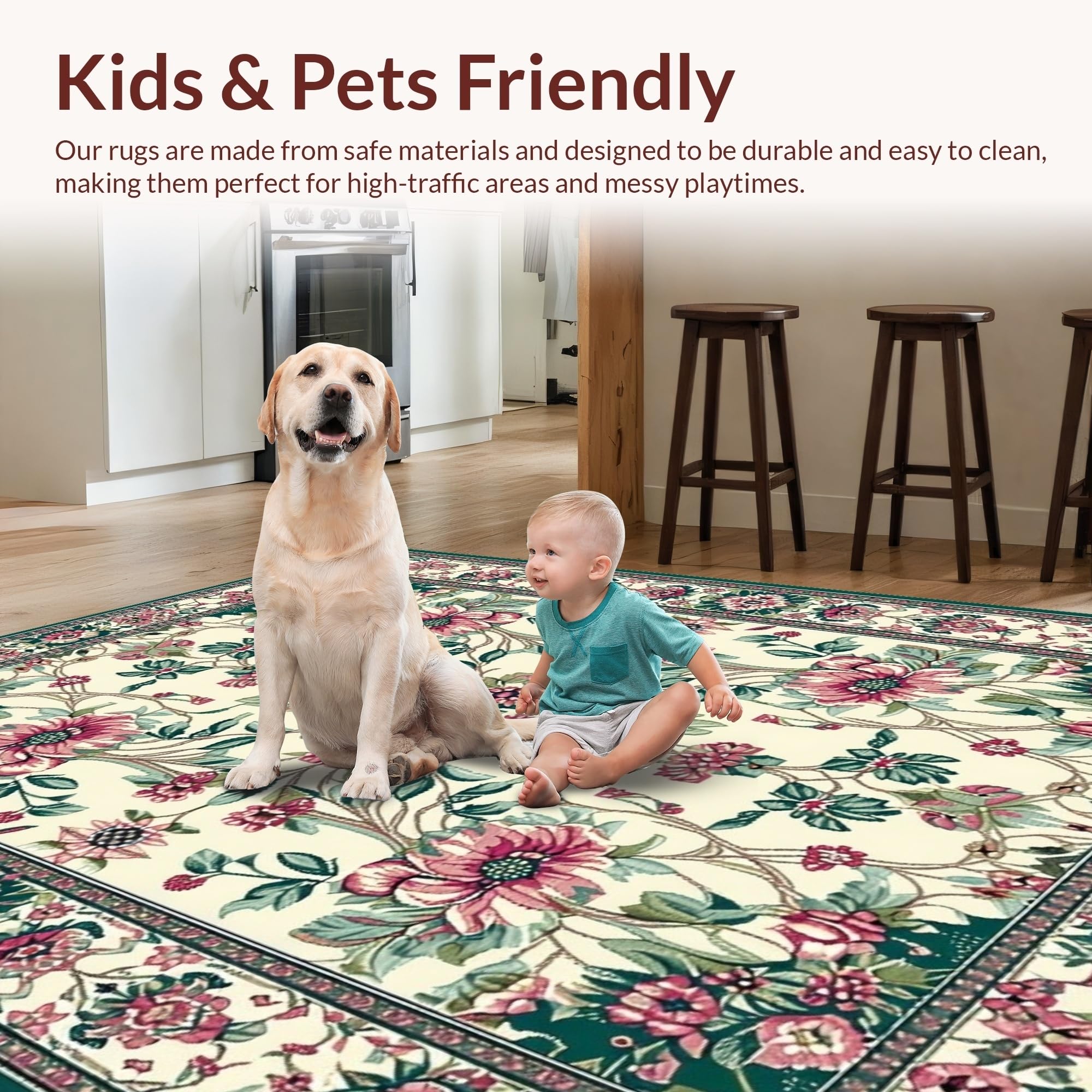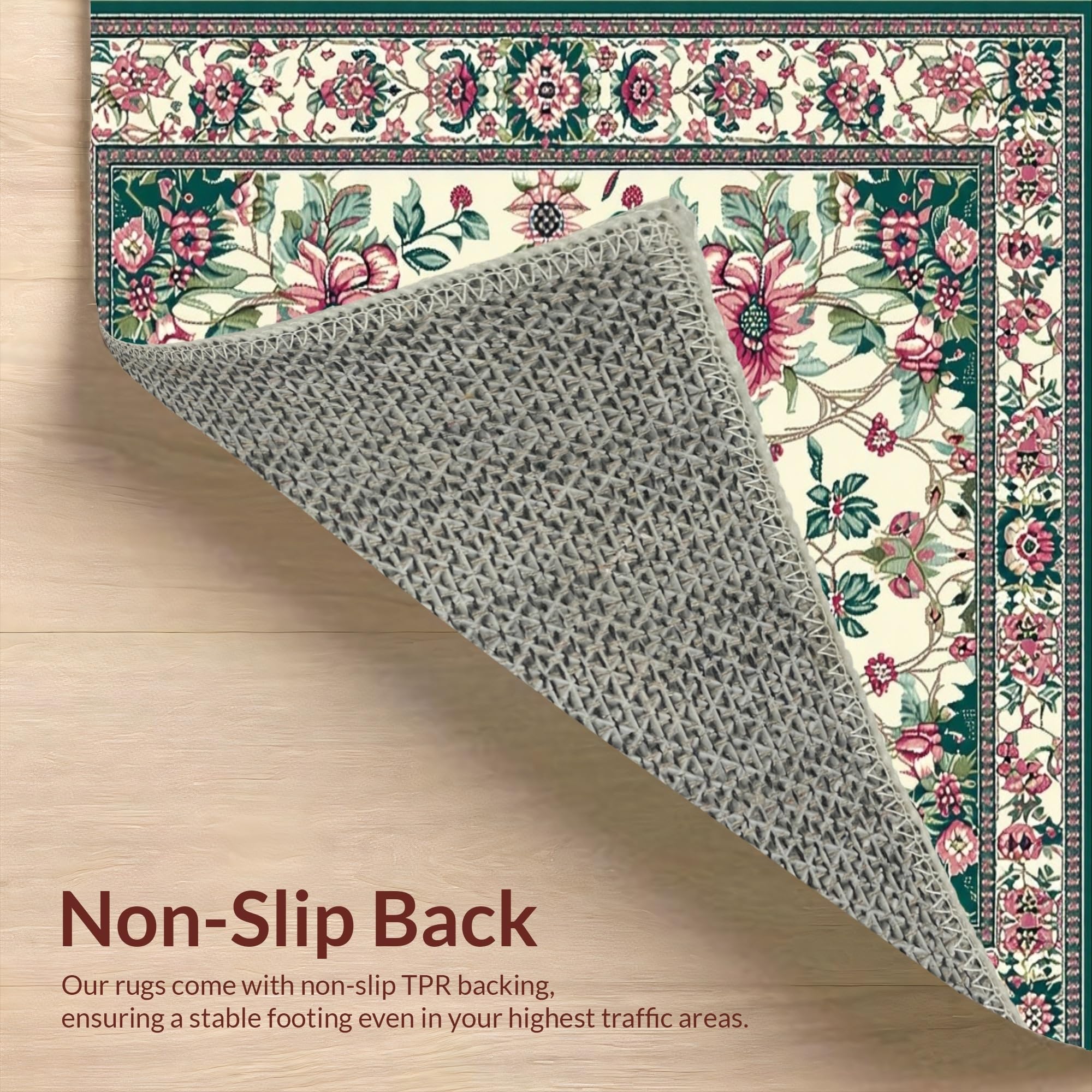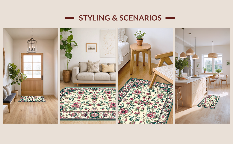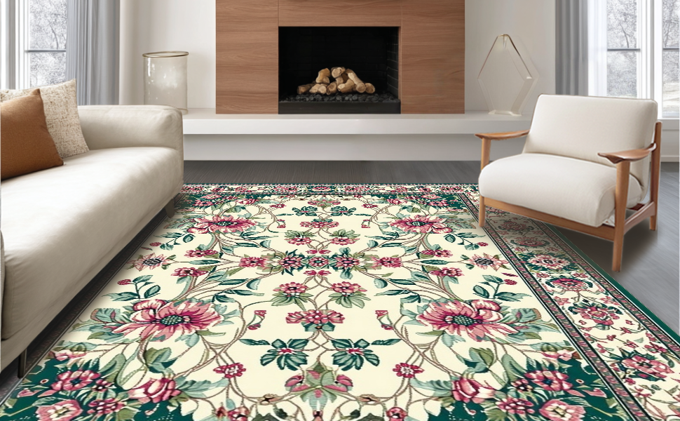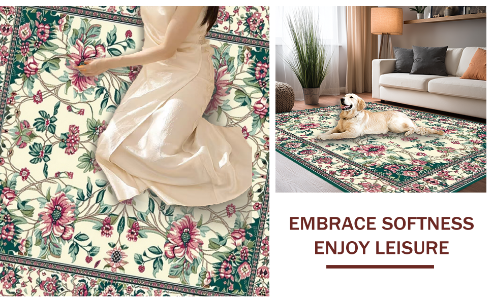 Ultra Soft Area Rug, Non Slip, Stain Resistant, Washable Area Rugs for Living Room, Bedroom, Delicate Floral and Feather Fusion(Beige) Overview: