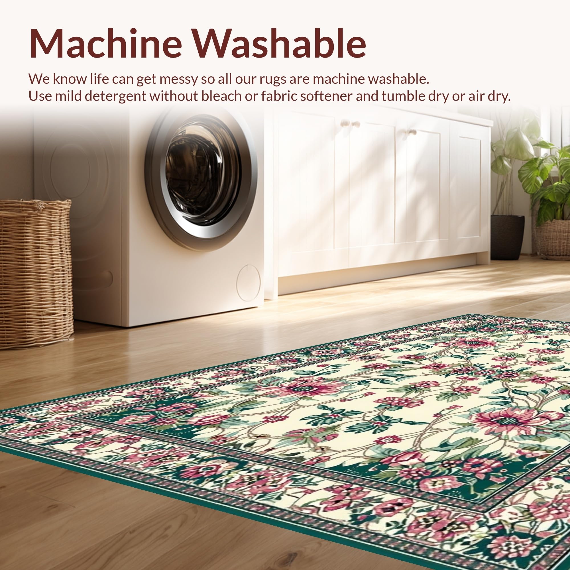 - Machine Washable: Our rugs can be easily thrown in the wash machine.