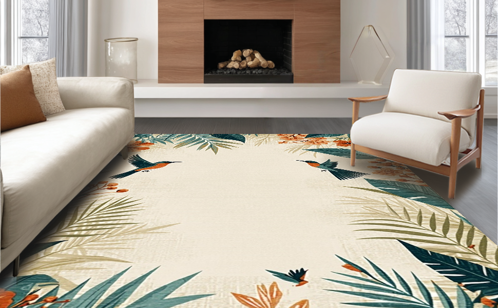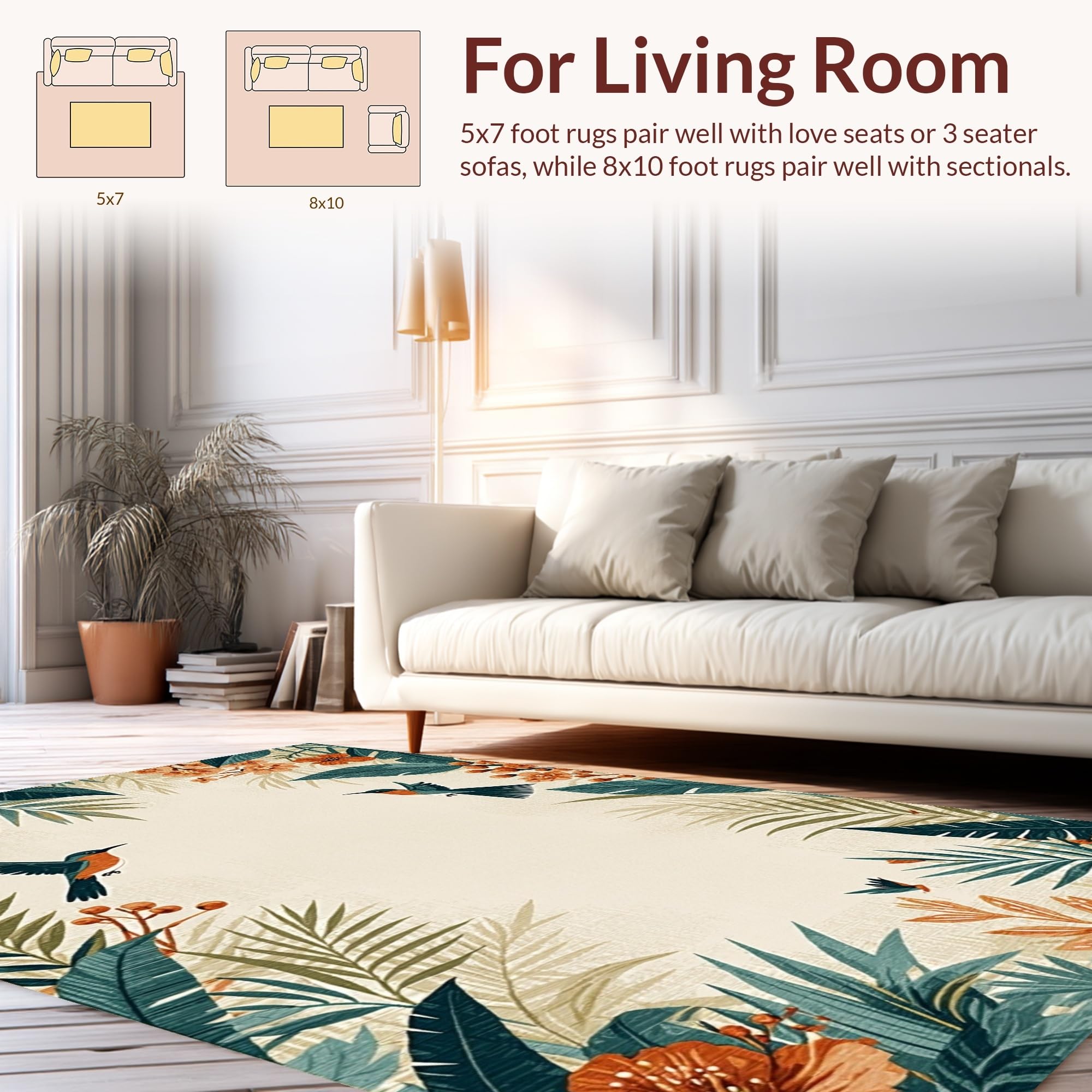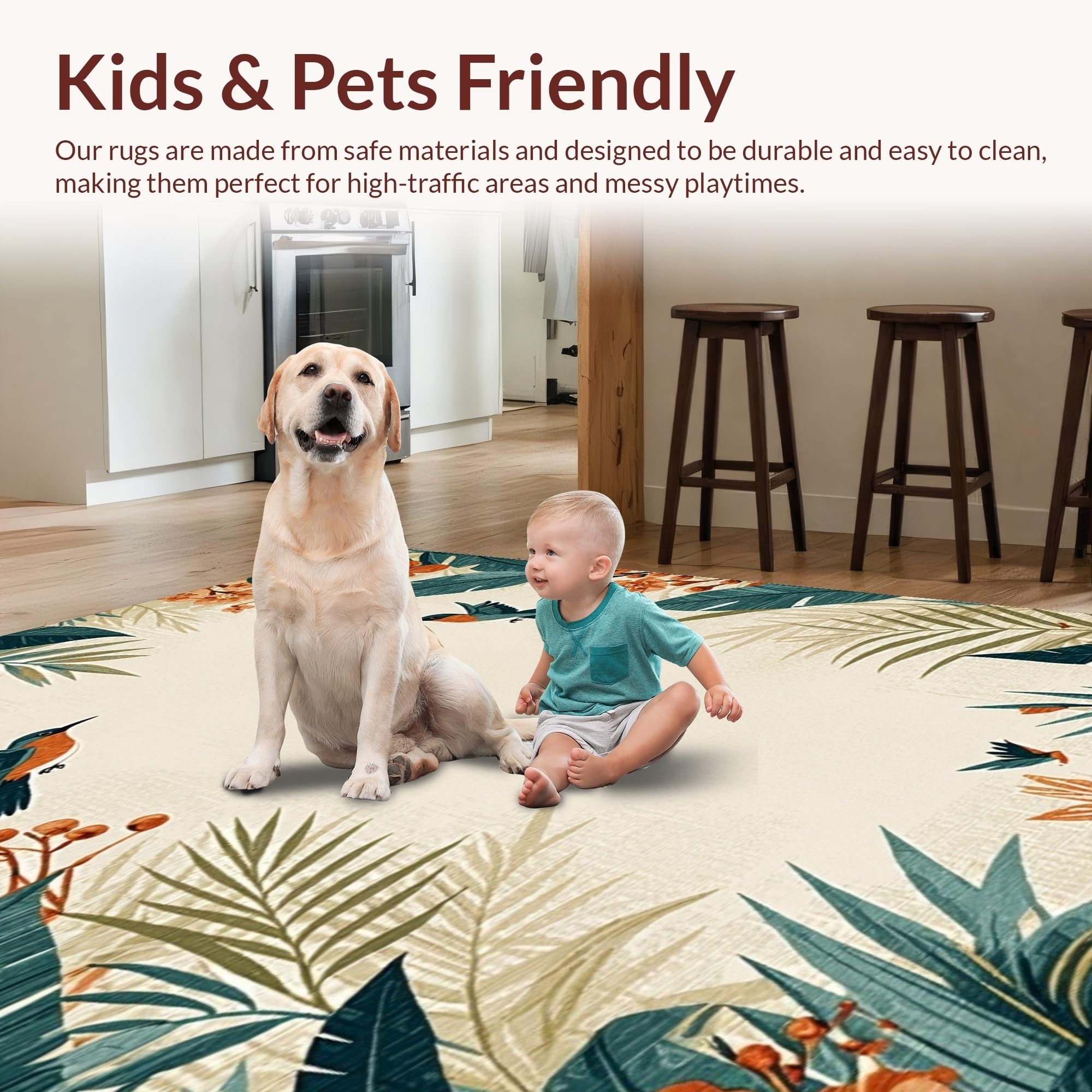 Ultra Soft Area Rug, Non Slip, Stain Resistant, Washable Area Rugs for Living Room, Bedroom, Delicate Floral and Wildlife Blend(Beige) Overview: