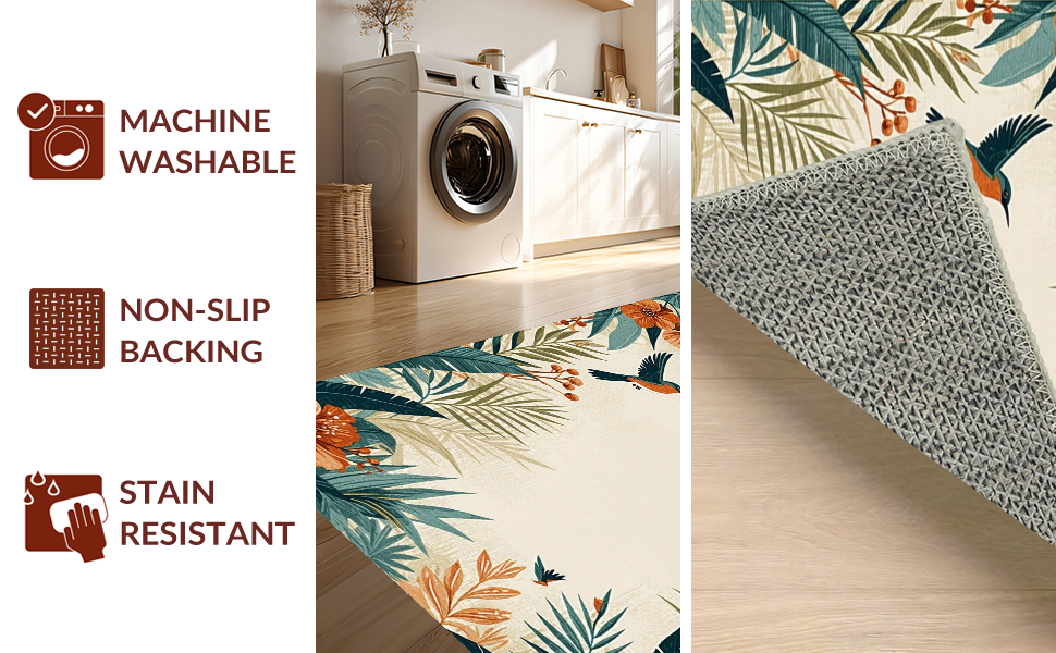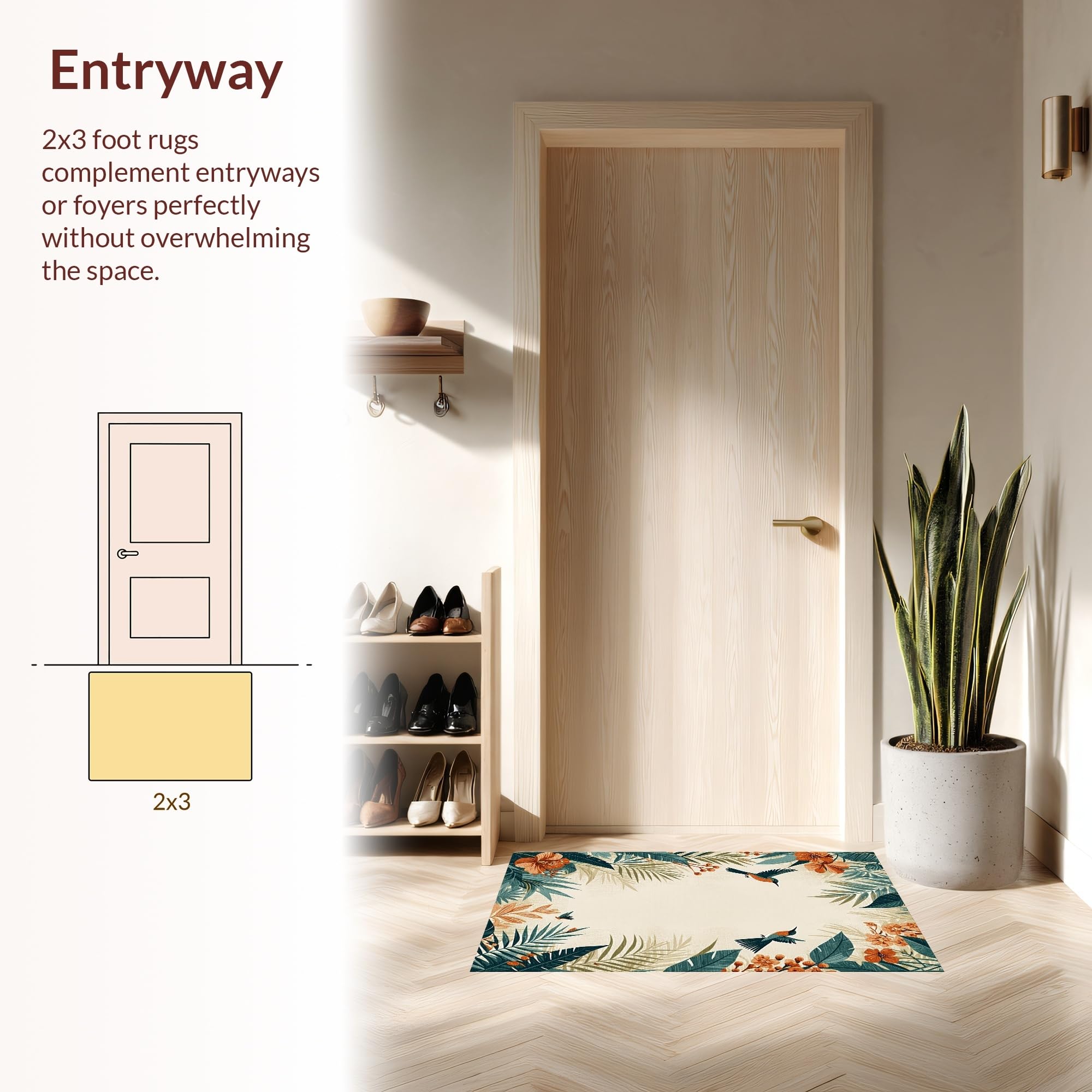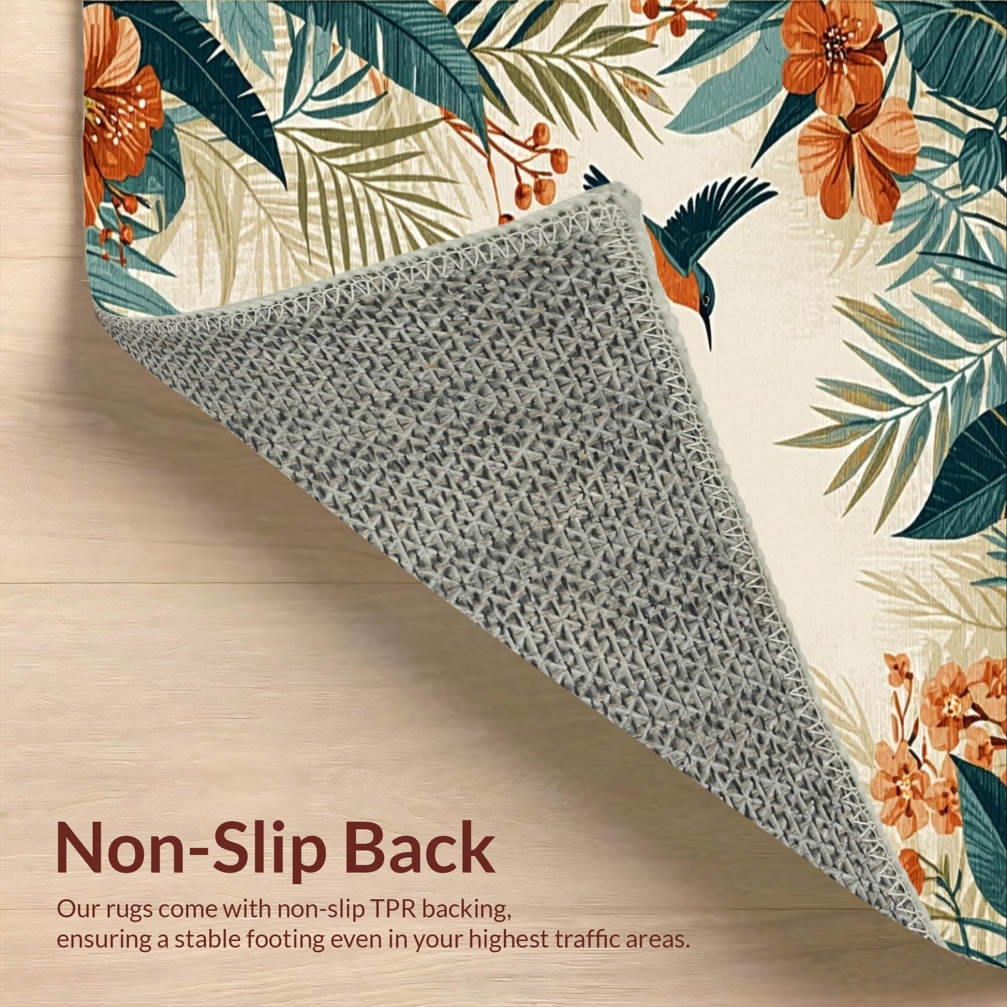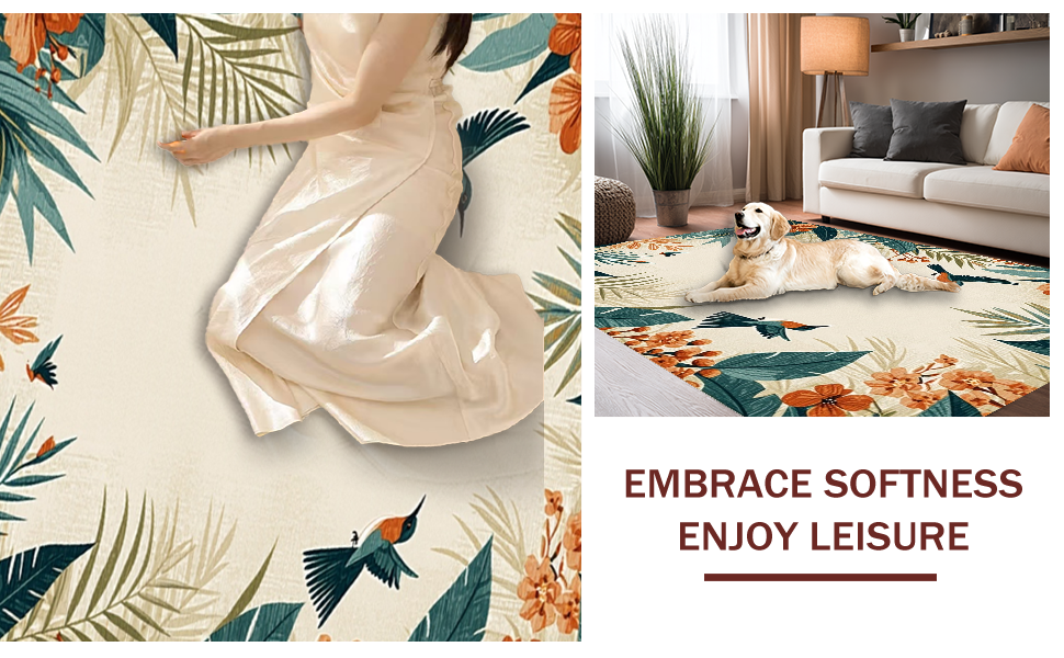 Ultra Soft Area Rug, Non Slip, Stain Resistant, Washable Area Rugs for Living Room, Bedroom, Delicate Floral and Wildlife Blend(Beige) Overview: