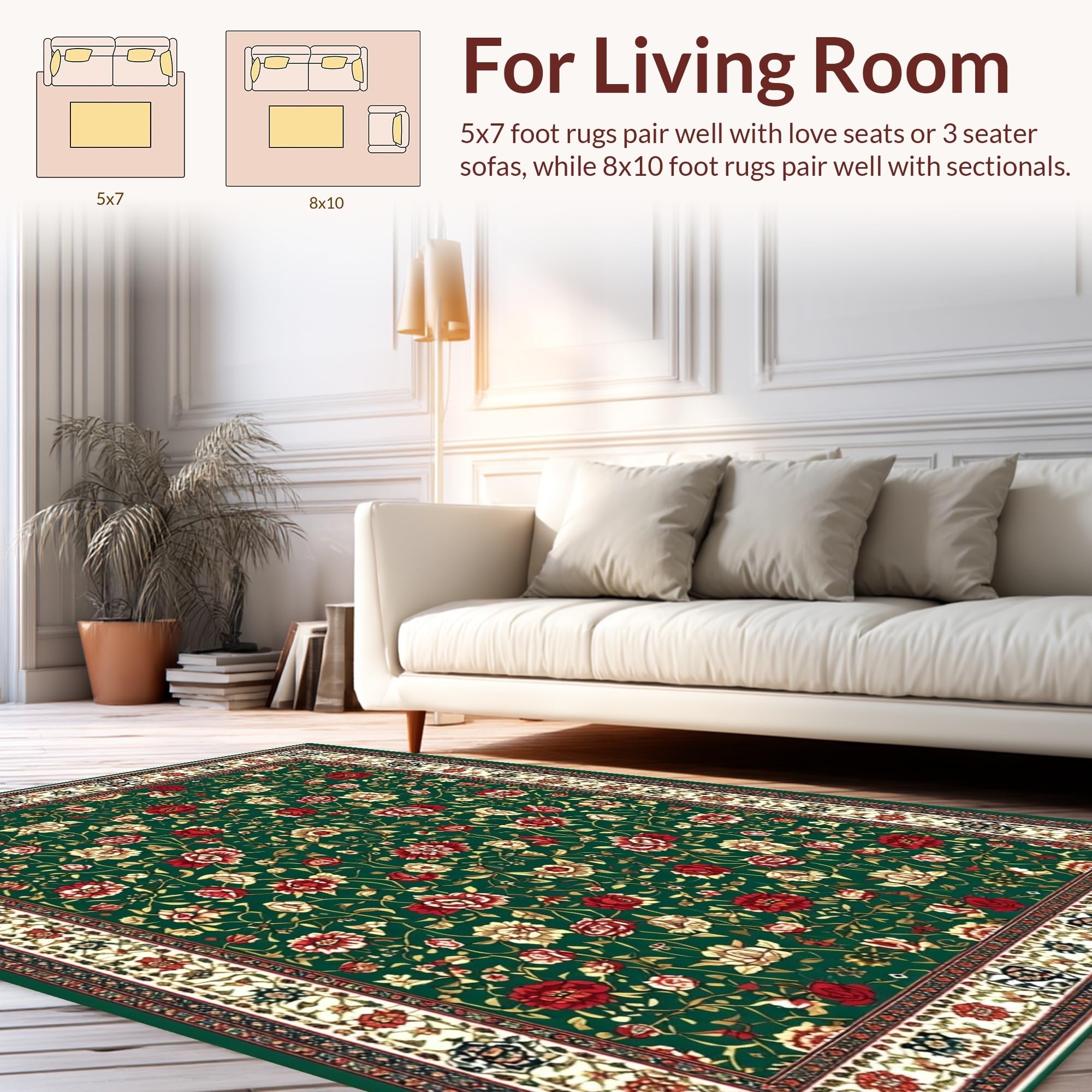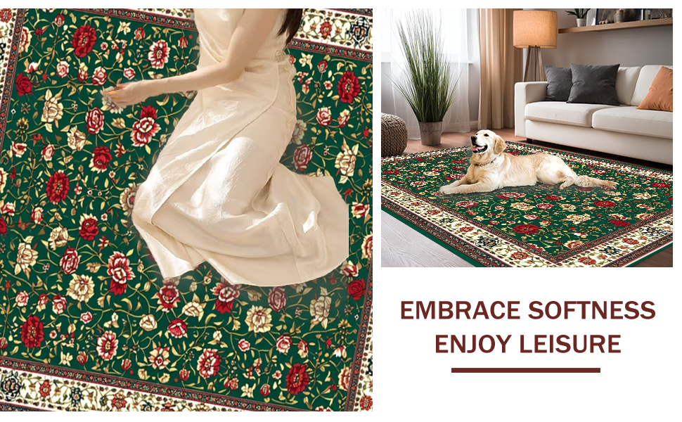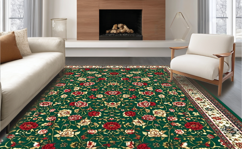 Ultra Soft Area Rug, Non Slip, Stain Resistant, Washable Area Rugs for Living Room, Bedroom, Delicate Geometric Vintage Charm(Green) Overview: