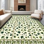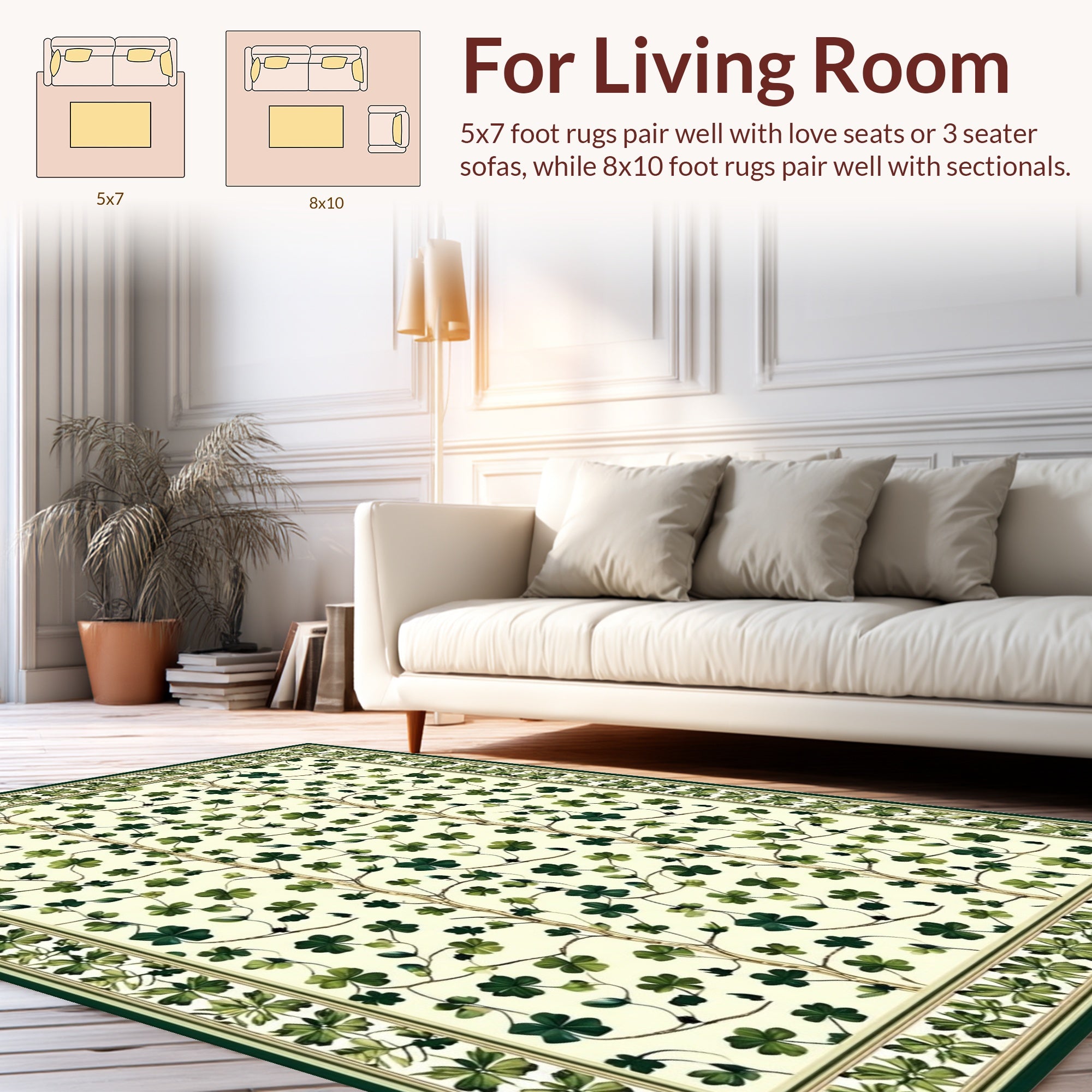 Flatwoven High Traffic Area Rug, Delicate Green Leafy Print Style, Non Slip, Stain Resistant, Washable Area Rugs for Living Room, Bedroom (Beige) Overview: