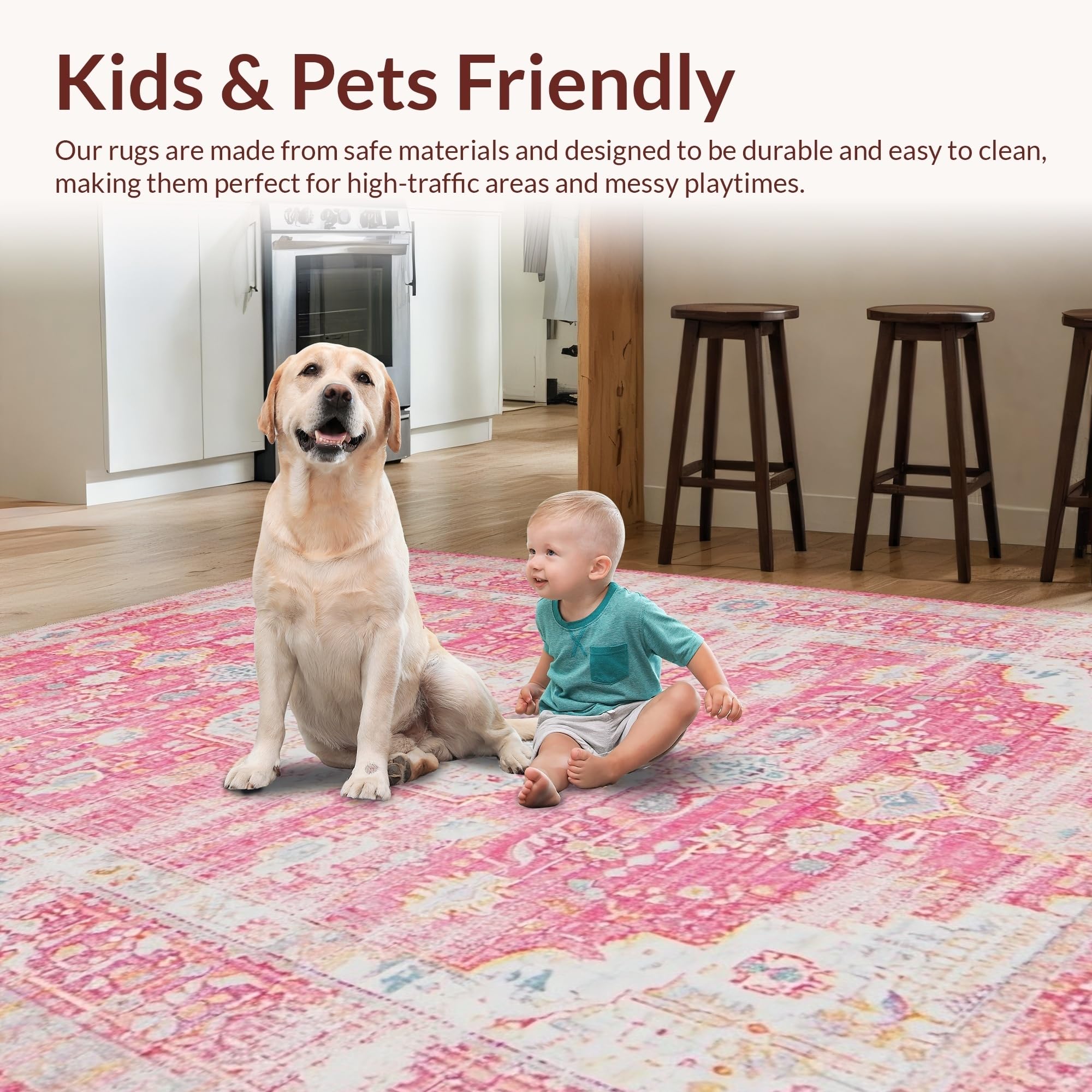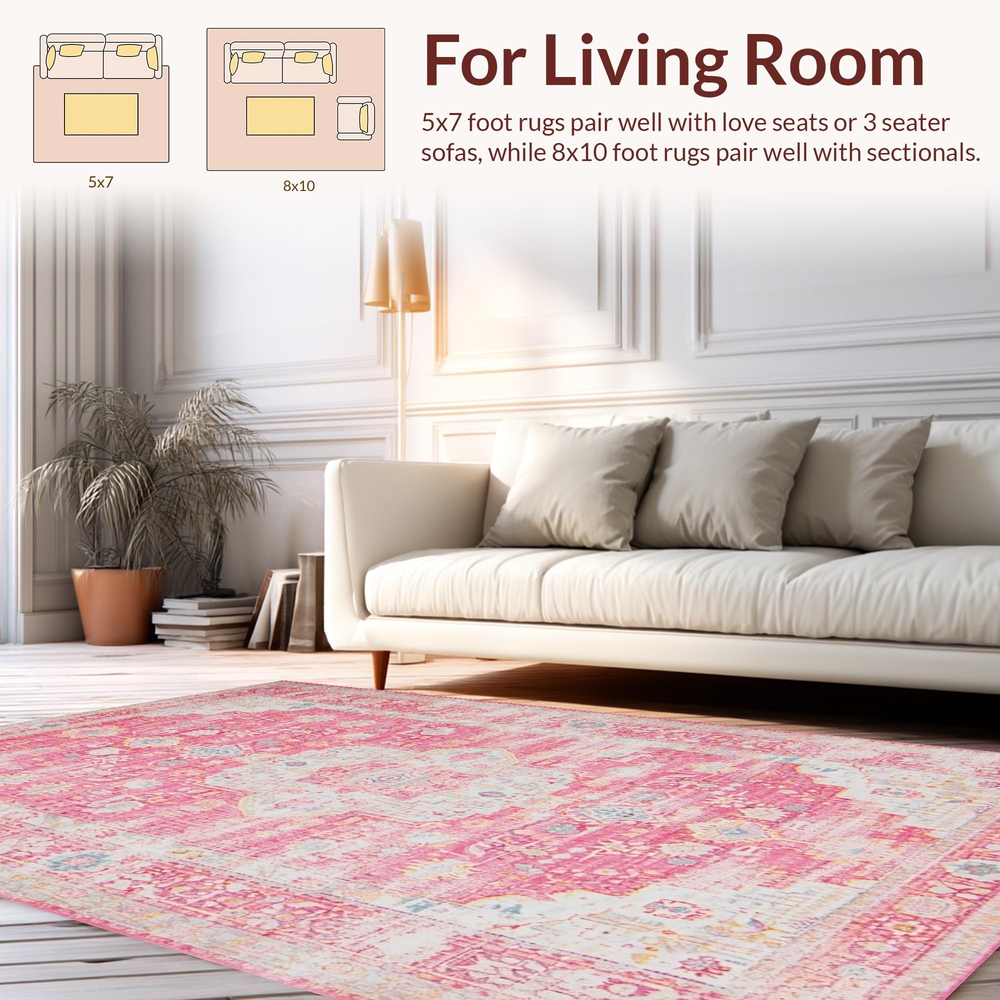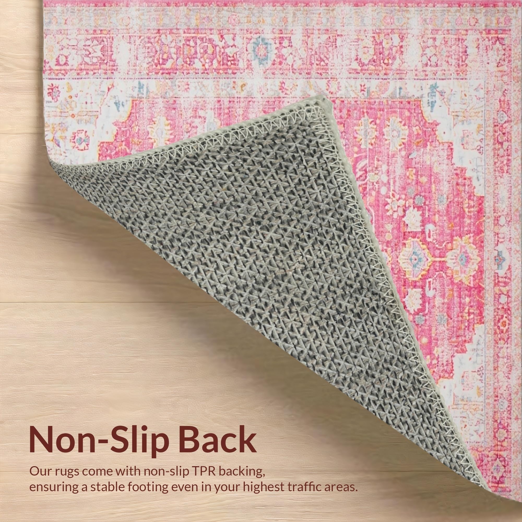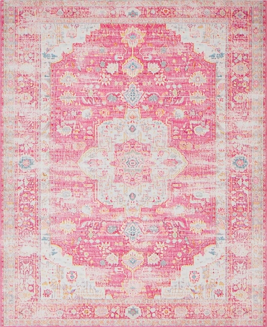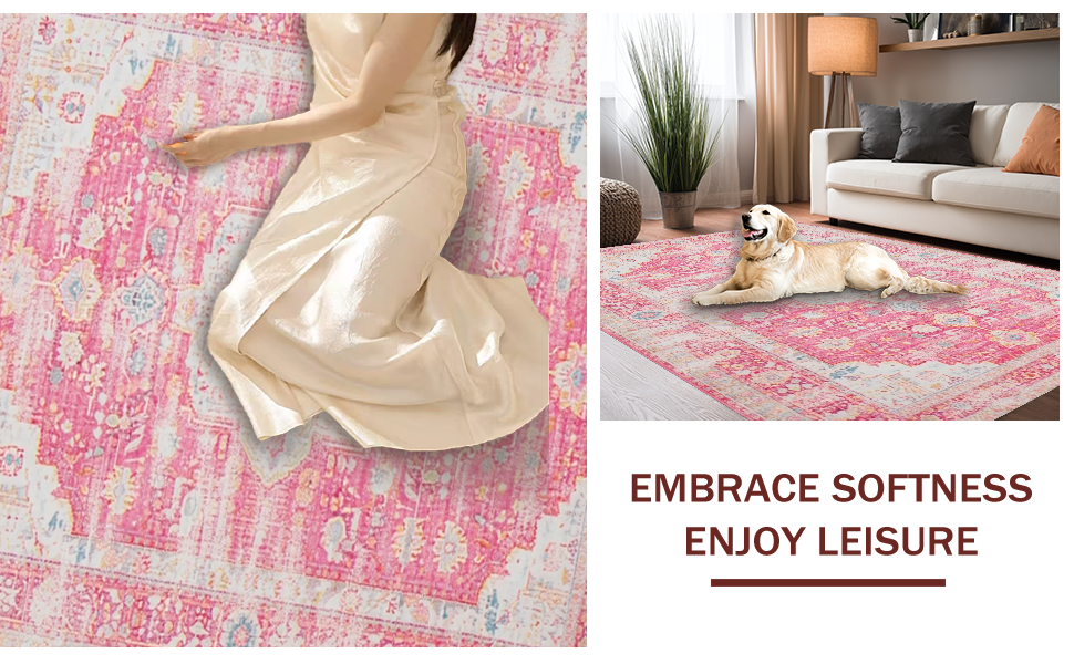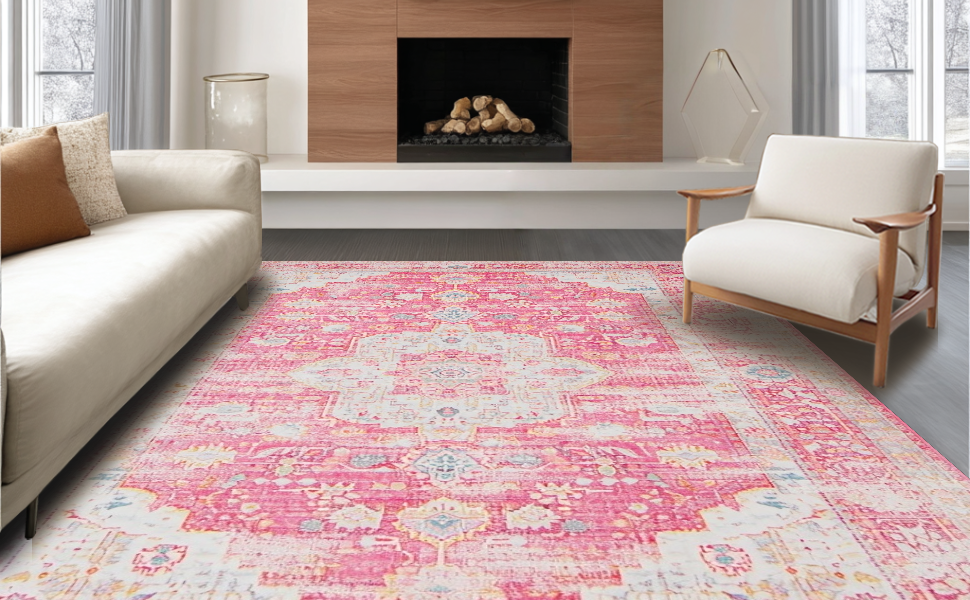 Ultra Soft Area Rug, Non Slip, Stain Resistant, Washable Area Rugs for Living Room, Bedroom, Delicate Pink Rustic Tiled Arrangement(Pink) Overview: