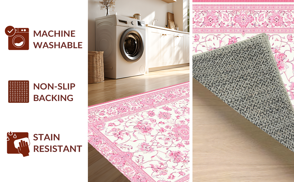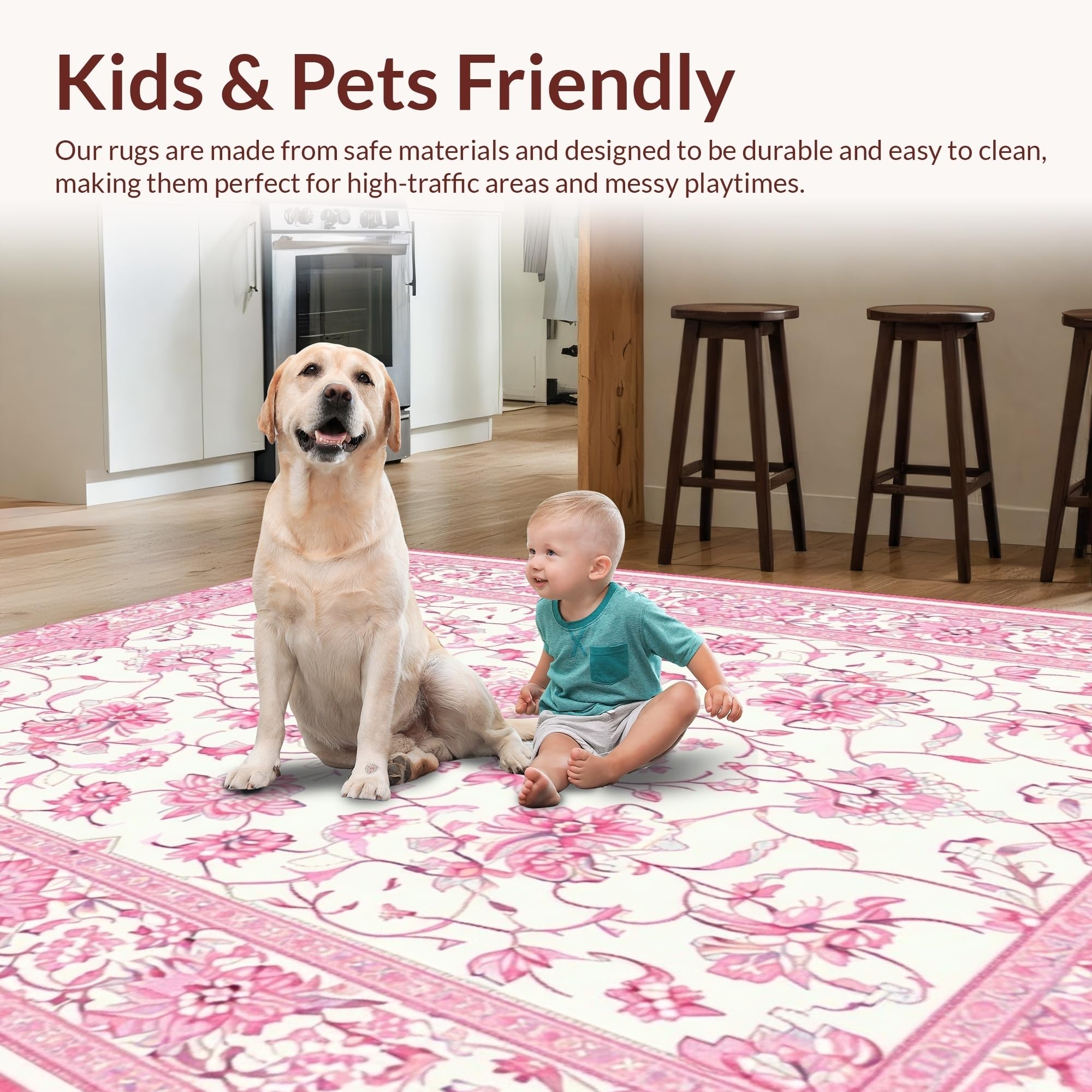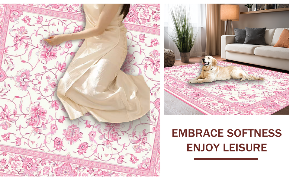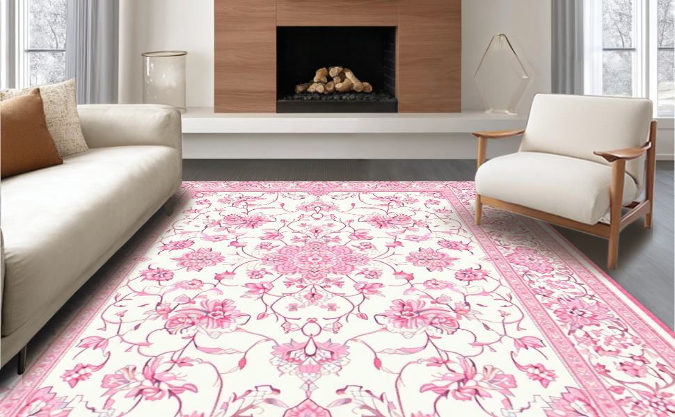 Ultra Soft Area Rug, Non Slip, Stain Resistant, Washable Area Rugs for Living Room, Bedroom, Delicate Shabby Chic Arrangement(Pink) Overview:
