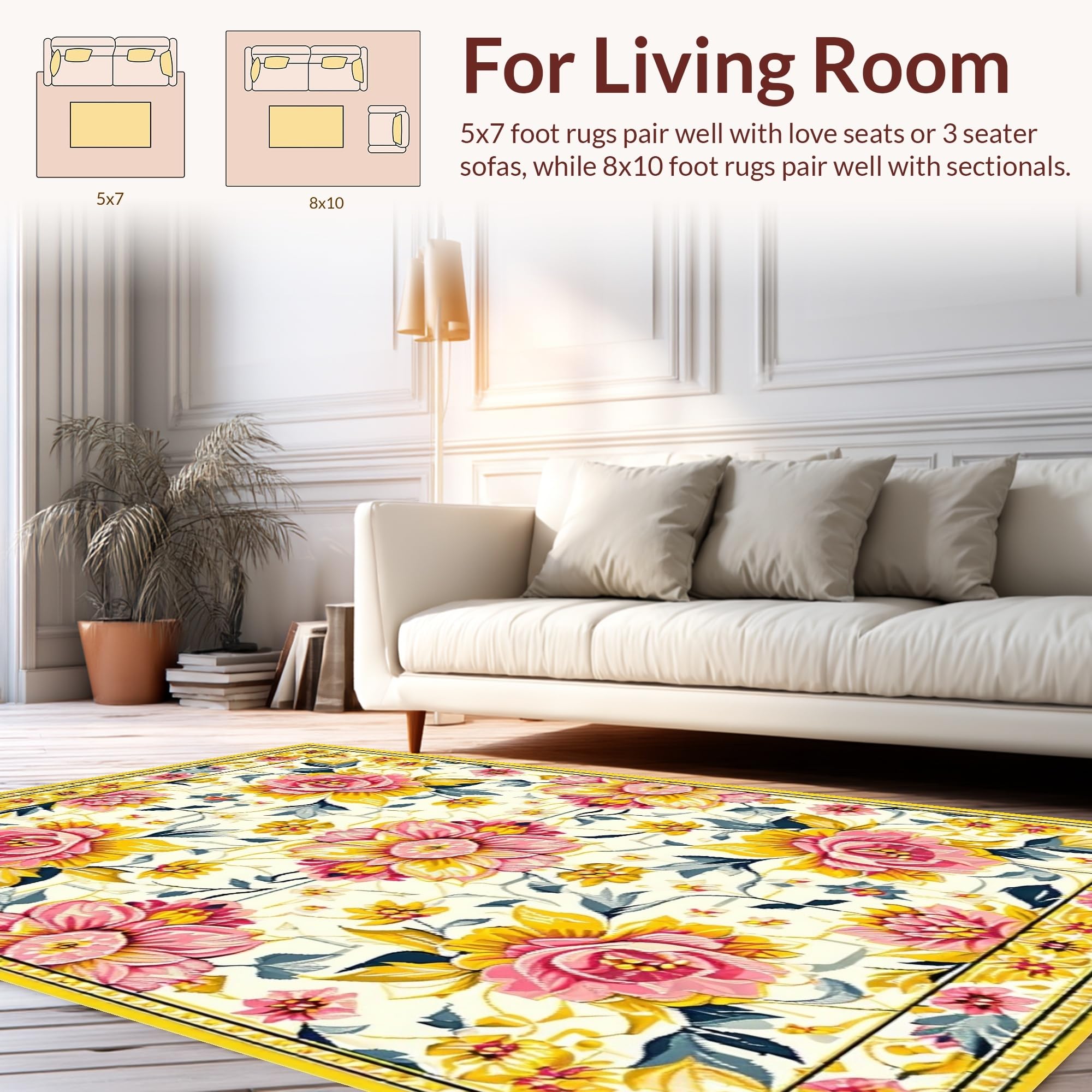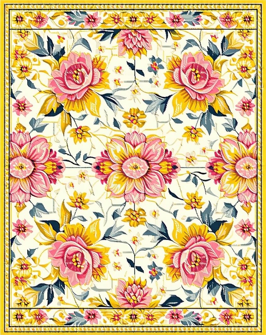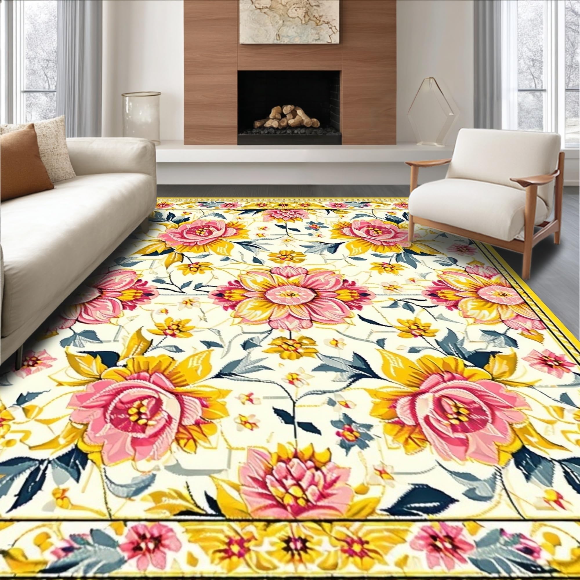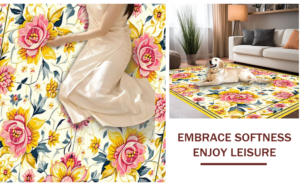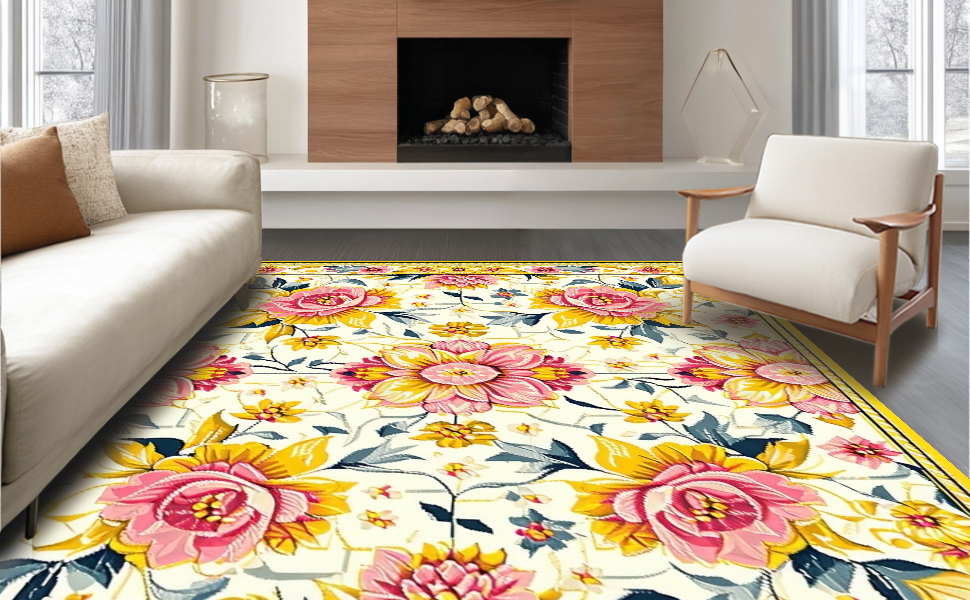Ultra Soft Area Rug, Non Slip, Stain Resistant, Washable Area Rugs for Living Room, Bedroom, Delicate Soft Floral Imagery(White) Overview: