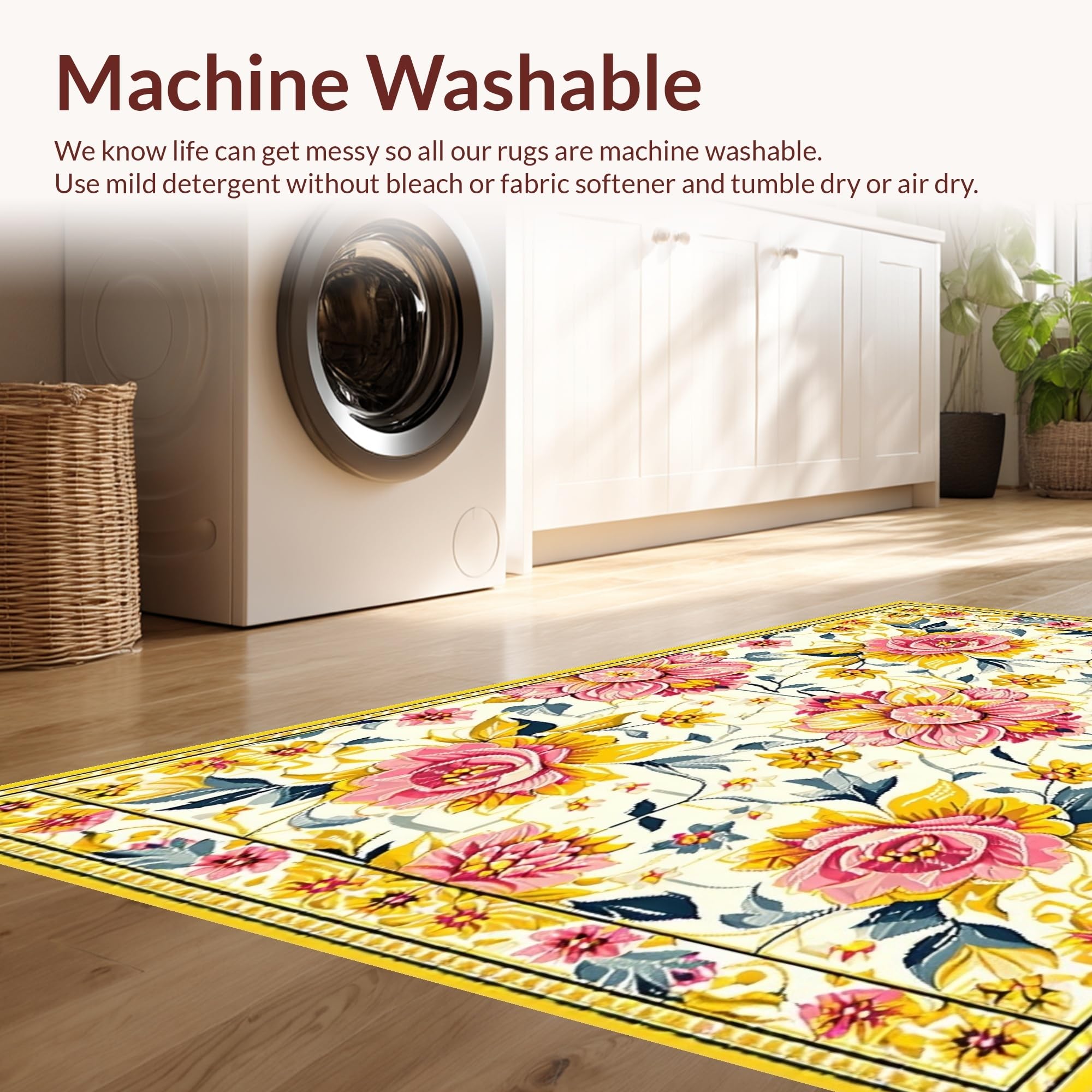 - Machine Washable: Our rugs can be easily thrown in the wash machine.
