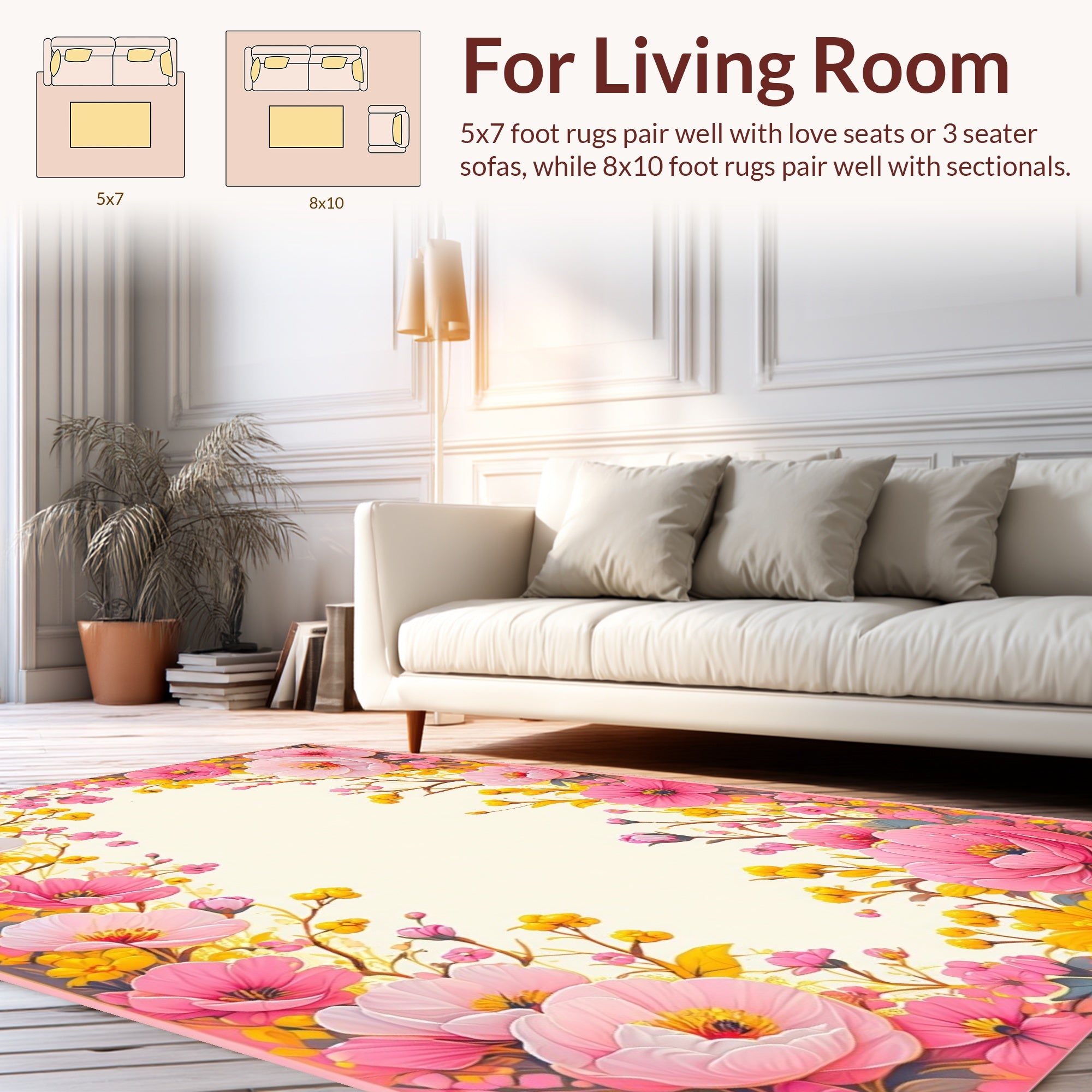 Flatwoven High Traffic Area Rug, Delicate Vintage Blooming Style, Non Slip, Stain Resistant, Washable Area Rugs for Living Room, Bedroom (Pink) Overview: