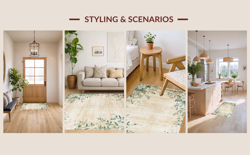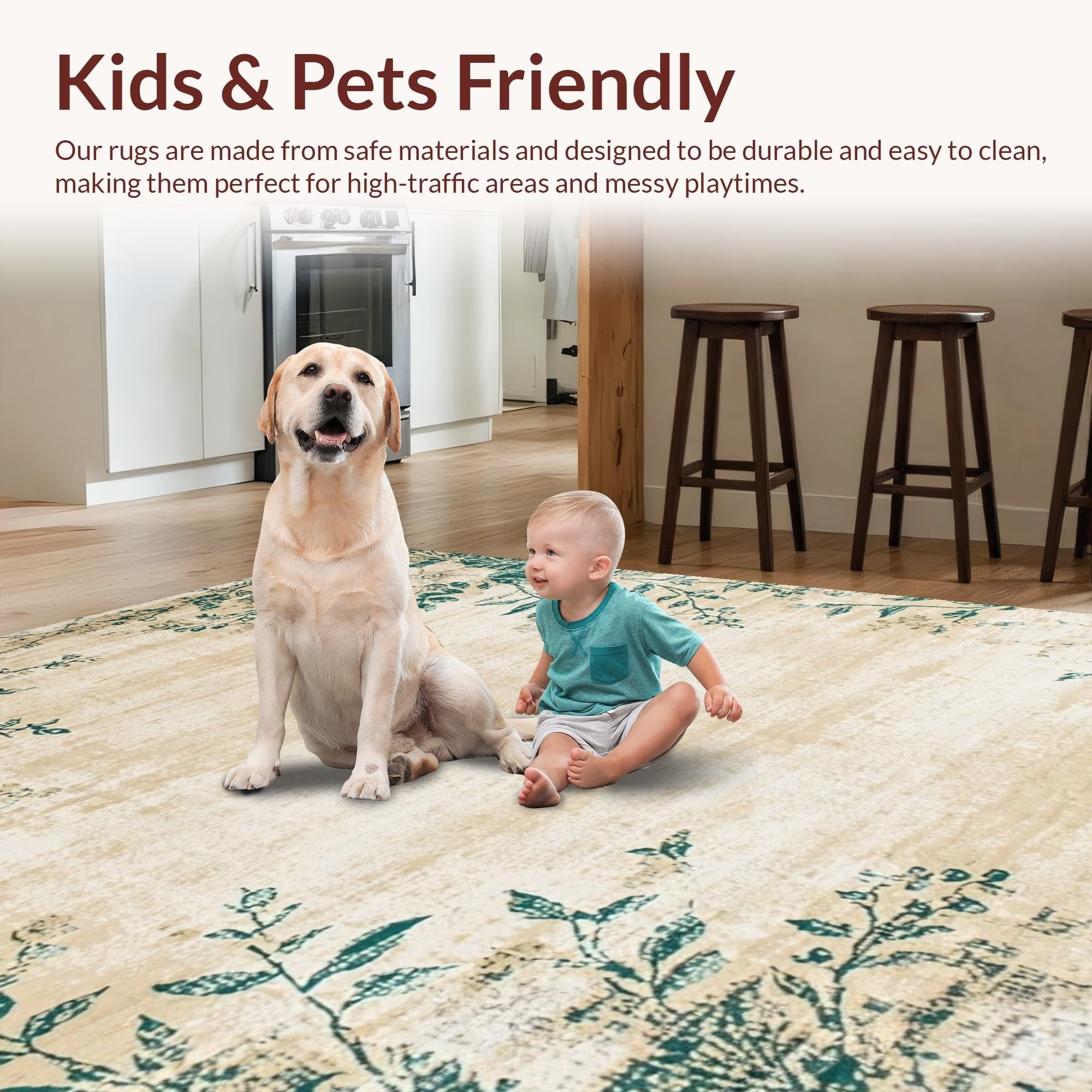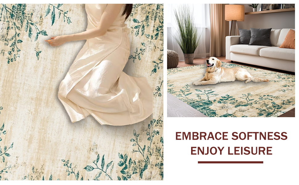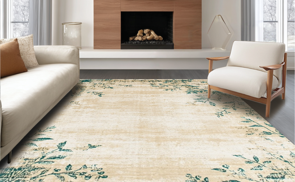 Ultra Soft Area Rug, Non Slip, Stain Resistant, Washable Area Rugs for Living Room, Bedroom, Delicate Vintage Pattern Fusion(Beige) Overview: